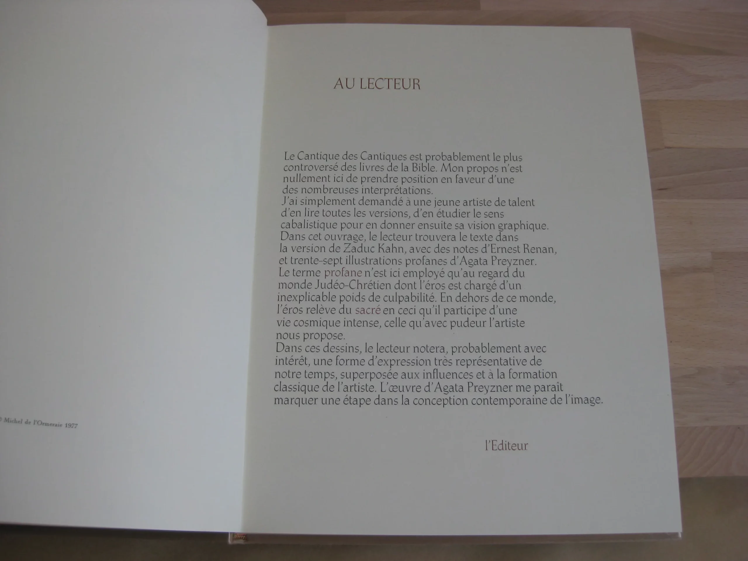 Agata Preyzner – Illustrations profanes pour le Cantique des Cantiques, Édition originale