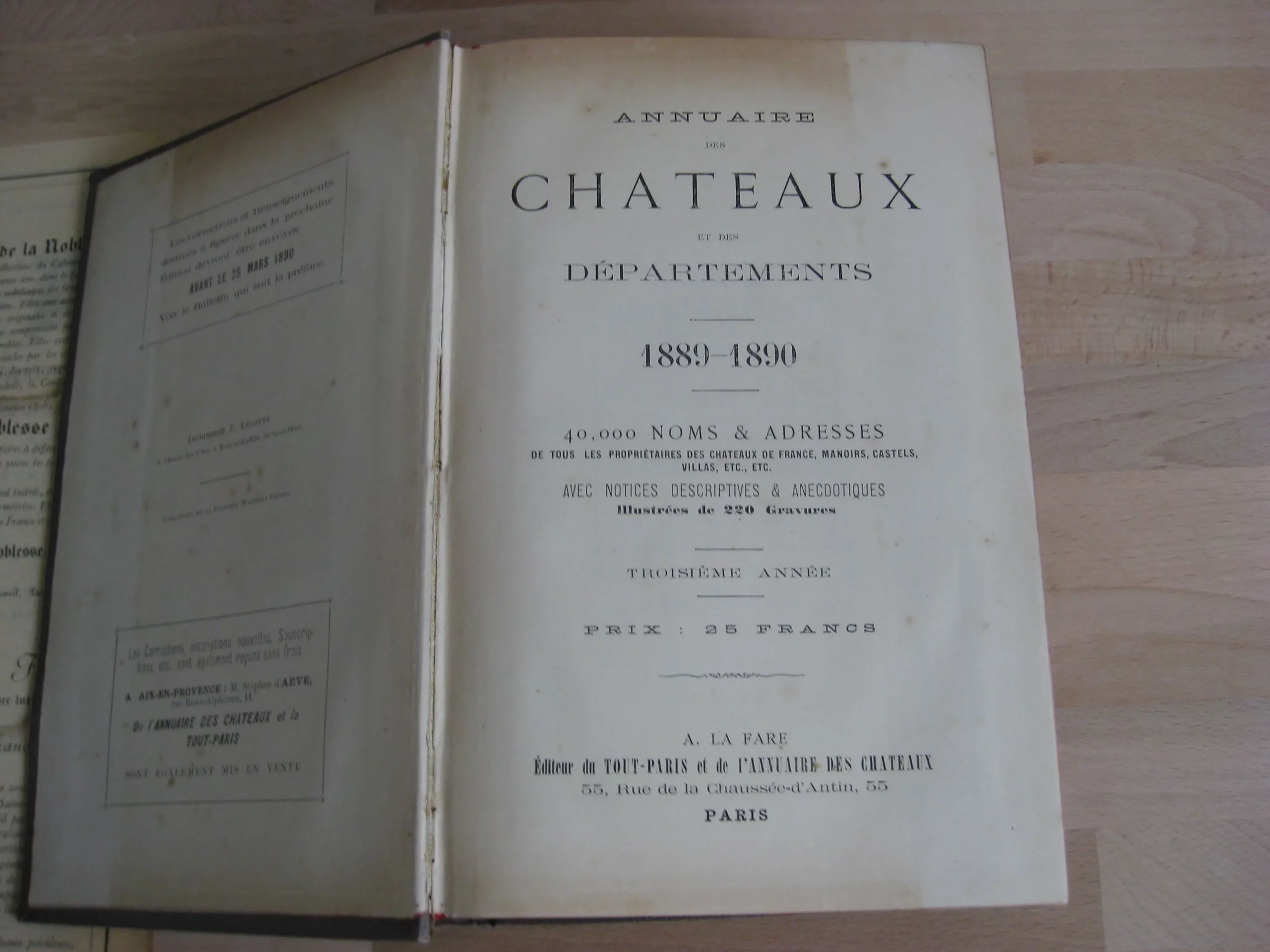 Annuaire des châteaux et des départements 1889-1890. 40.000 noms & adresses de tous les propriétaires des châteaux de France, manoirs, castels, villas, etc., etc. avec notices descriptives & anecdotiques