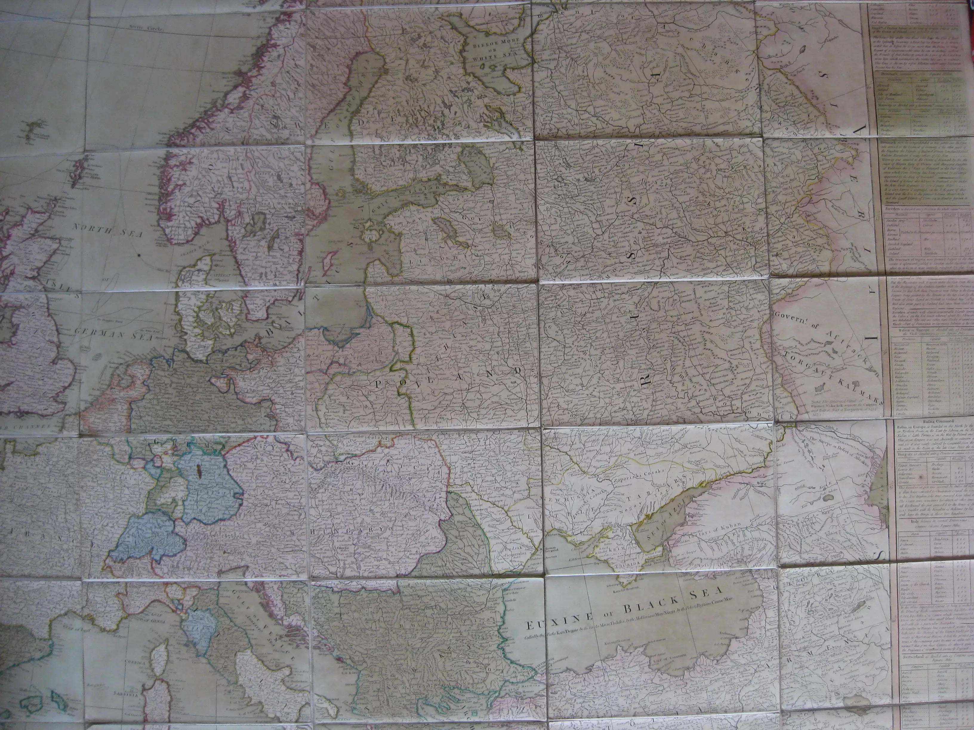La carte d’Europe de Laurie & Whittle de 1805 reflète les bouleversements politiques majeurs de l’époque napoléonienne — expansion de la France, frontières mouvantes de la Prusse, de l’Allemagne, de la Pologne, de l’Autriche-Hongrie et de l’Italie avant son unification. Les cartes Laurie & Whittle étaient typiquement vendues entoilées