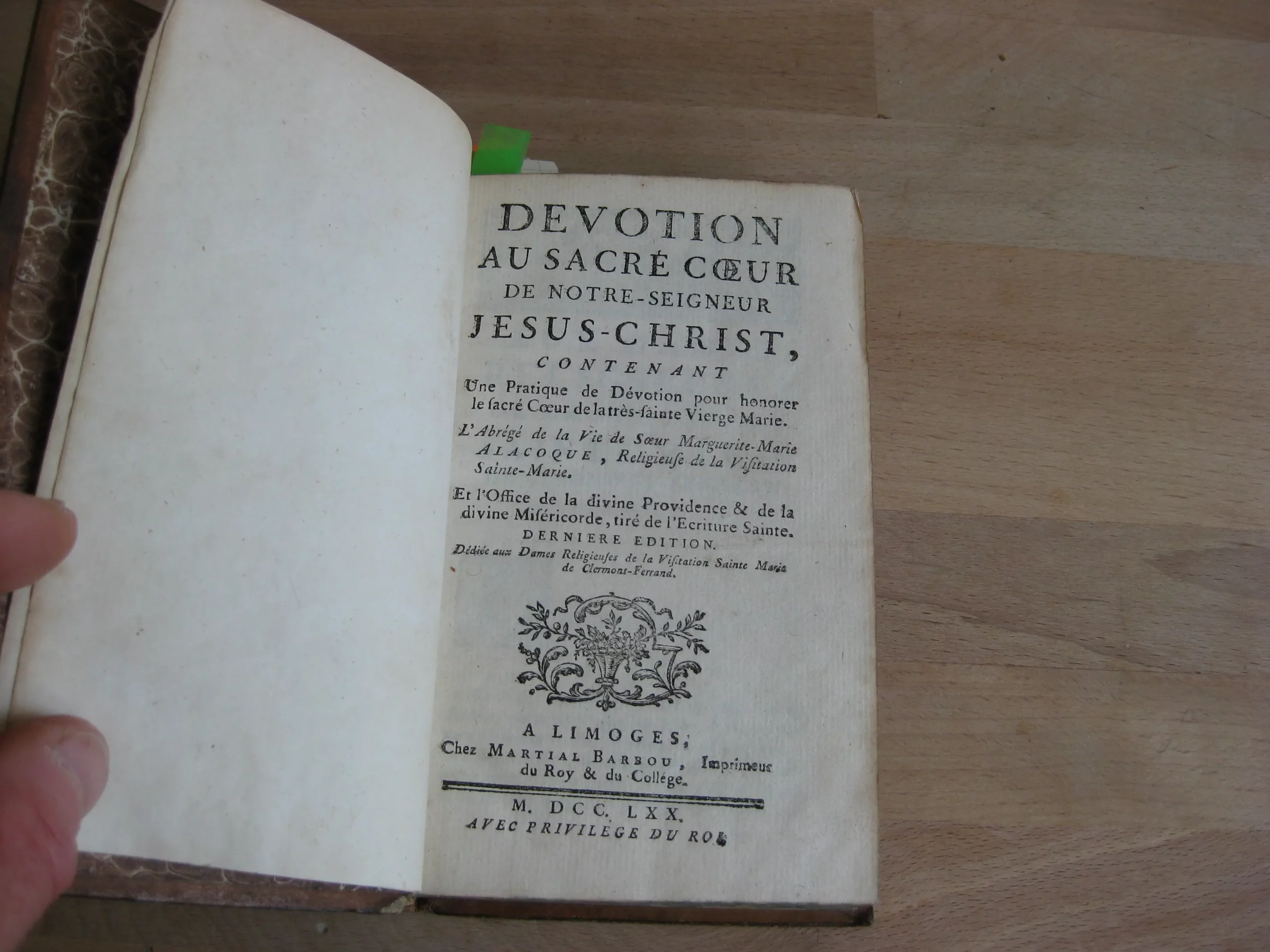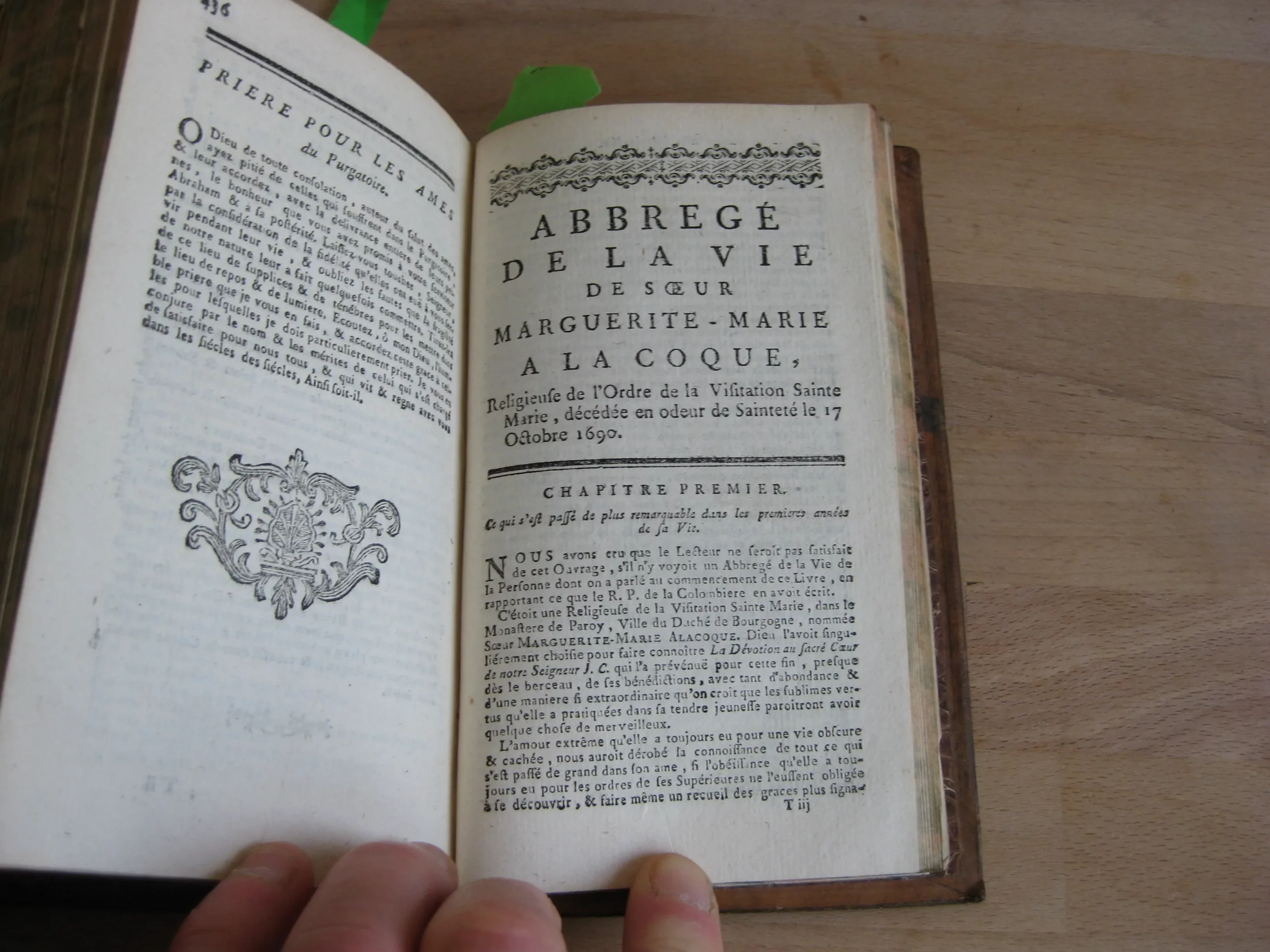 DescriptionDévotion au Sacré-Coeur de Notre-Seigneur Jésus-Christ, contenant une pratique de dévotion pour… la très Sainte Vierge Marie. L’abrégé de la vie de Soeur Marguerite-Marie Alacoque, religieuse de la Visitation. Et l’Office de la divine Providence et de la divine Miséricorde. Dernière édition. Dédiée aux Dames religieuses de la Visitation Sainte-Marie de Clermont-Ferrand
