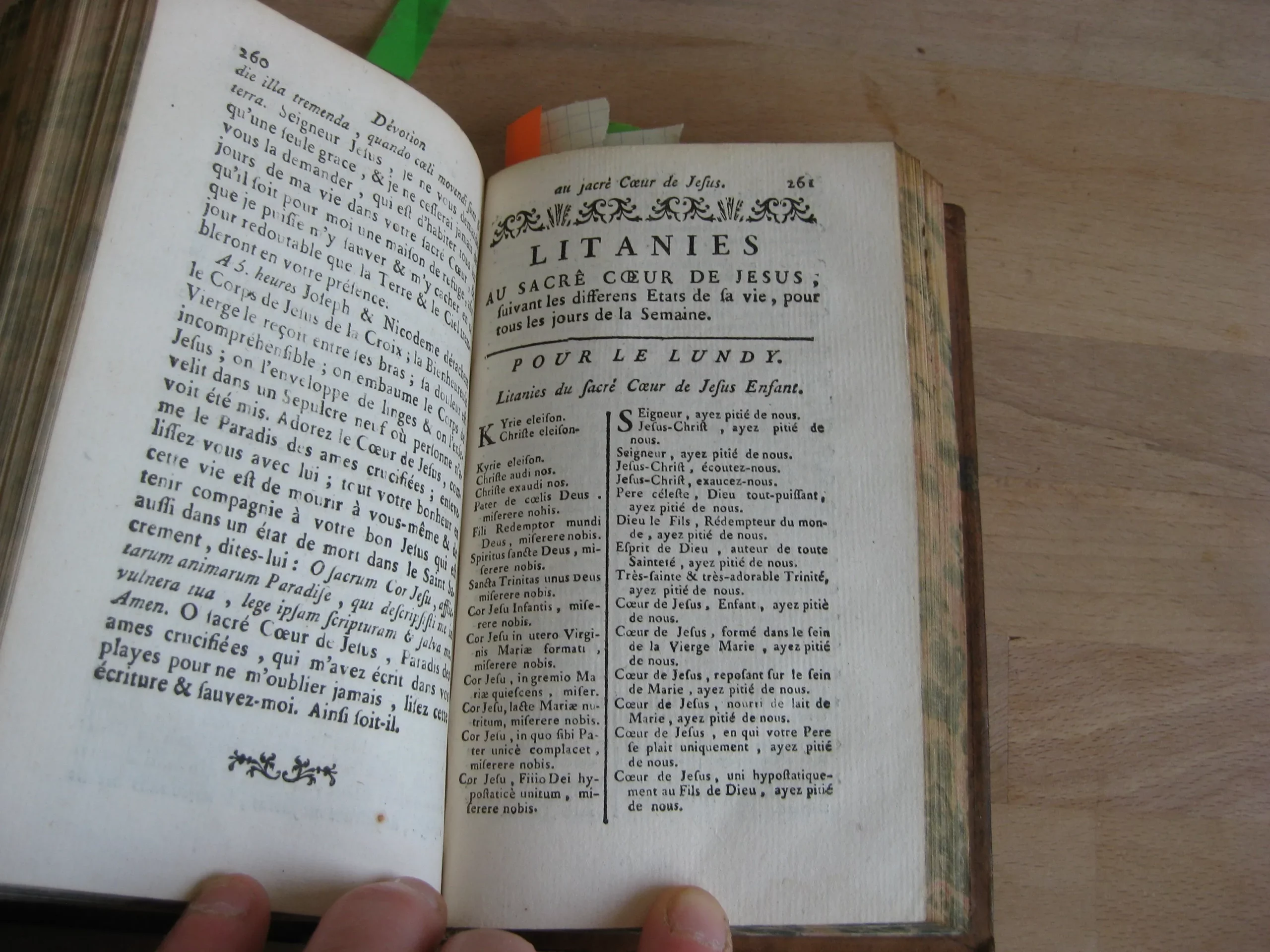 Chez Martial Barbou, Limoges – Plein veau tabac marbré, dos long joliment décoré, champs ornés, tranches cailloutées, 170 x 103, 1770. Epitre, approbation, 7p. Puis le texte.484p. Avec table. Intérieur très frais, propre. Quelques frottement à la reliure, mais très bel état.