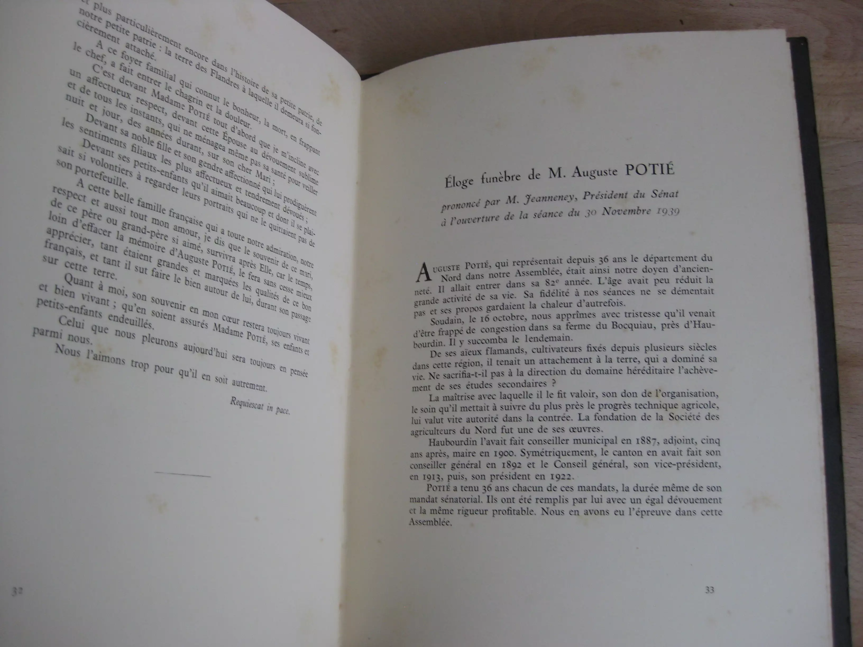 Imprimerie E. Richard, Haubourdin – Broché, 246 x 188, 34p. 1939. Comprend 7 discours par : Ed. Roussel ; M. Grau ; M. Thellier de Poncheville ; F. Dô ; M. Merchier ; F. Carles. ; et M. A. Fauchille. Suivi de l’éloge funèbre prononcé par M. Jeanneney, président du Sénat à l’ouverture de la séance du 30 novembre 1939. exemplaire propre, avec rousseurs, surtout en début et fonde volume. Couvertures propres et intègres.
