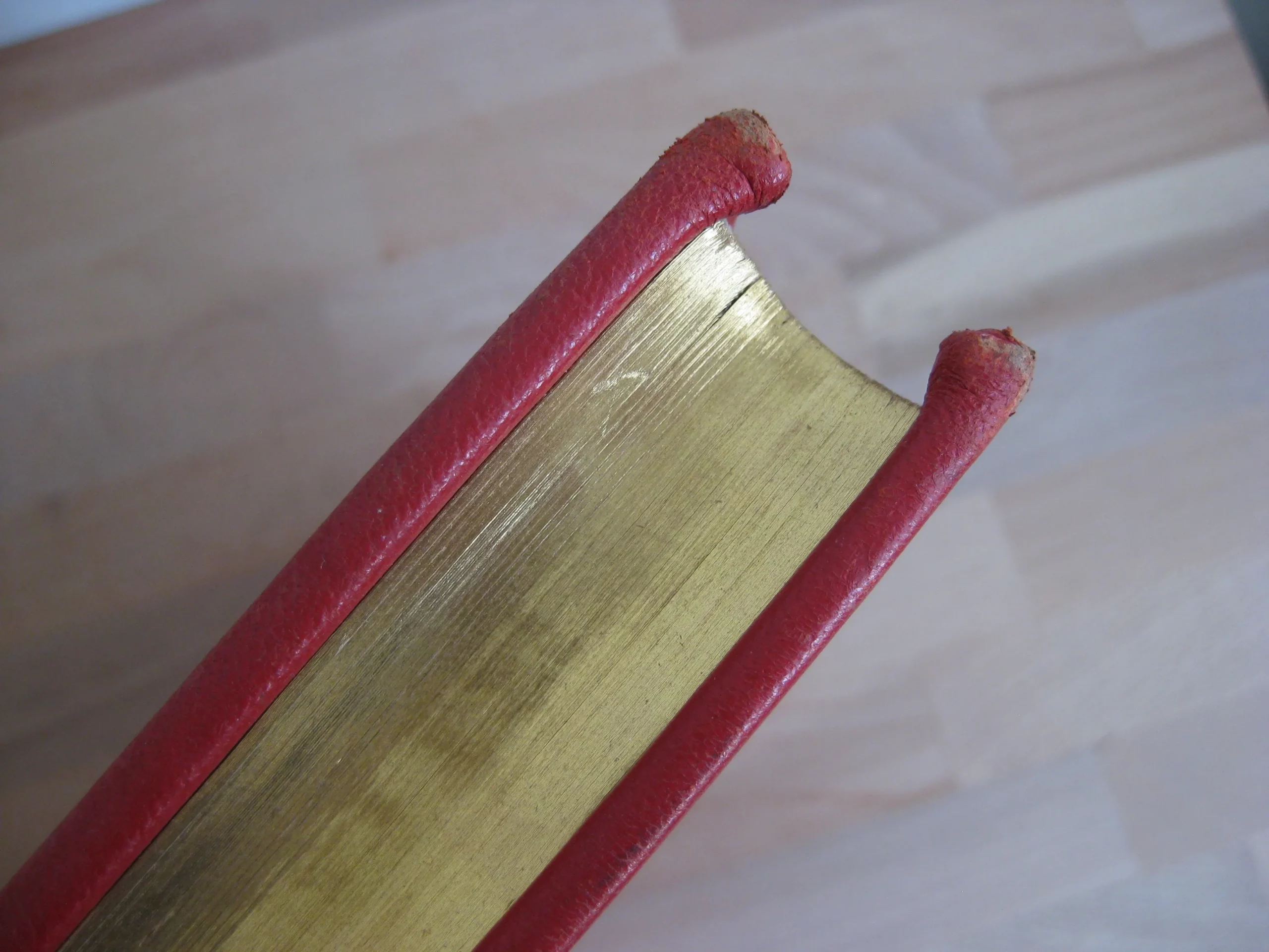 In-folio plein maroquin rouge, à dos long, fleuronné, orné des titre et auteur, plats à encadrement large filet doréavec grand chiffre doré au centre, toutes tranches dorées, sous emboîtage cartonné, 345 x 262, 1948. [Concordat cum originali, in fidem, etc. Angelus Mariani, 1927] Comprend Epistolae, pp. 2-218, suivi de Epistolae communes, pp. 2-58, avec Index alphabeticus omnium festorum. Suivi de Evangeli totius anni…, pp. 2-200, suivi de evangelia communia, pp. 2-48, avec Index alphabeticus omnium festorum. Suivi de Missiae propriae sanctorum Galliae, pp. 2-16. 1948. Texte rouge et noir, dans un encadrement rouge. Exemplaire enrichi d’un cahier de six pages de partitions rouge et noir, relié p 126-127 de l’Evangelia : Genealogia in nativitate domini. Et de deux feuille A4 volantes dactylographiée : Suite du Saint-Evangile selon Saint-Luc ; et Lecture de la lettre de Saint-Paul aux Philippiens. Intérieur en excellent état, propre et intègre. Reliure en très bel état, quelques frottements et traces légères ; coins un peu frottés, mais très bel état, et dans son emboîtage très bon également.