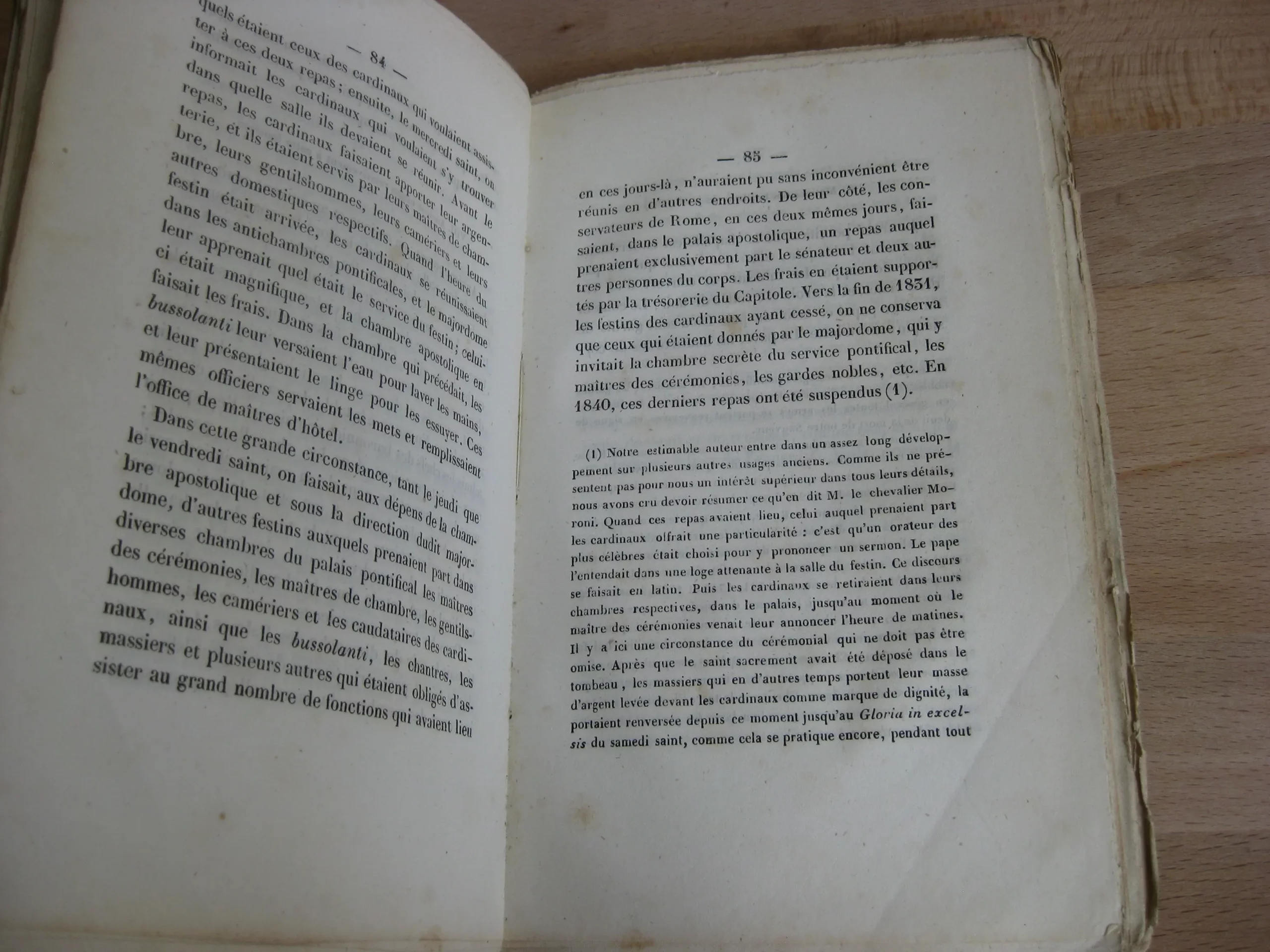 Broché, 190 x120, 228p. Avec table. 1845. Première édition. Traduit de l’italien par le Chevalier Gaetano Moroni. 2 ex-libris en faux-titre. Un tamponné et un manuscrit sans doute du même « Frédéric des Robert ». Intérieur propre, rousseur marginales et légères. Couvertures et dos insolés, frottés un pue grisés, avec manque en pied de dos, pliure en coin de pied de couverture. Ouvrage avec brochure lâche et fragile.