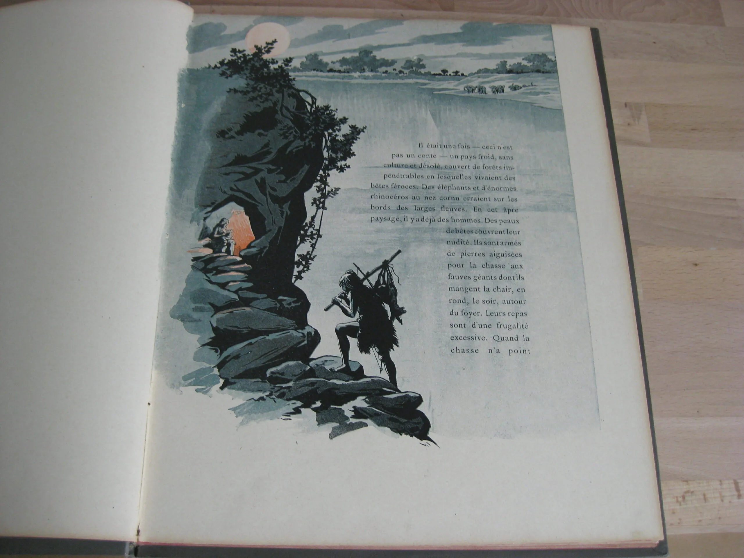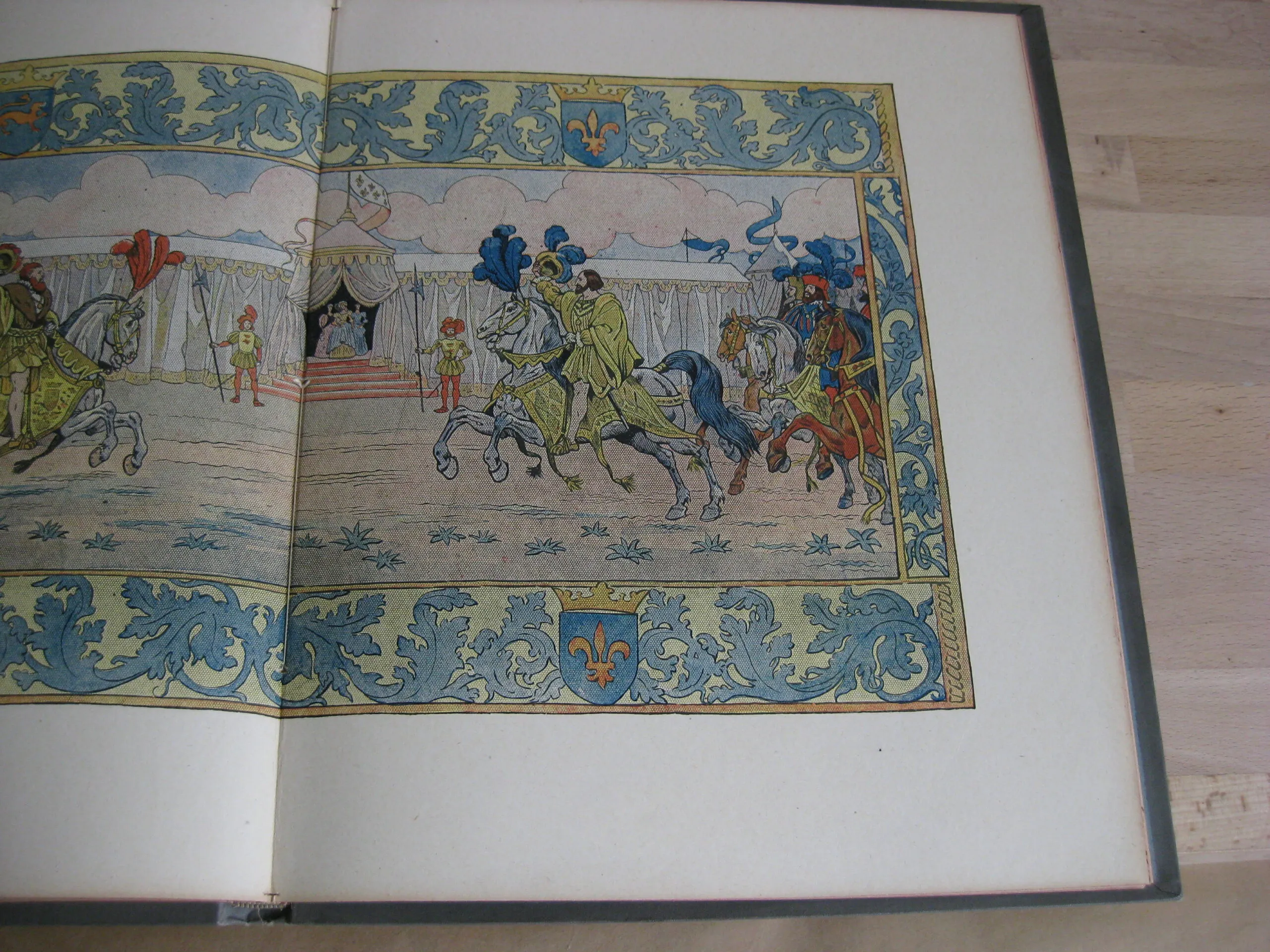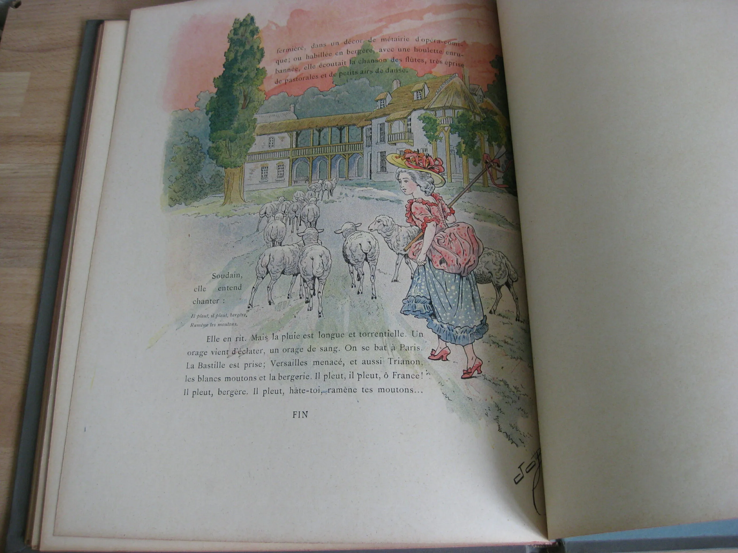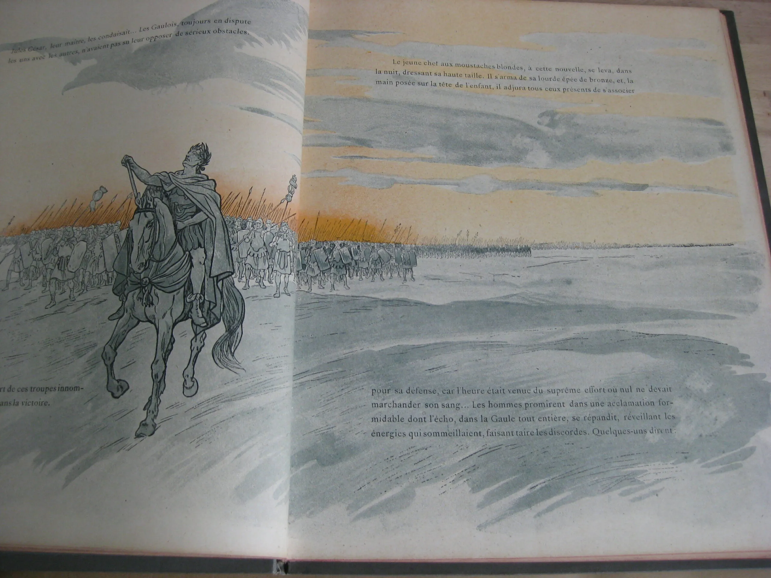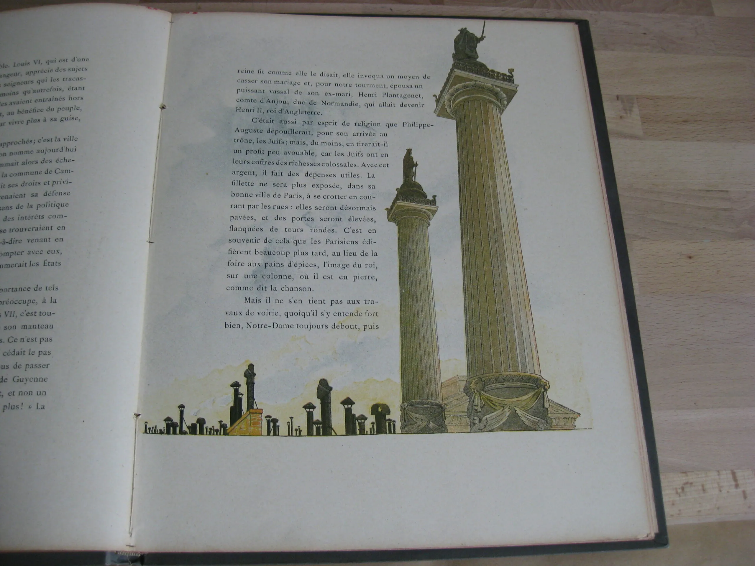 Full illustrated percaline in color signed Paul Souze, with long spine decorated with the title, all red edges, 360 x 290, undated. Unpaginated. (76p.) Interior very good, clean, intact. Covers and spine a little rubbed, but clean and intact. Beautiful, very firm copy. Also in stock from the same duo and in the same format: La Cantinière; Bonaparte; Les trois couleurs; Louis XI.