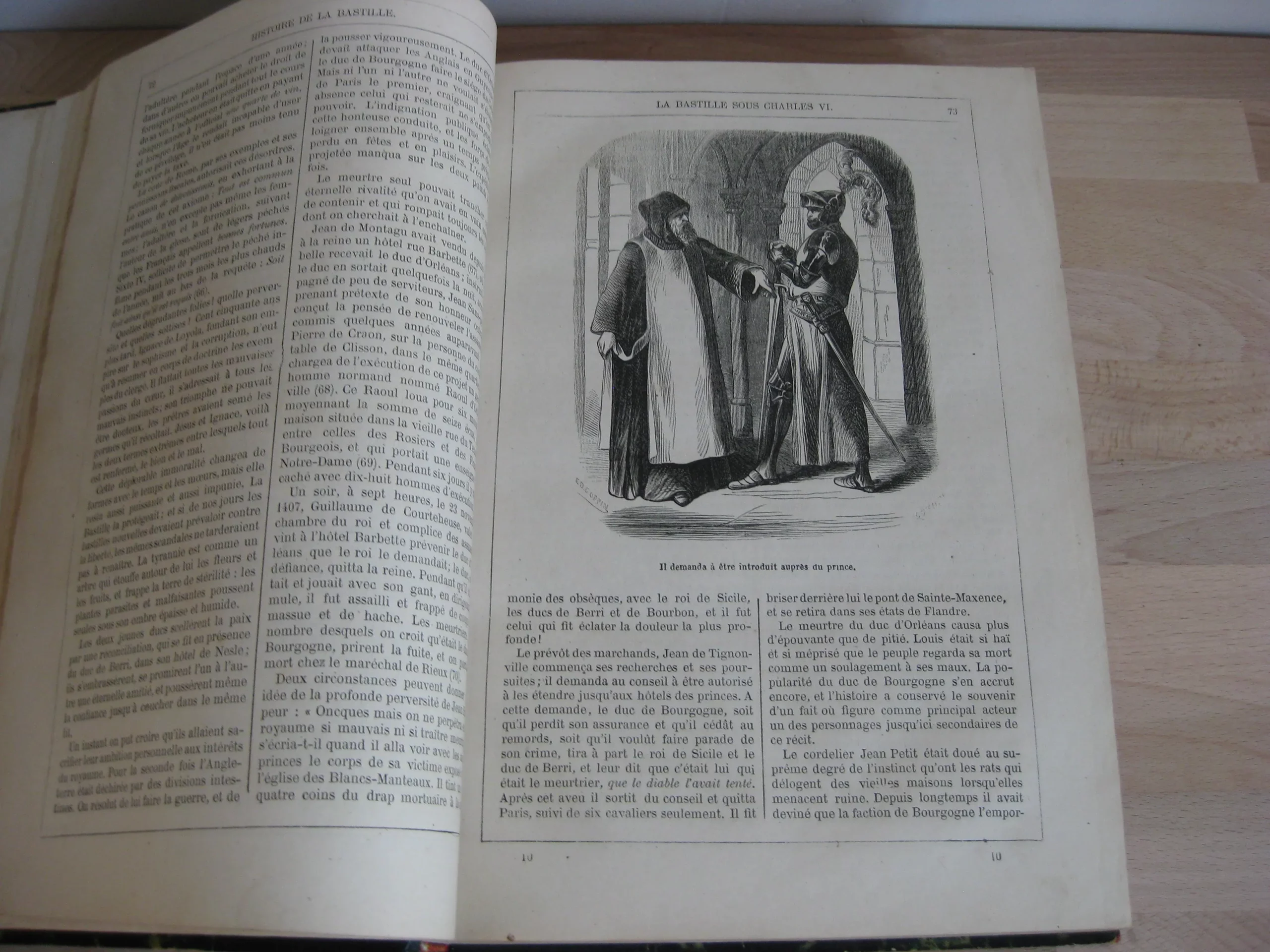 Demi-veau brun à dos long orné du titre et de doubles liserés, reliure étiquetée P. Thomassin, Lille. 289 x 200, 775p. Hors table. Sans date ( ca 1840-1850). Nombreuses illustrations signées Quichon, Robineau, Ed. Coppin, Bisson-Cottard, Charloi, Pauquet… Textes réglés sur deux colonnes. Ex-libris tamponné en garde et en première page. Intérieur propre, rousseurs marginales, tranches avec rousseurs. Coins, et champs frottés mais bons. Reliure en bon état, avec épidermures en coiffe, queue, morts. Bel exemplaire bien ferme.