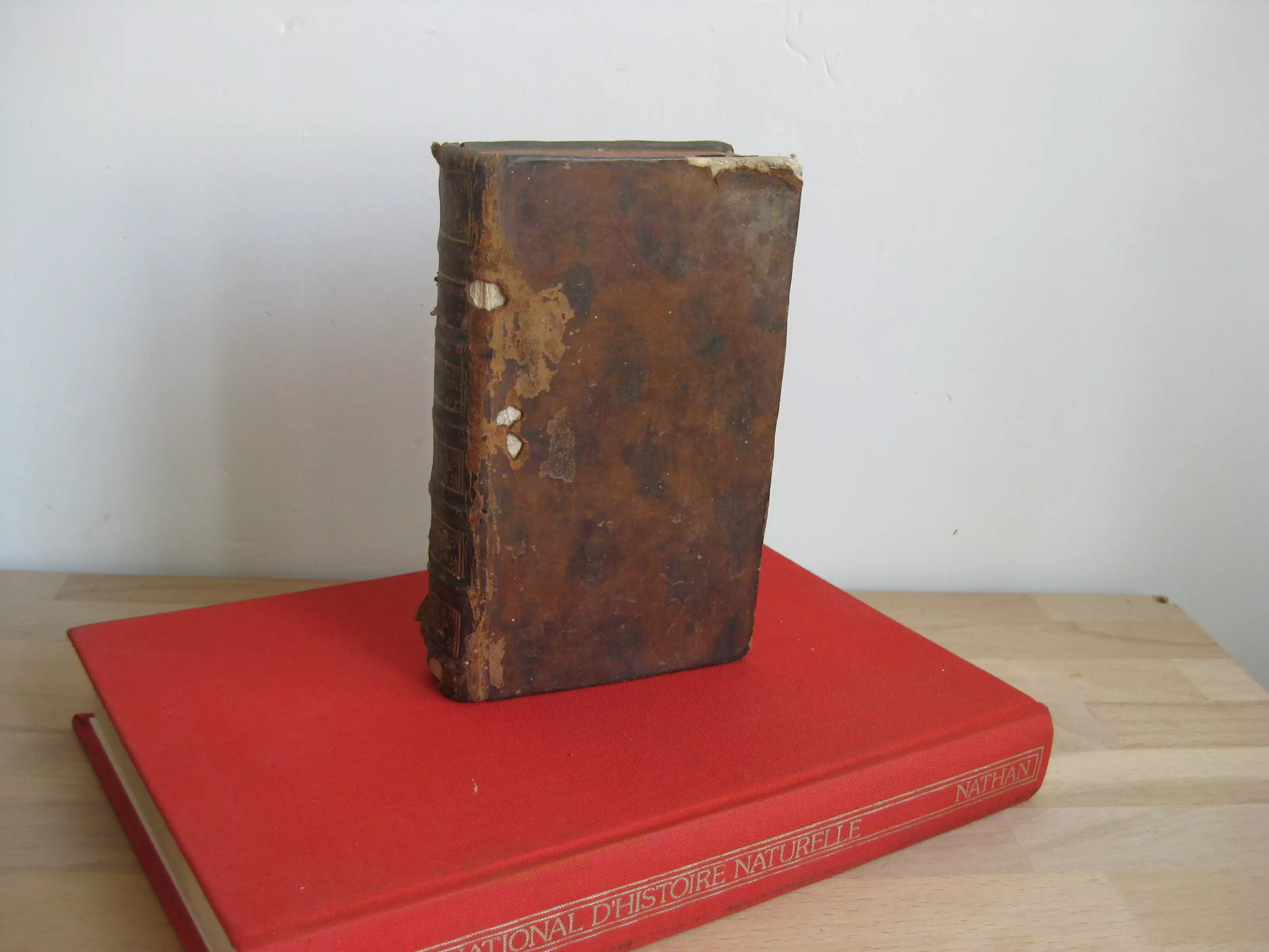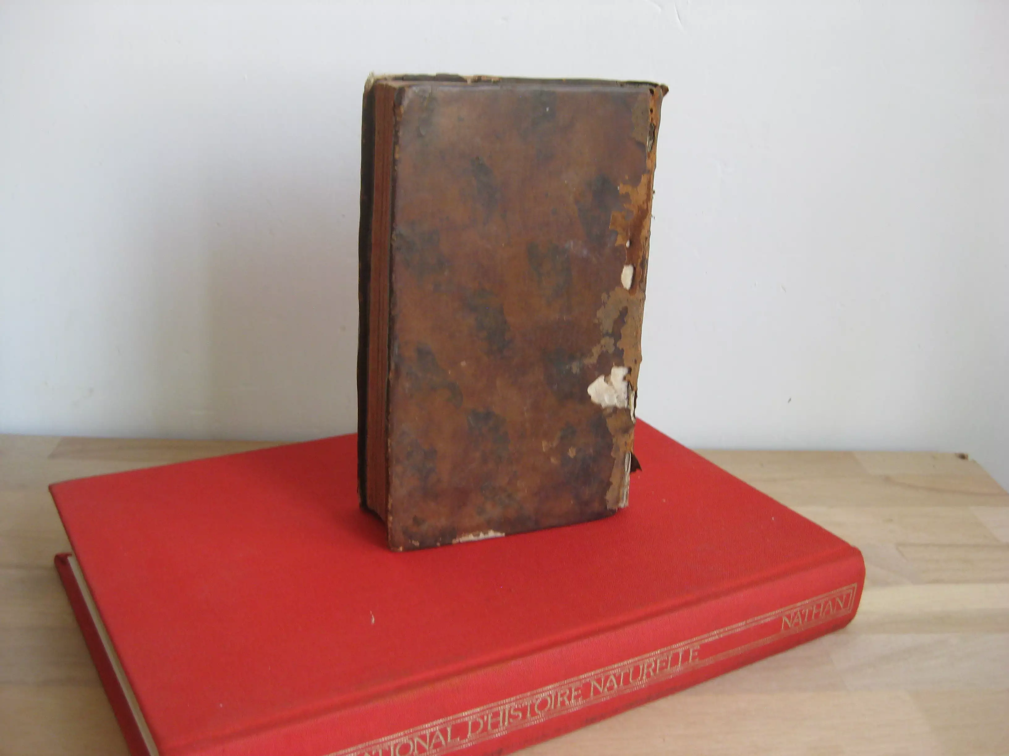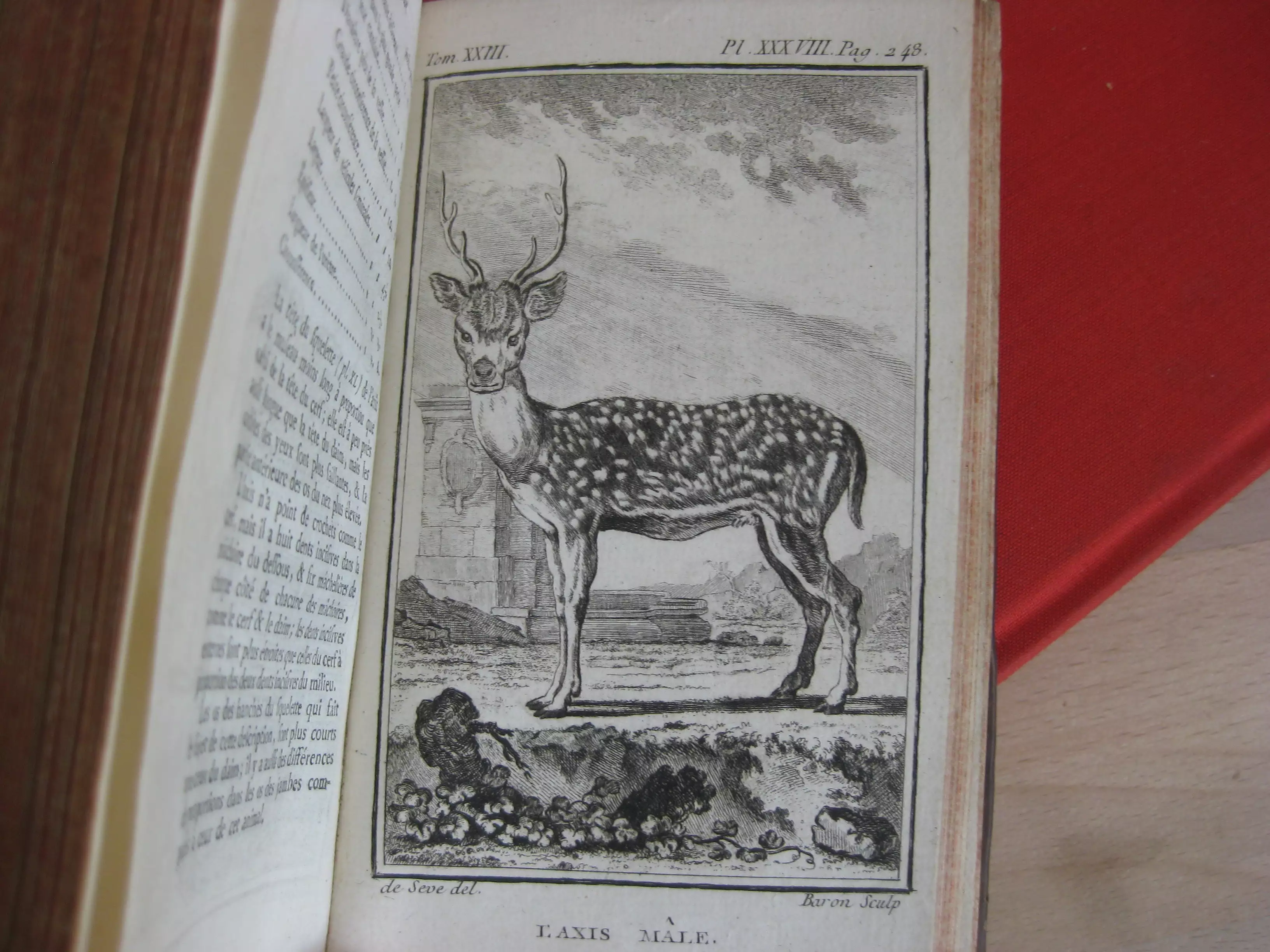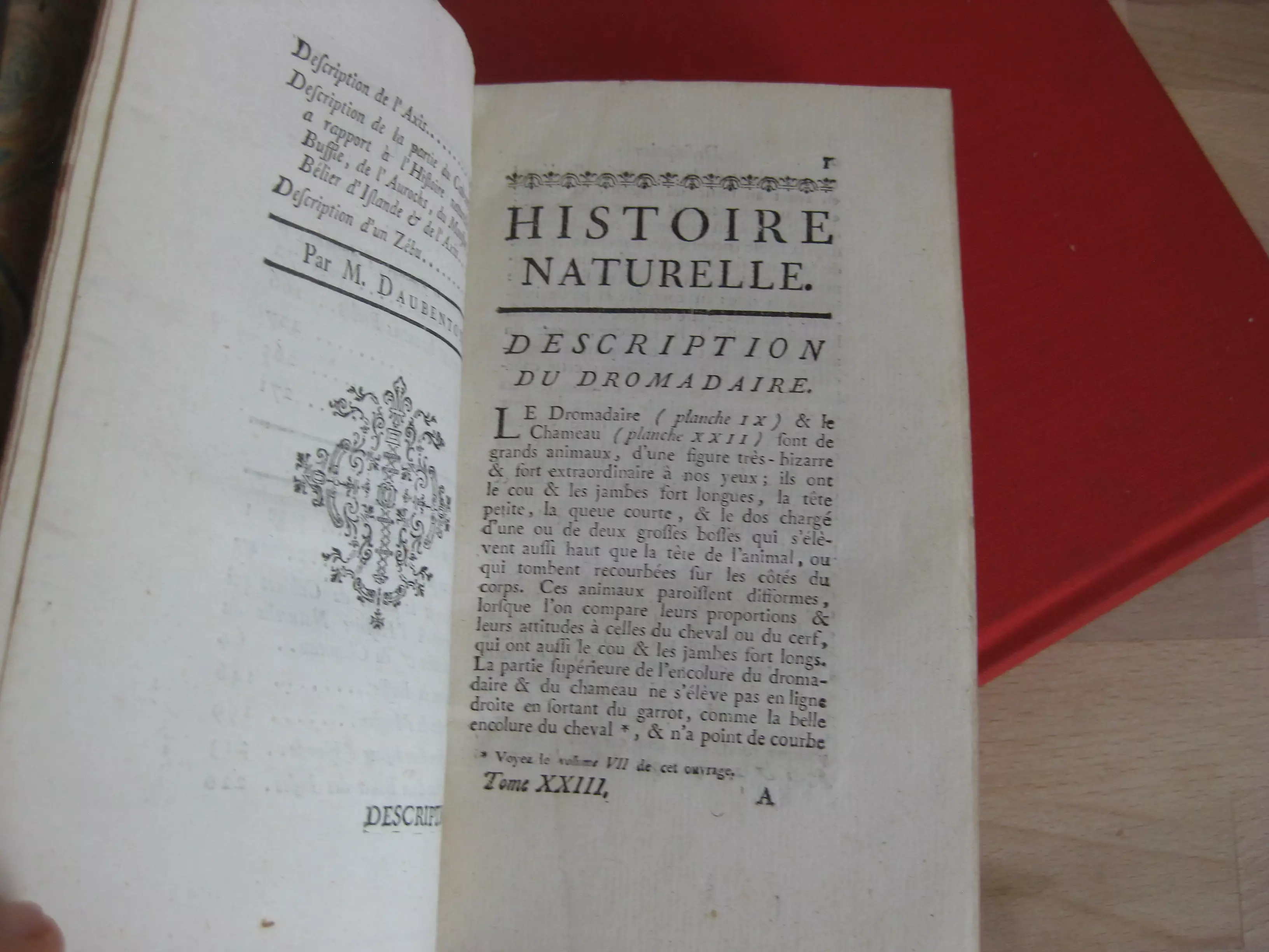 Plein veau, dos à cinq nerfs, tranches jaspées rouges, signet, 168 x 107, 279p. 1766. Table générale avant la lettre. Comprend des études de Daubenton et Buffon, avec 32 planches à pleine page des animaux abordés dans ce volume, ou de leurs organes, squelettes… (Buffle, moutons, axis, zébu, tapir, dromadaire, chameau, bélier). Intérieur très bon, mais reliure très médiocre : manques en champs supérieur,plats et mors supérieurs et inférieurs, et dos et pièce de titre.