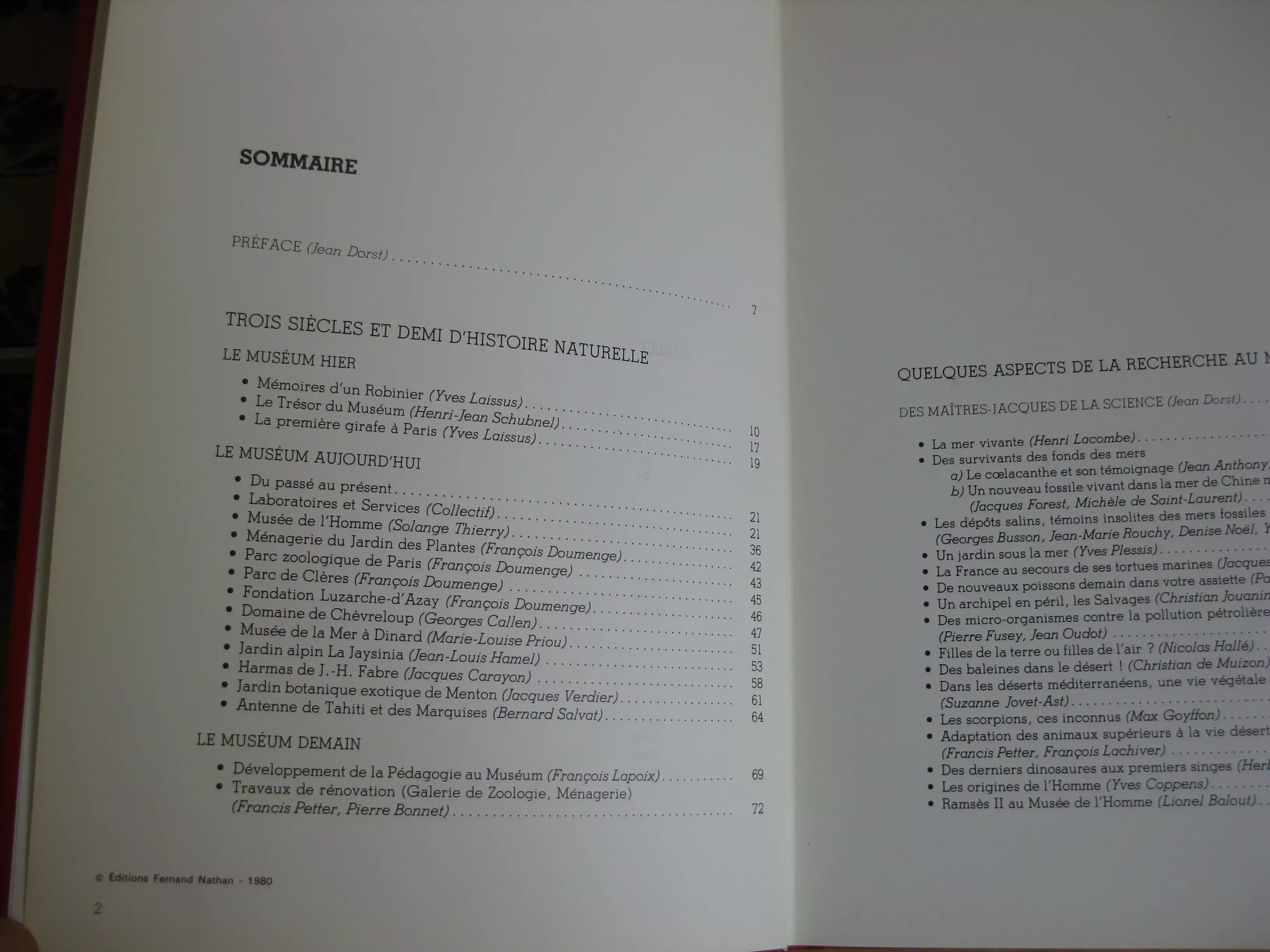Nous joignons : Muséum national d’histoire naturelle. Récits et découvertes, par Jean Dorst, bon exemplaire en pleine toile éditeur
