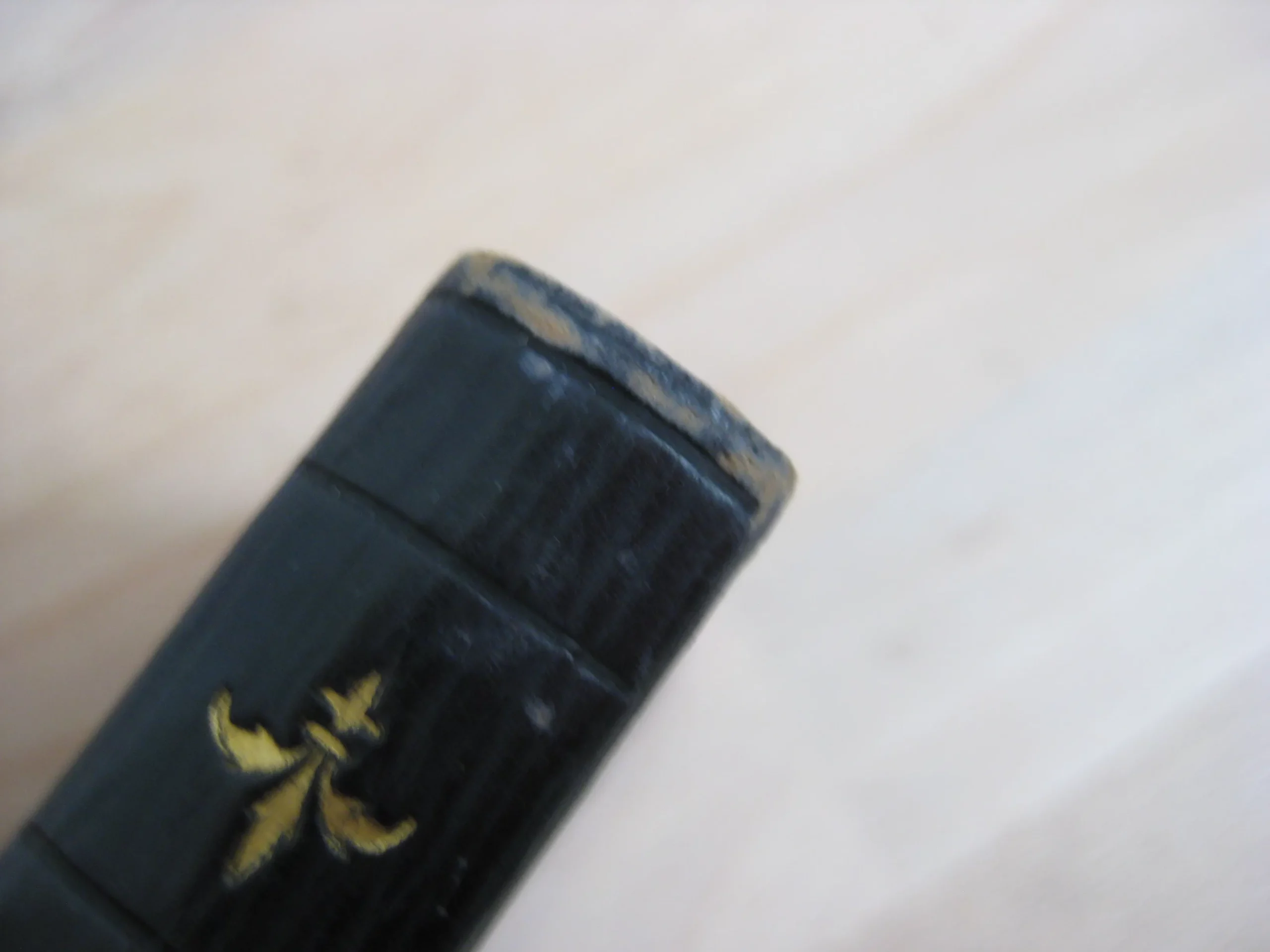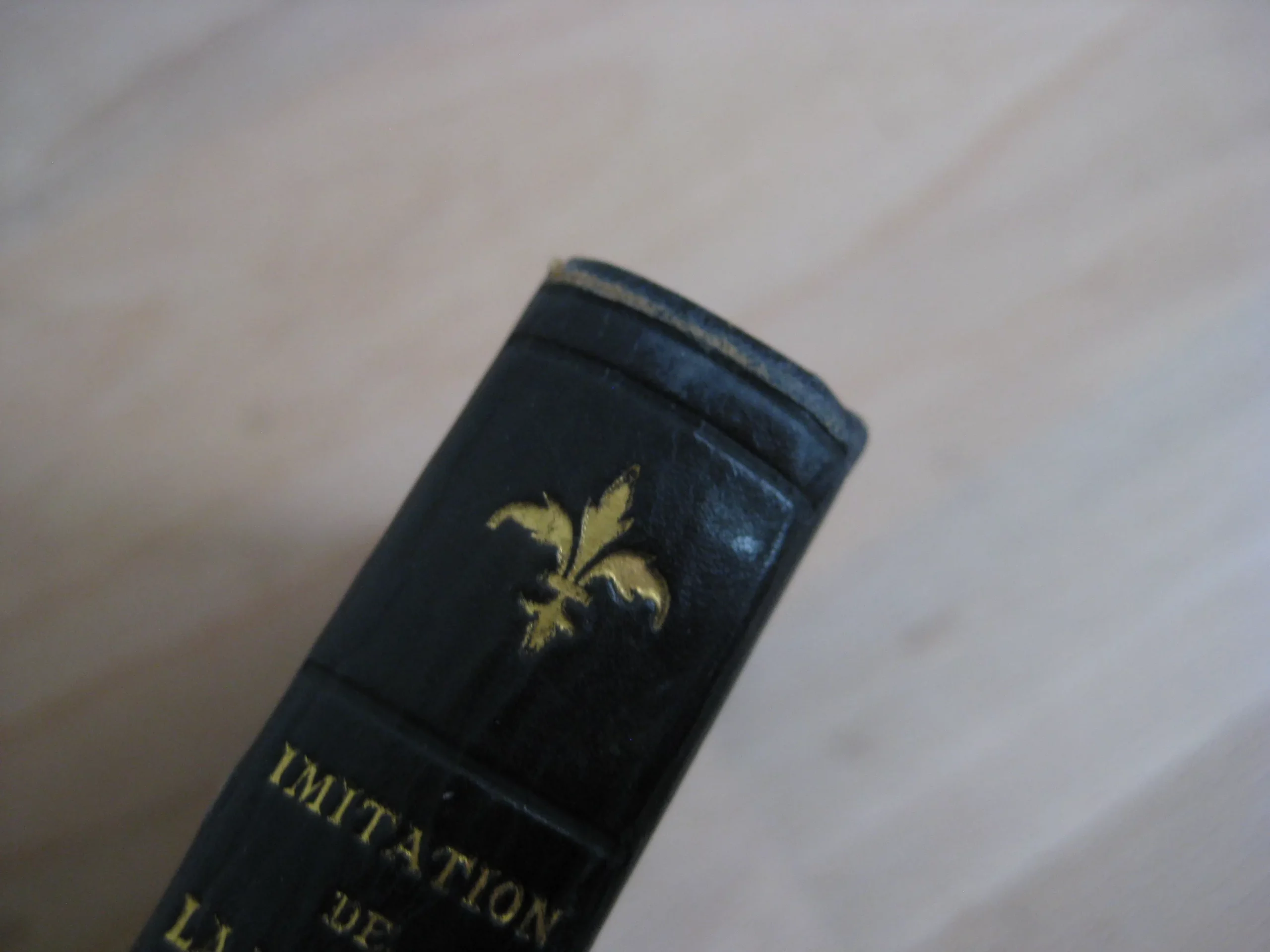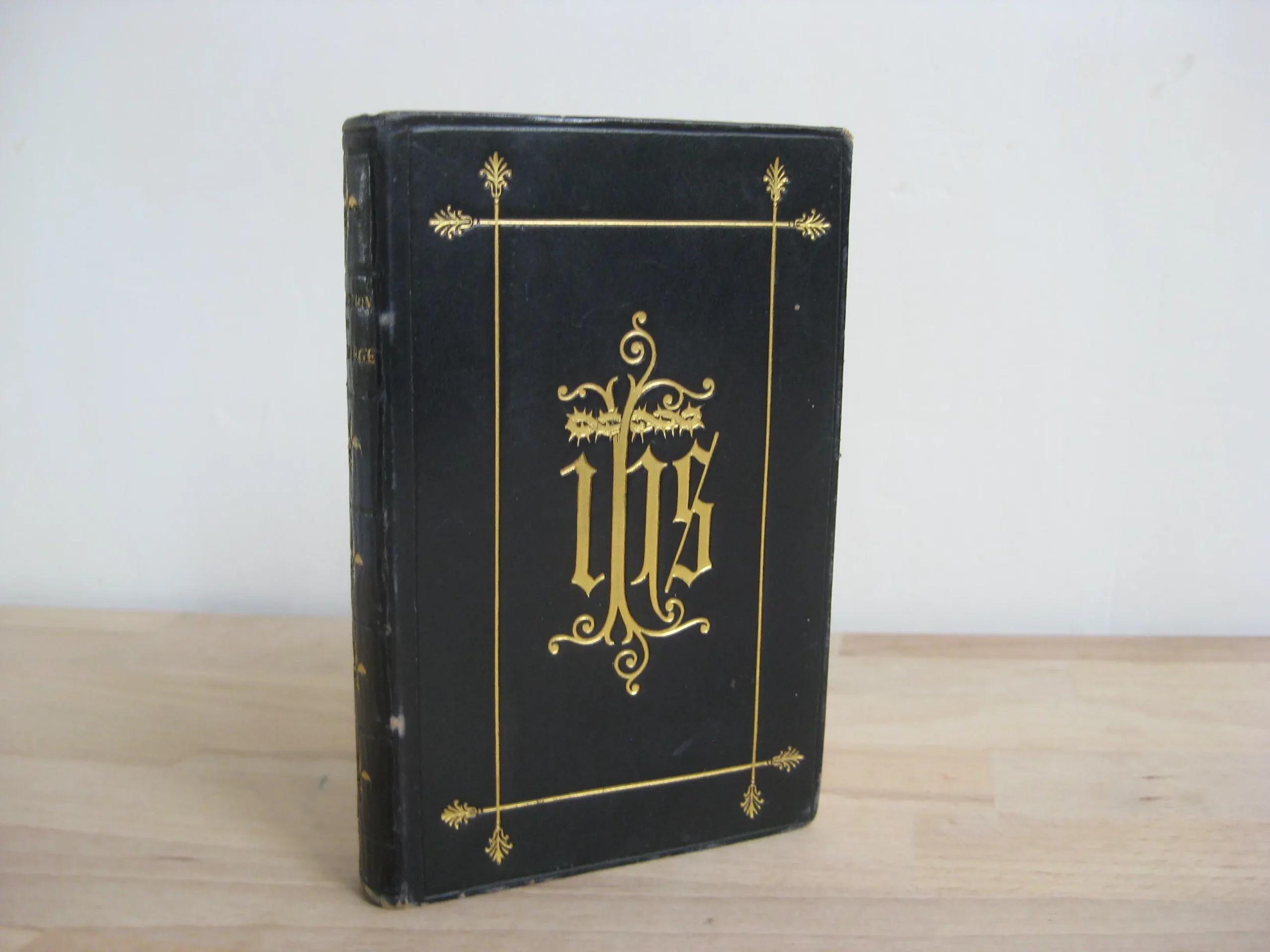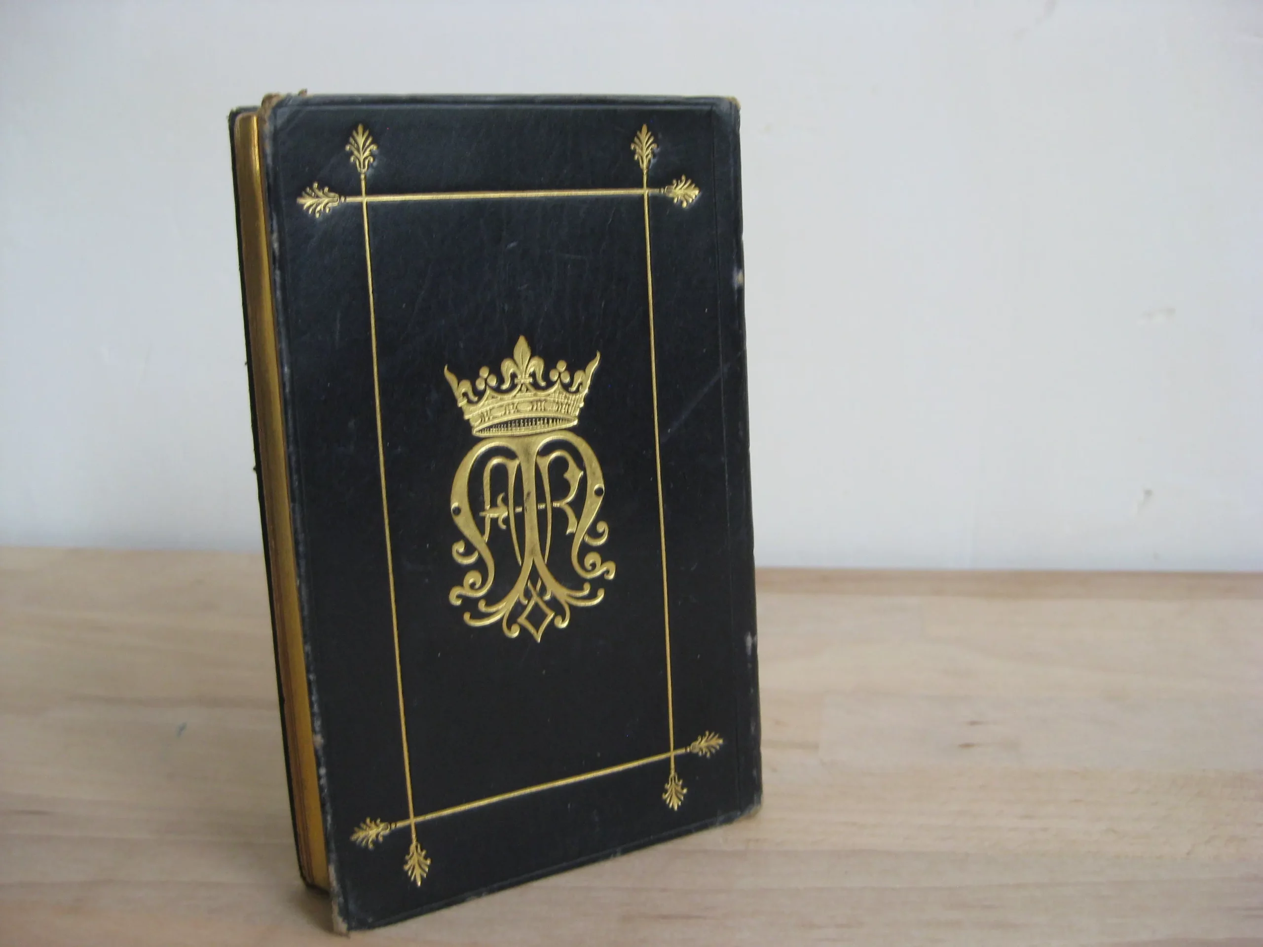 Jolie reliure plein veau marine au chiffre jésuitique en plat supérieur et royaux au plat inférieur, dos long fleuronné (lis), tranches dorées, 120 x 80, 304p. 1885. Frontispice et 4 pleine page, 6 entêtes. Intérieur propre, rousseurs marginales. Coins frottés. Plats légèrement frottés mais bons. Epidermures en coiffe et queue. Bel exemplaire bien ferme.