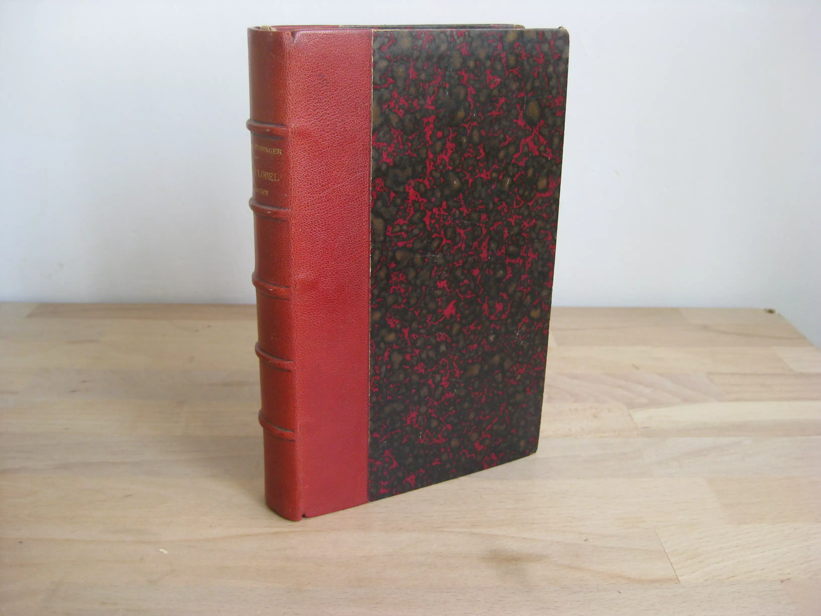 Librairie Plon – Demi-chagrin rouge à petite grains, dos à faux-nerfs orné du titre et de l’auteur, 190 x 125, 295p. Sans date. Très bel exemplaire, intérieur comme reliure, propre, intègre, bien ferme.