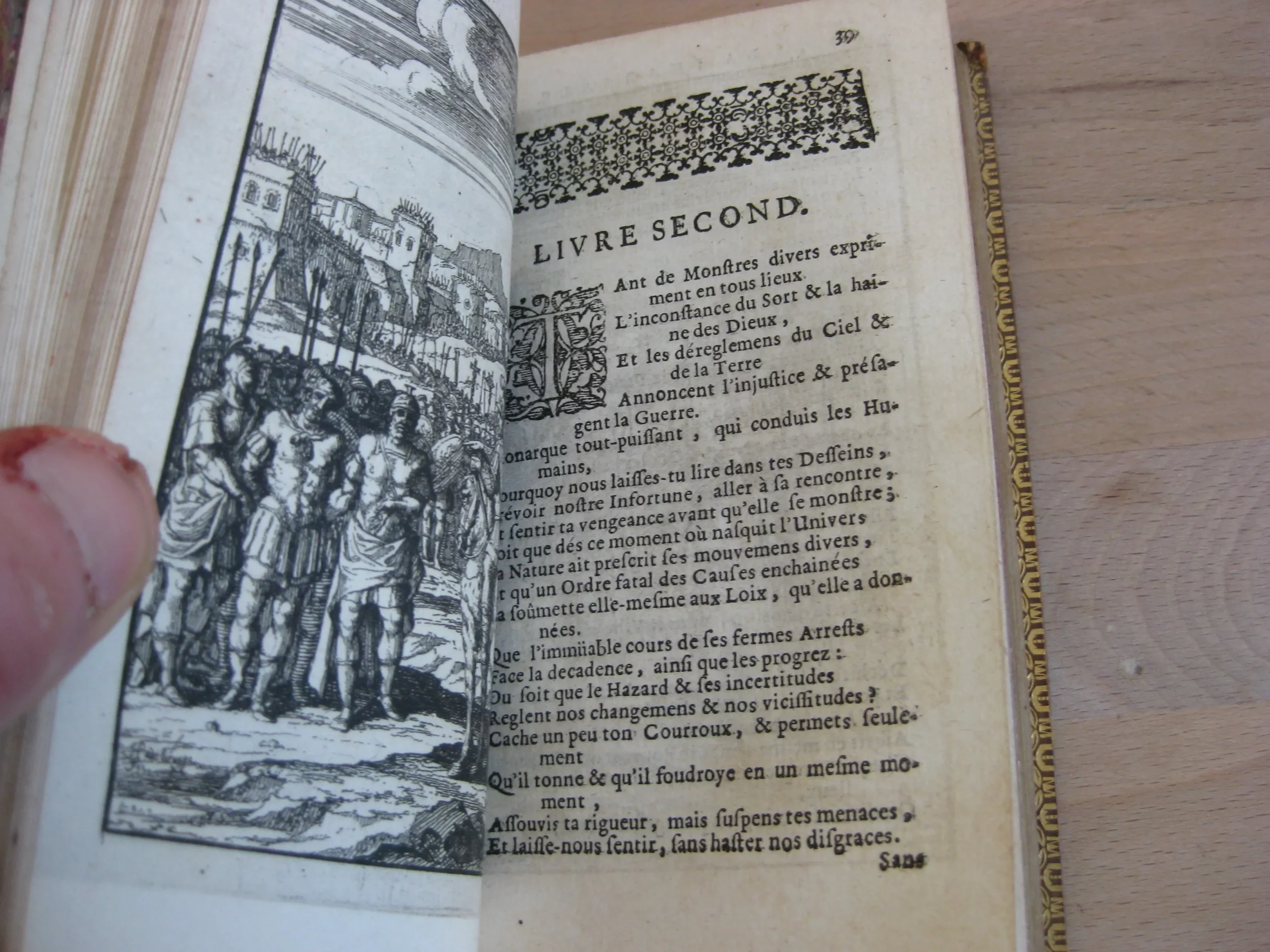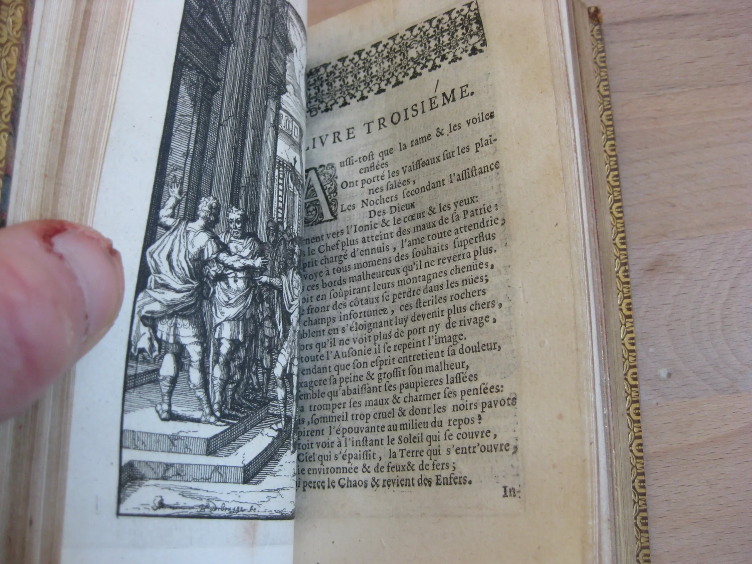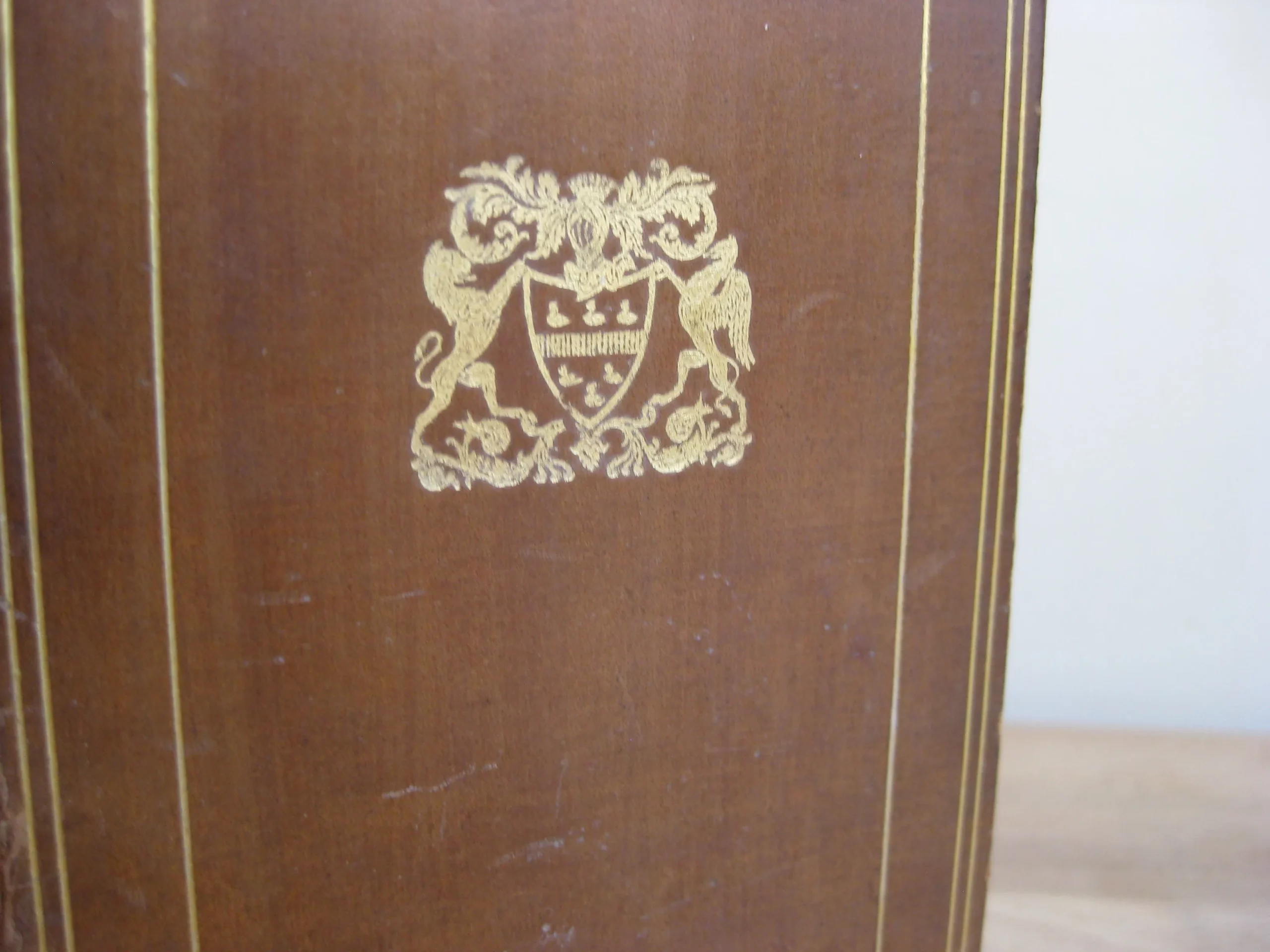 Arnout Leers [François Foppens, Bruxelles]] – In-18 plein veau havane 19ème, dos à nerfs très joliment orné aux caissons, et d’une pièce de titre noire, filets en encadrement des plats, dentelles intérieure en bordure des contreplats, plat supérieur aux armes, armes reprises en ex-libris sur maroquin lie de vin en tête de contreplat supérieur, champs dorés, toutes tranches dorées, 134 x 81, 375 pp, 1683. Marque à la sphère au titre qui indique François Foppens en éditeur sous le nom de Anout Leers. Frontispice et 10 planches gravées h.t. Intérieur très bon, très frais. Mors fendus, épidermures marquées en pied de contreplat supérieur et en tête de contreplat inférieur. Dos en très bel état.
