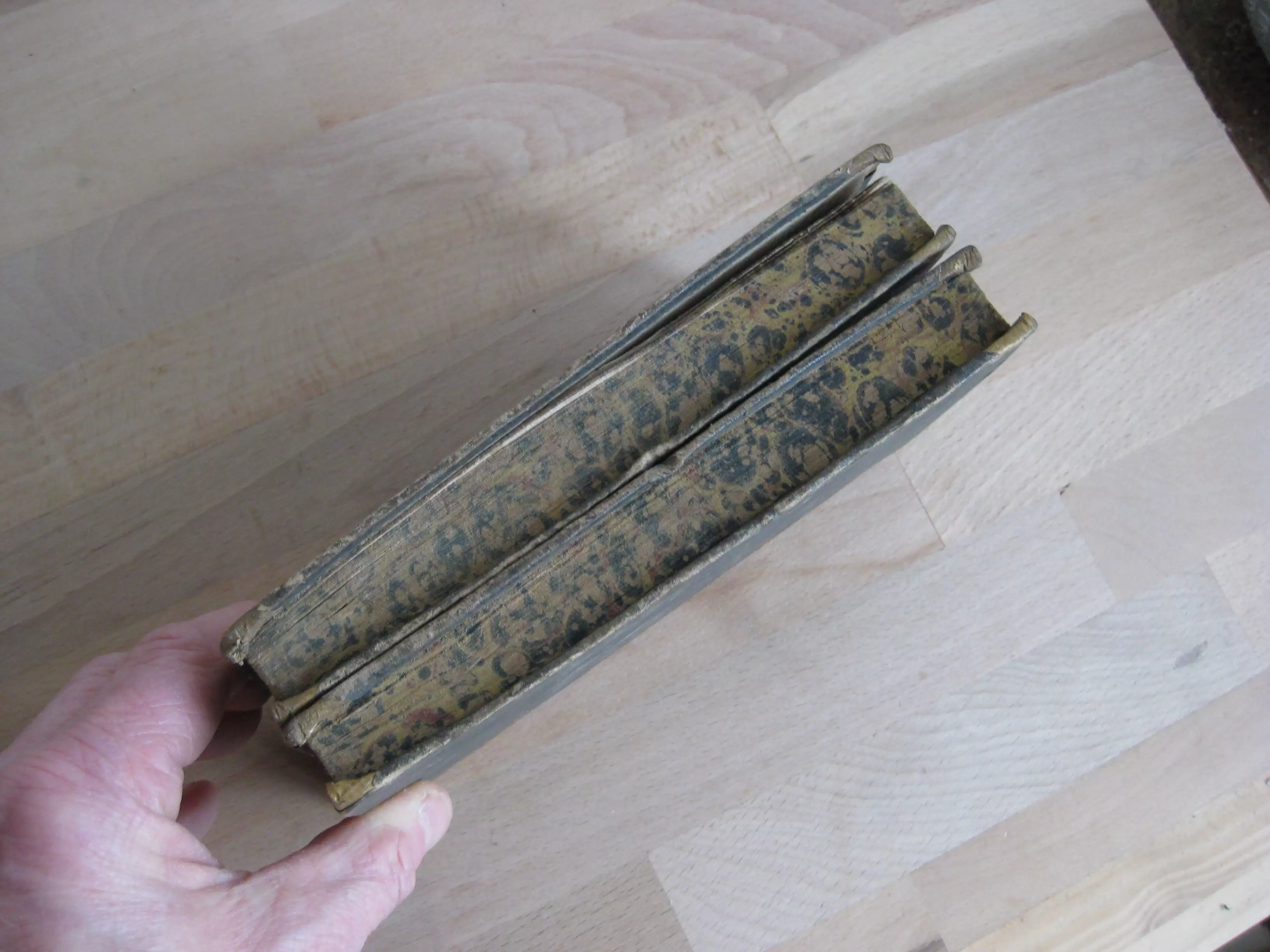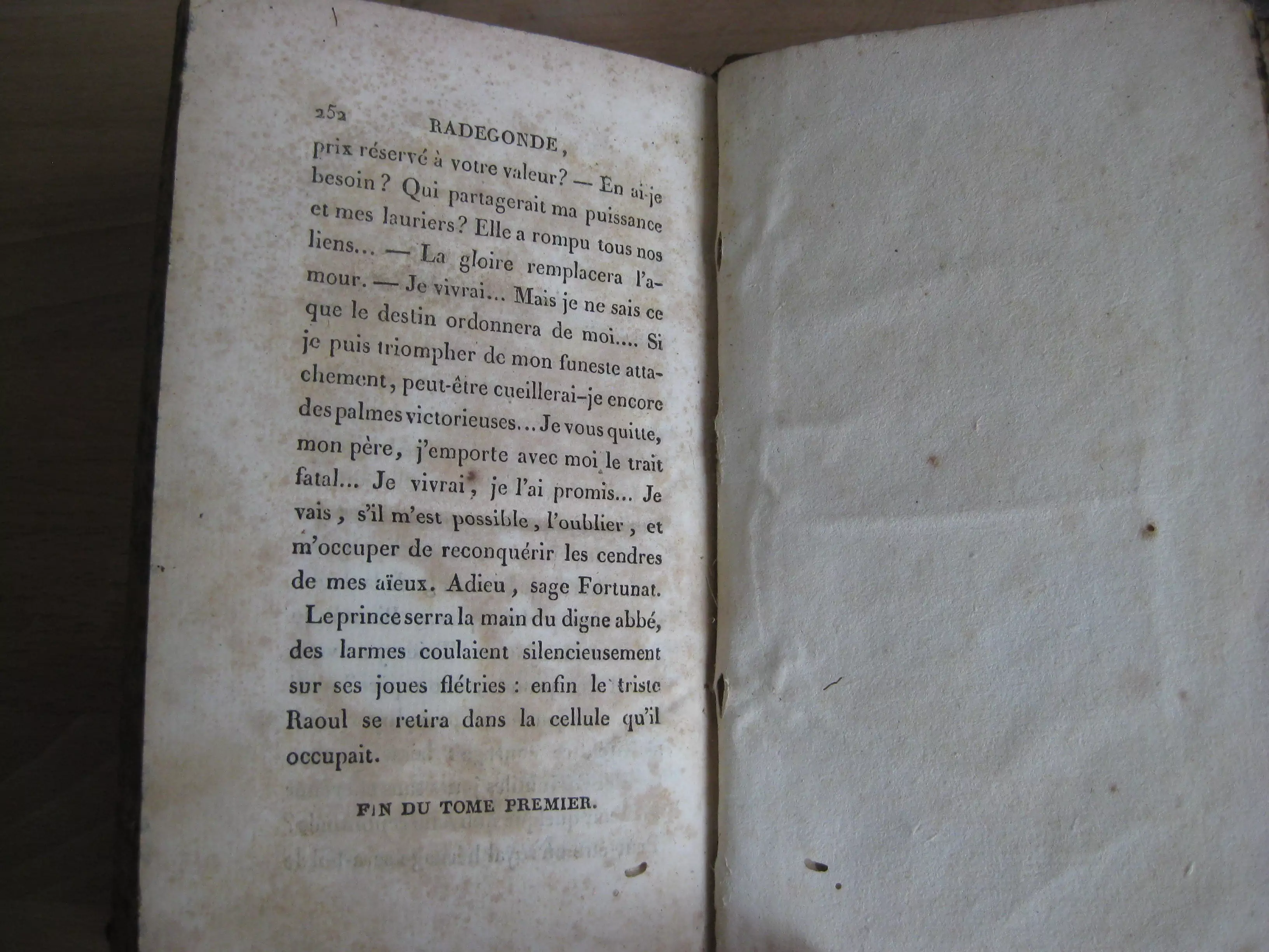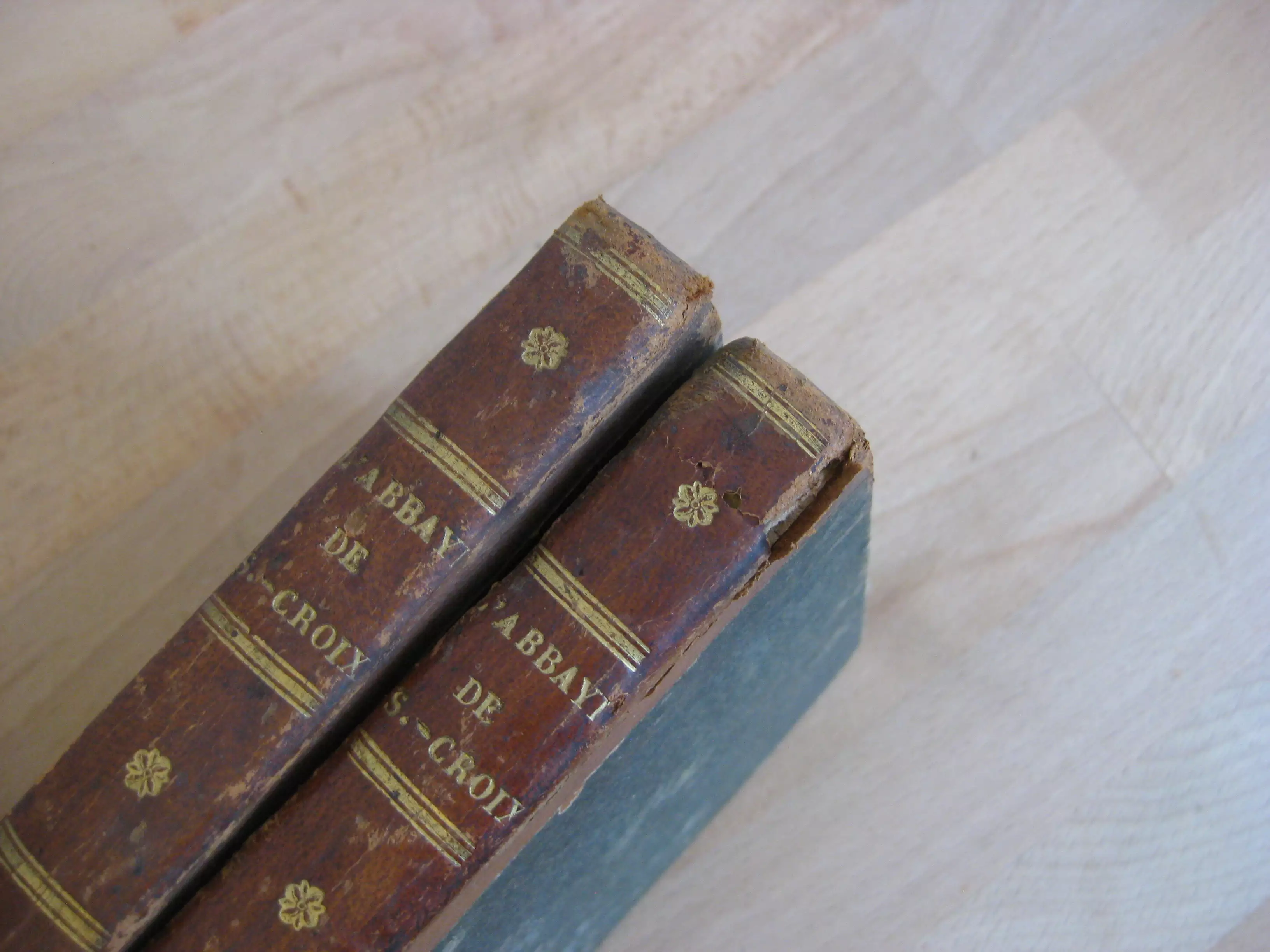 Demi-veau tabac à petits coins (coins cuir manquants) à dos long orné des titre, tomaisons de liserés,et de deux initiales en pied (auteur), tranches marbrées, 170 x 103, 1823. Edition originale peu courante, 2 tomes sur trois. 252 p. pour chaque volume. Rousseurs aux deux volumes. Frottements et épidermures à la reliure, avec une déchirure sans manque en tête de dos du TI et un petit manque en pied de dos du TII. L’abbaye Sainte-Croix de Poitiers, aujourd’hui sur la commune de saint-Benoît, a été fondée par la reine des Francs Radegonde en l’an 552.