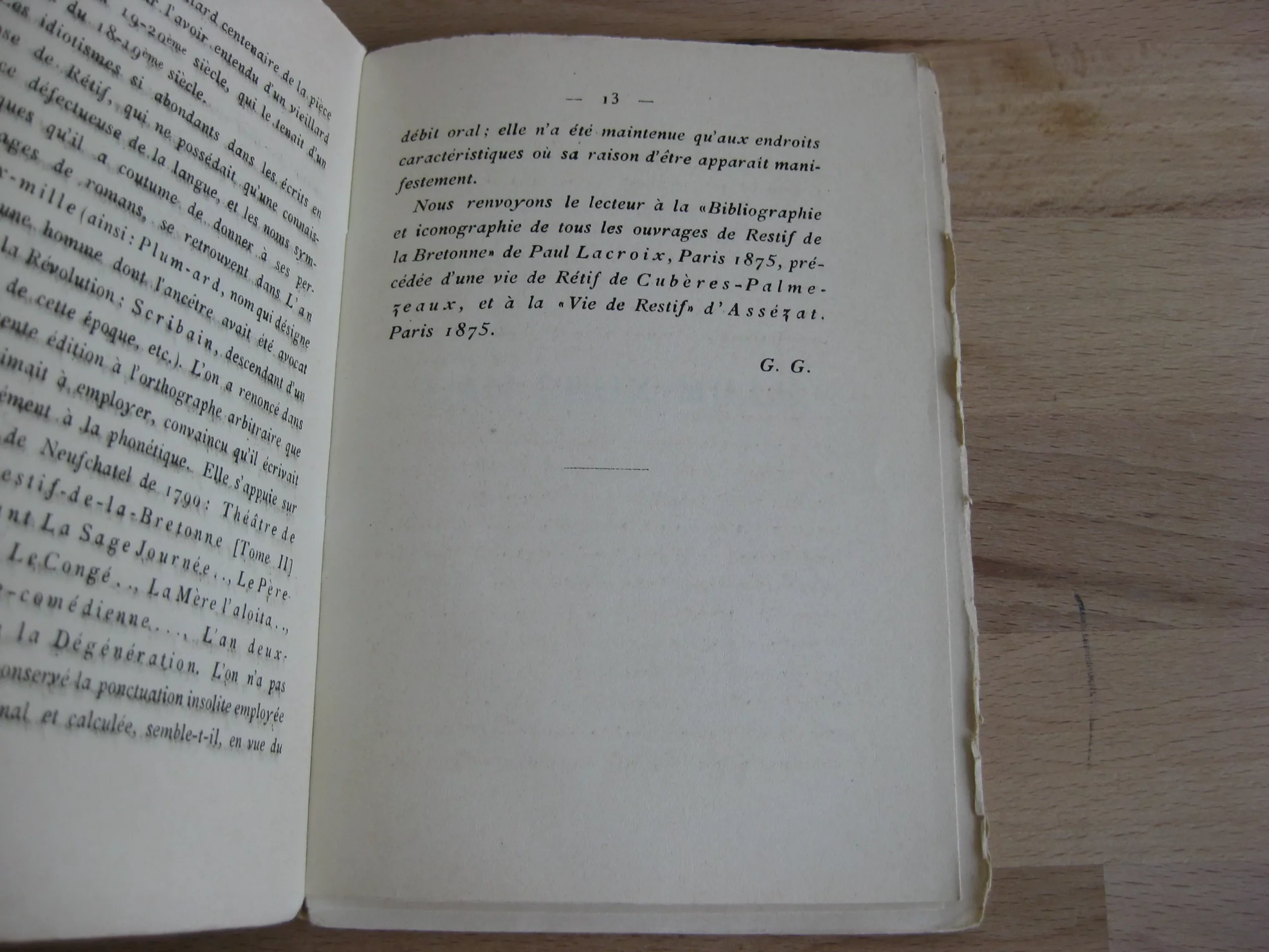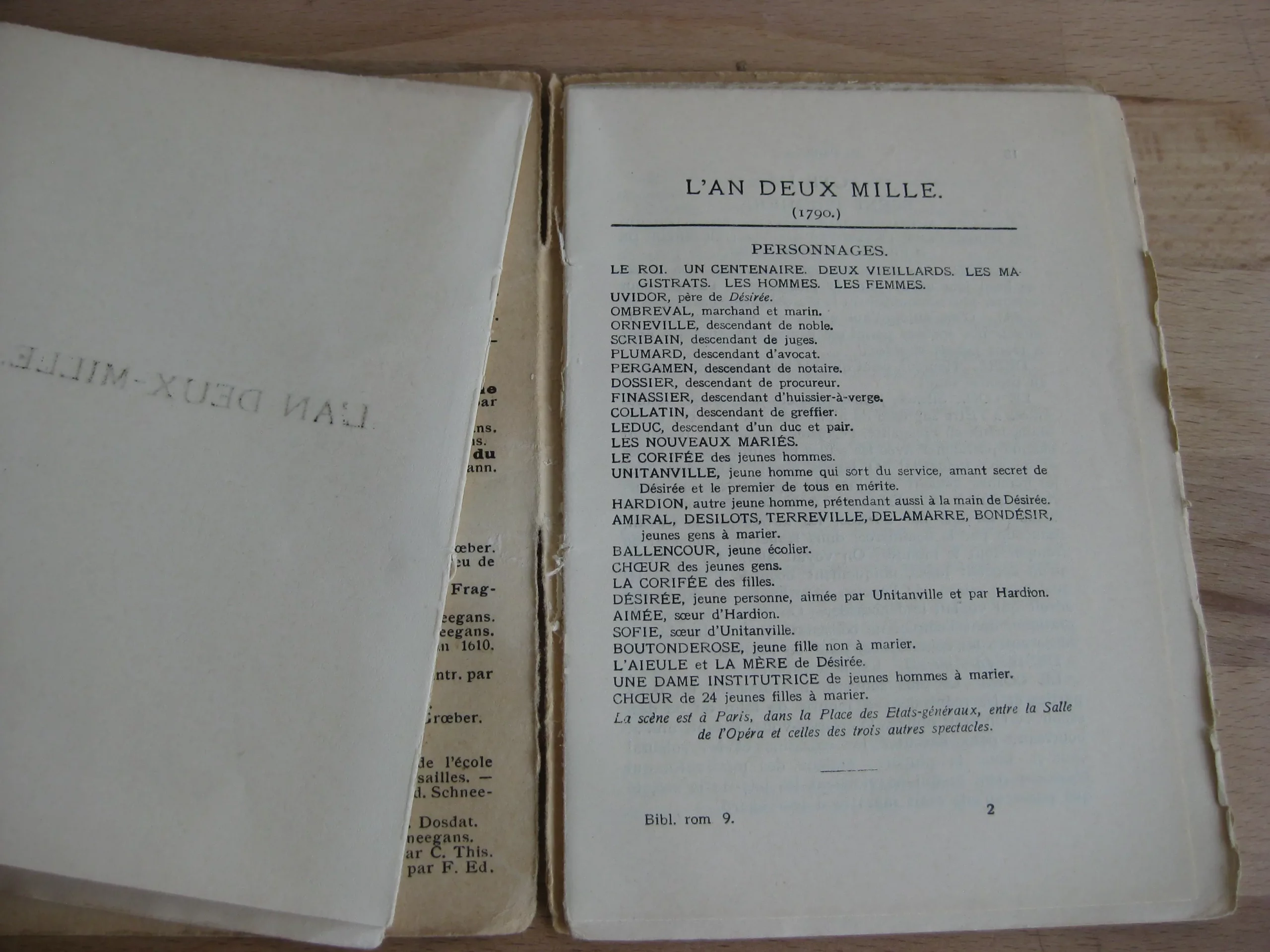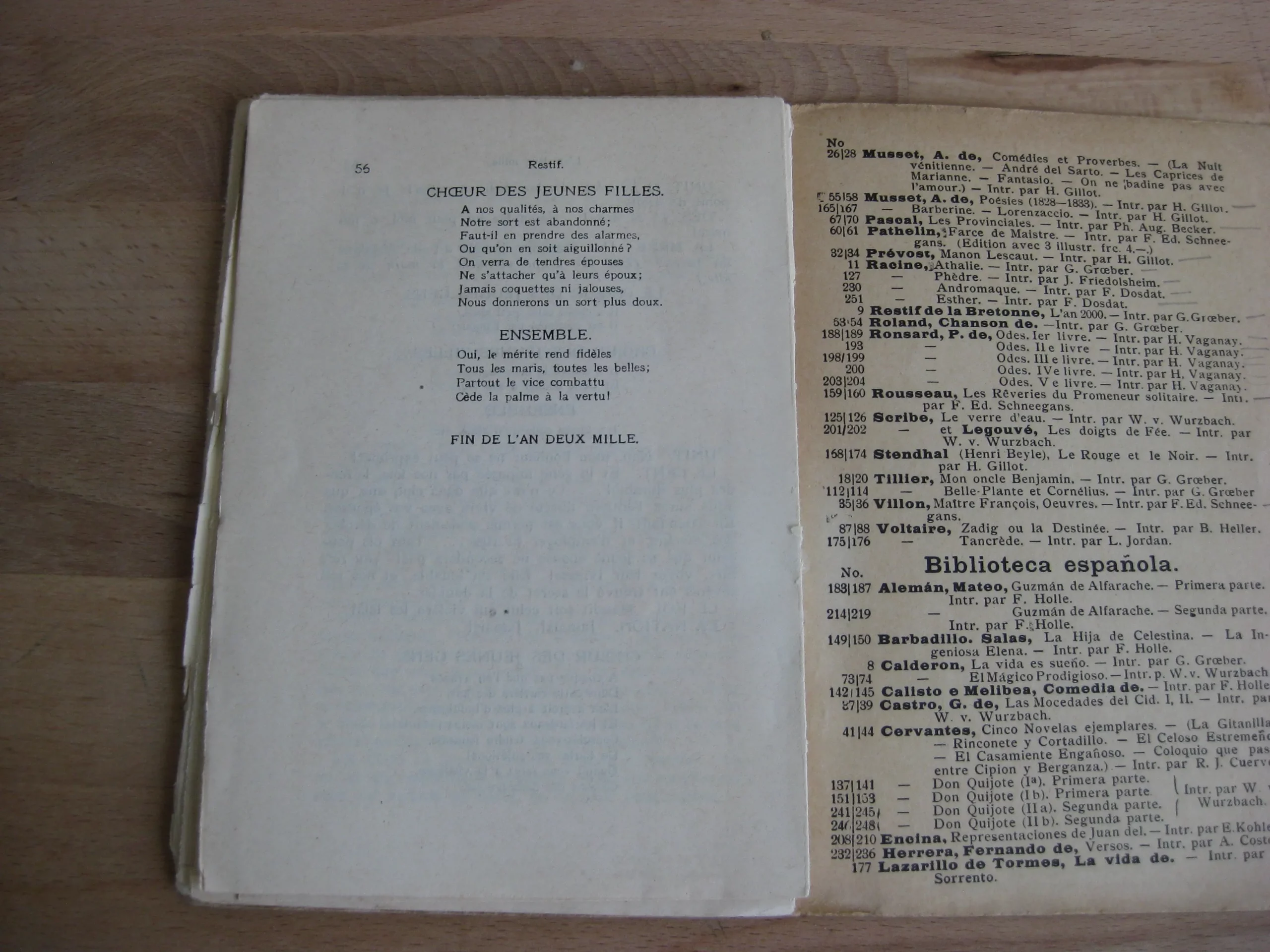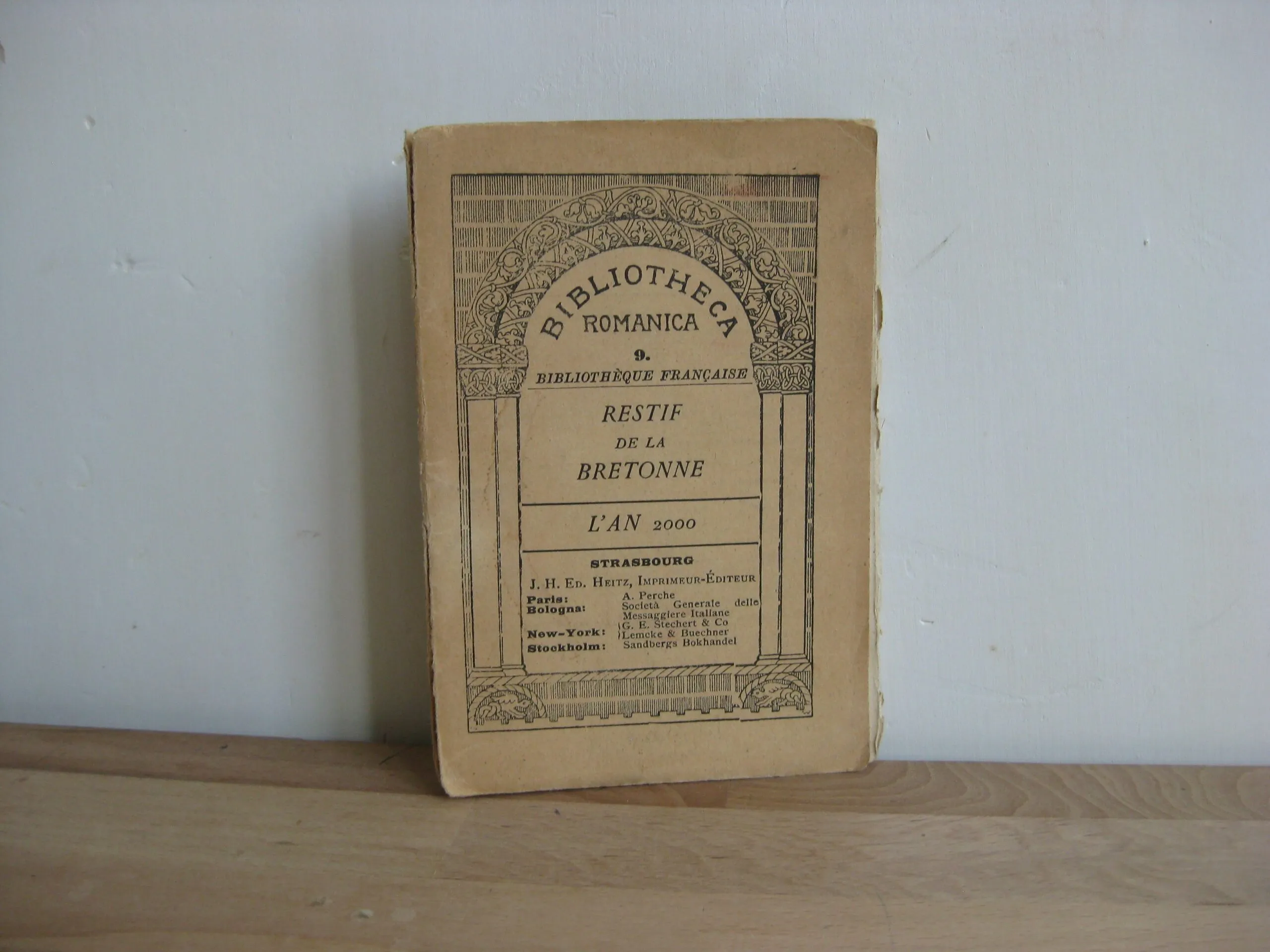 J. H. Ed. Heitz – Broché, 151 x 105, Sans date. (1905). Préface signée G.G. 12p. Suivi de L’An deux-mille (1790). Pièce de théâtre. Collection Bibliotheca Romanica n°9. Intérieur propre, avec un ex-libris en tête de première page. Couvertures propres, mais qui se détachent avec déchirure sans manque en tête et pied de dos. Exemplaire fragile.