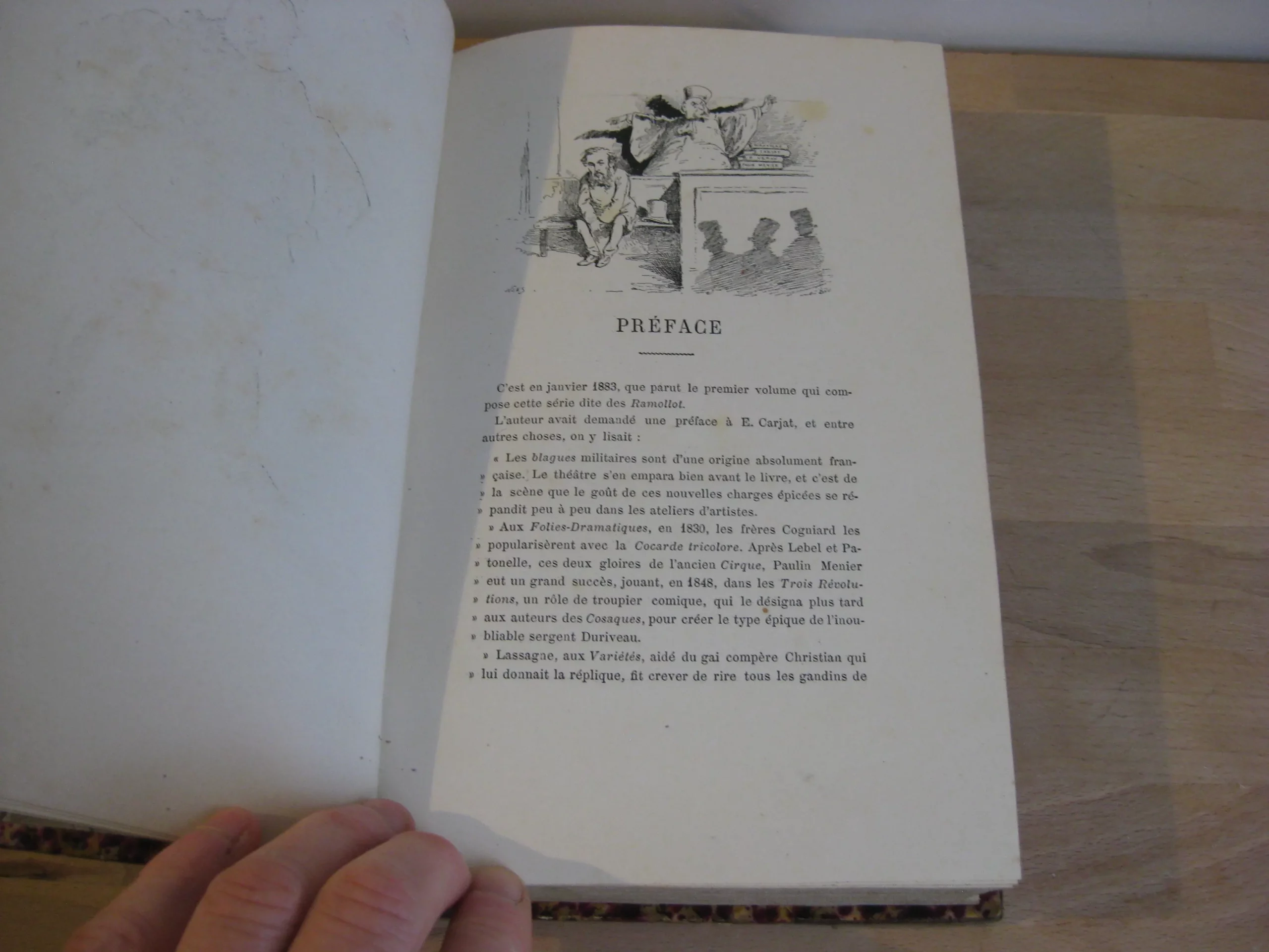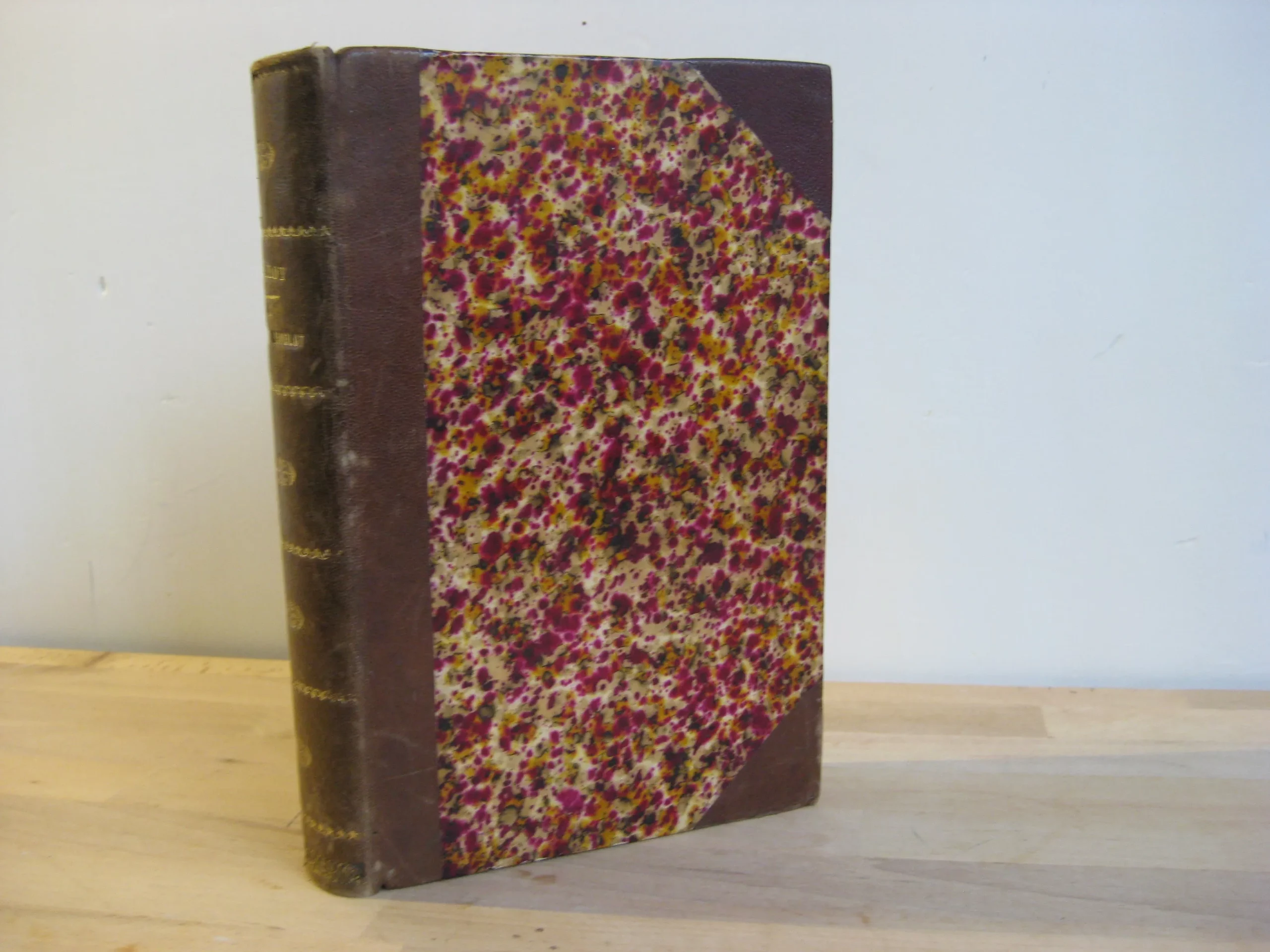 Half tan calfskin with corners, long back decorated with the title, the author, friezes and motifs, 243 x 170, 313p. Off the table. Undated (ca 1890). Color frontispiece. Numerous ill. Black in vignettes, headers, initials, cul-de-lampes, and 39 full-page out-of-text plates including 3 color watercolors and 2 comic strips, Foxing of varying intensity and frequency, otherwise clean. Rubbing on the binding and scratches with scuffs. But a good, firm copy.