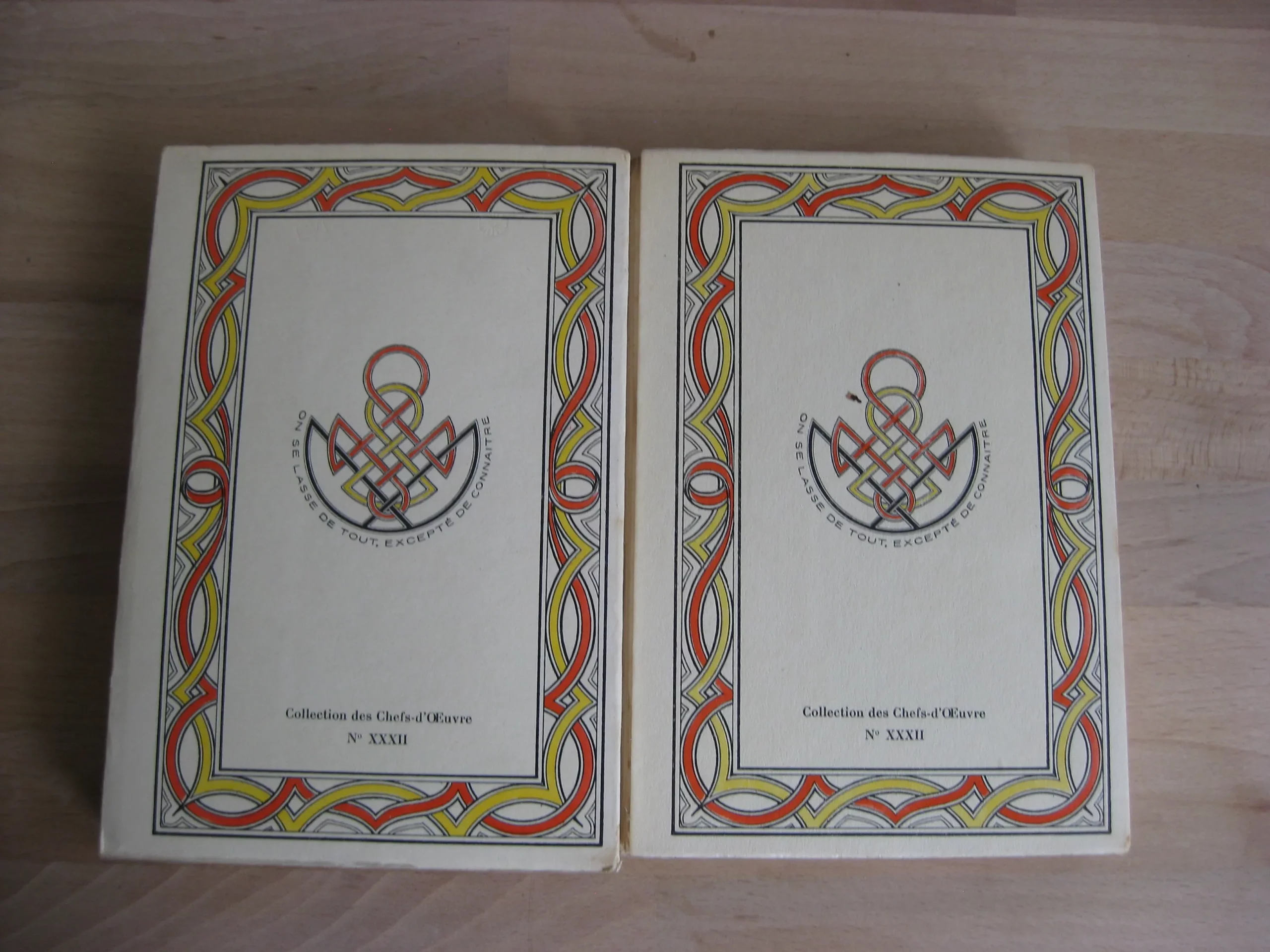 DescriptionLa Connaissance – Broché à couvertures rempliées, 190 x 130, 1926. Préface par Octave Mirbeau. Gravures hors-texte de Mariette LYDIS. Tirage limité à 1000 exemplaires numérotés, 1 des 800 exemplaires sur vergé de Rives. (635). Edition illustrée de 45 compositions originales de Mariette Lydis en deux tons. Complet. T1, 187p. T2, 402p. Intérieur très bon, propre et intègre. Couvertures propres et intègres. Dos insolés mais intègres, avec petite tache en pied. Bien fermes.