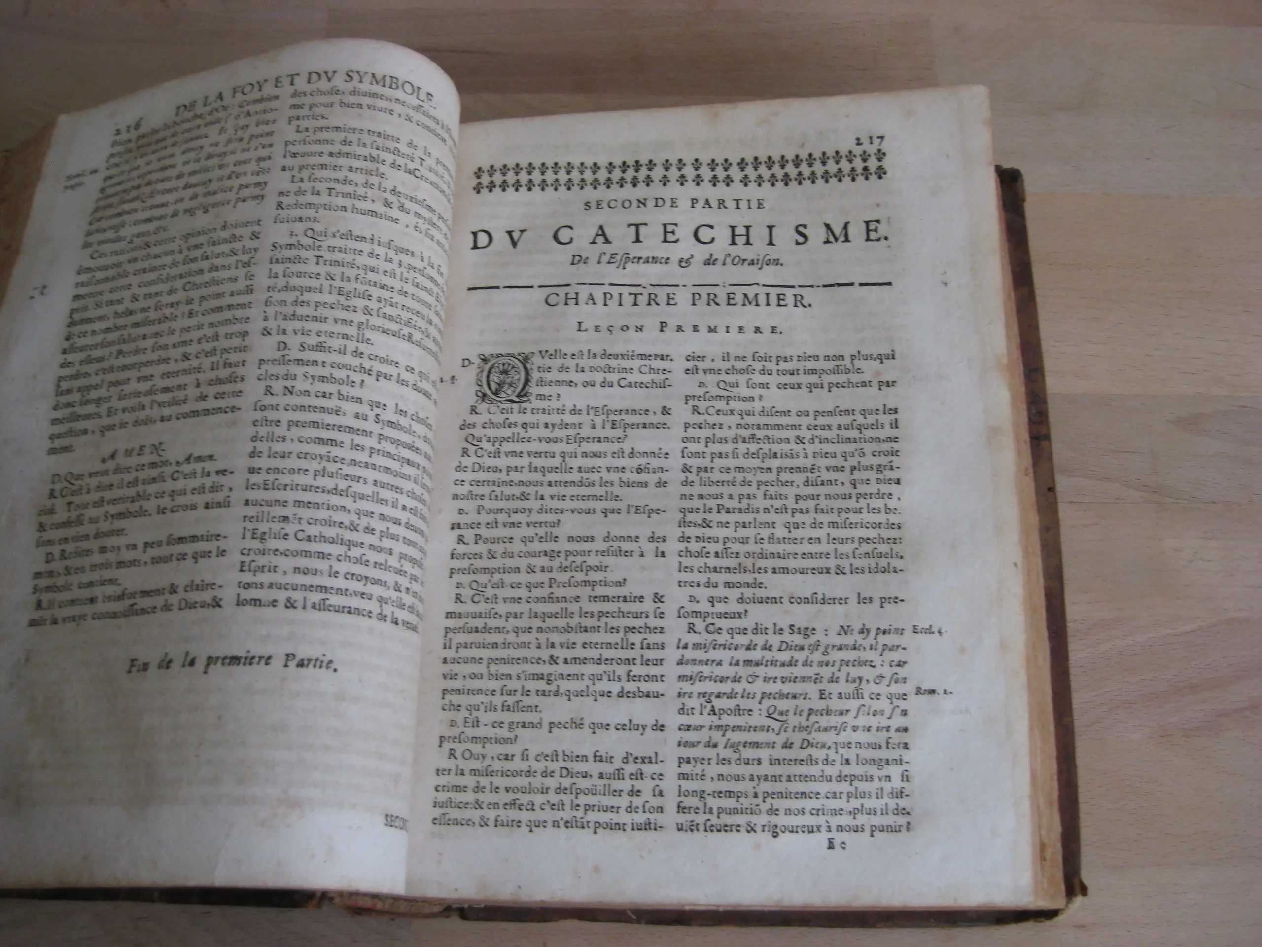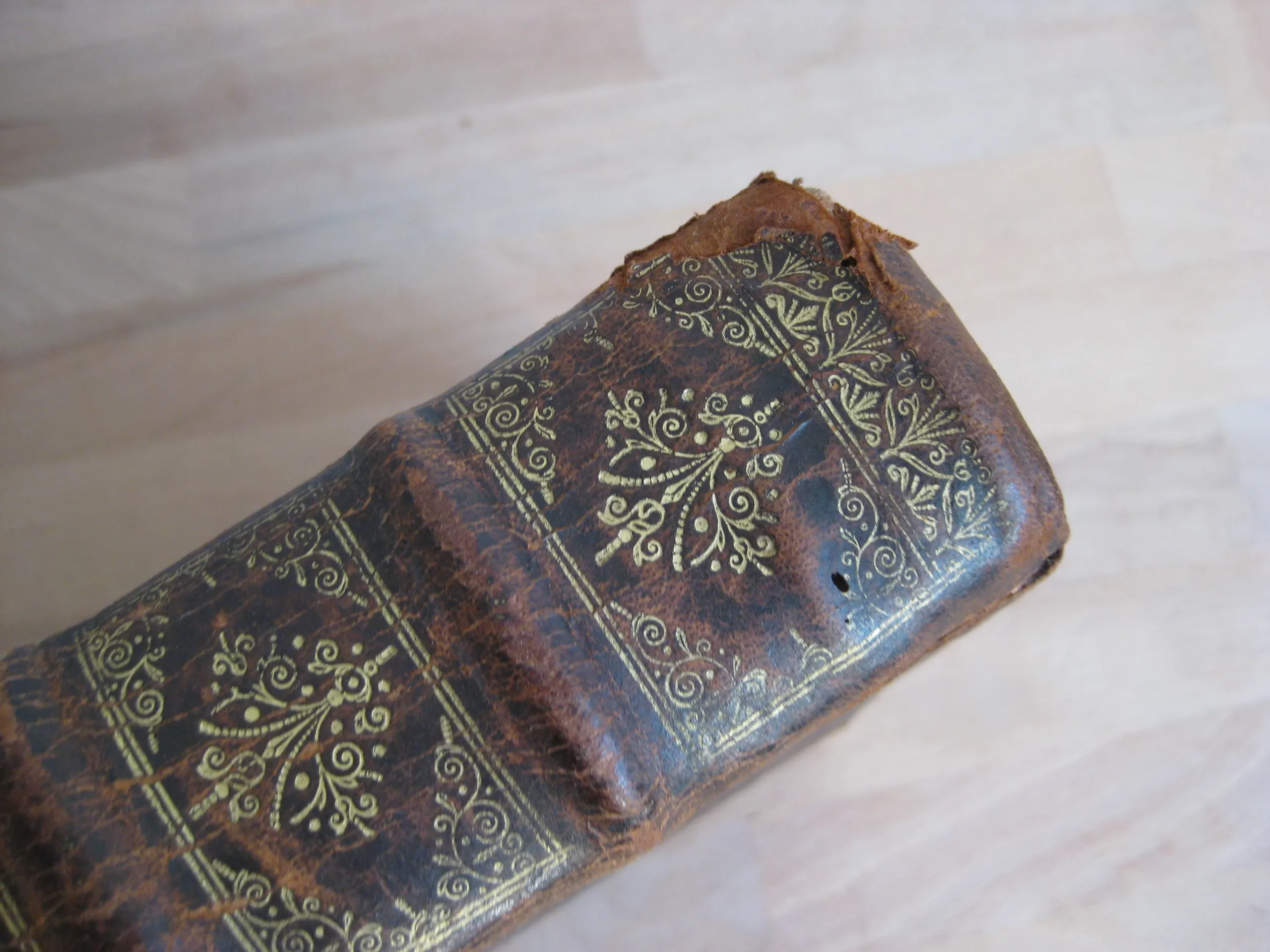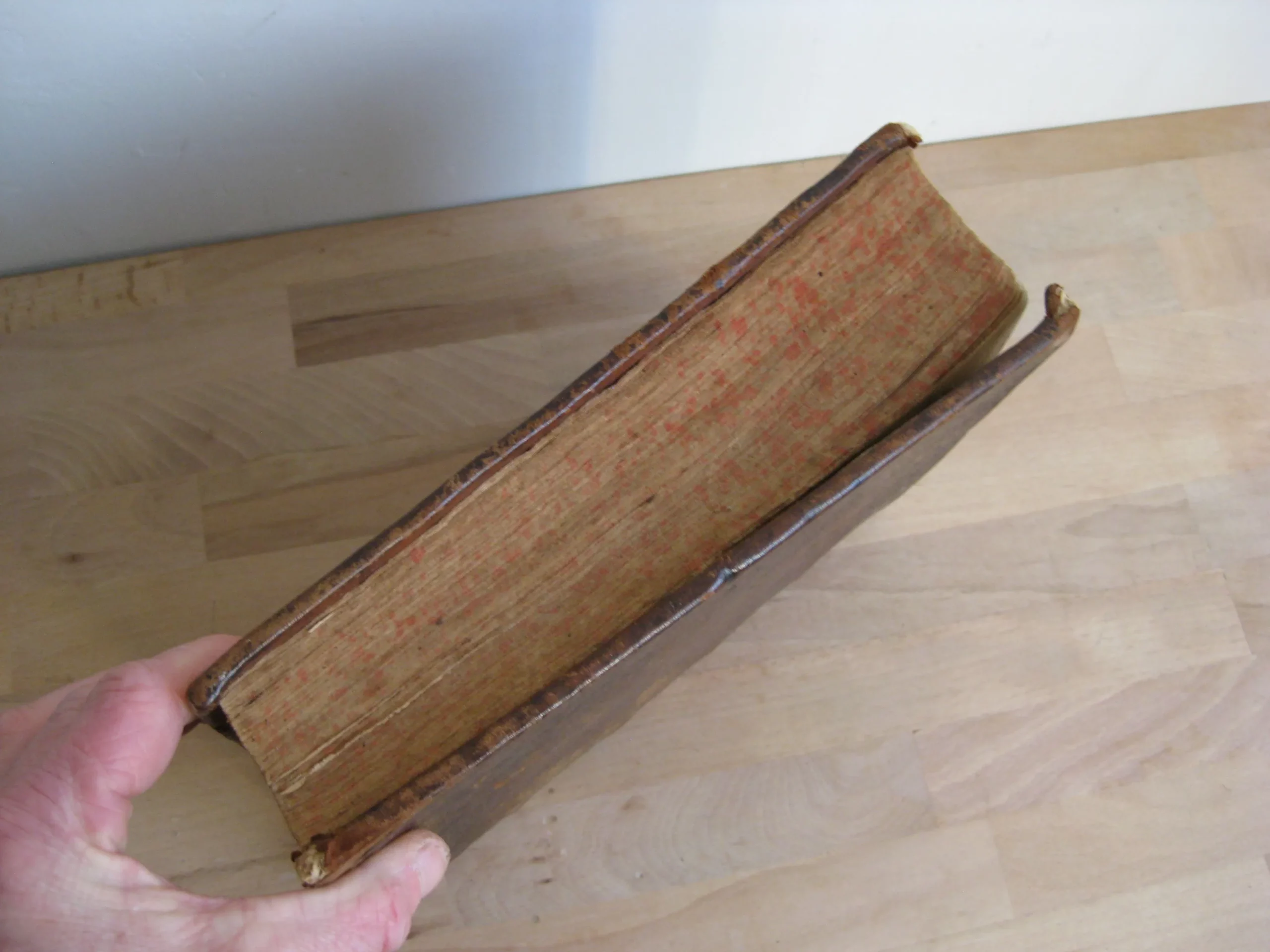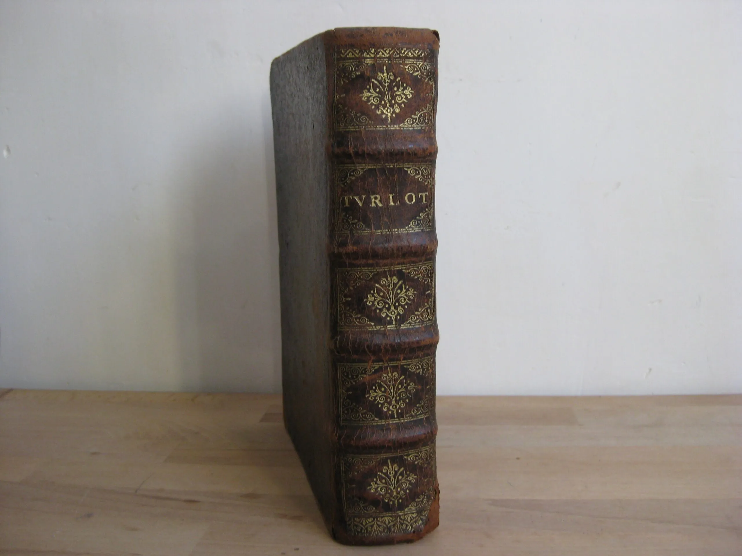 Plein veau, dos à nerfs, orné aux caissons, tranches jaspées rouges, 239 x 185, 1673. 756p. Suivi de la table. Précédé de Index concionatorius …,6p. Entête, cul-de-lampe. Vignette au titre. Garde manquante. Ex-libris au titre, un autre en contreplat supérieur illisible et présent en dernière page et en contreplat inférieur également ; deux autres ex-libris lisibles en dernière page vierge : « La Rouvière » et « Antonij Cosse, humanioribus litteris studientis. Die vigessima marlis 1717 ». Texte sur 2 colonnes. 1Ère partie, 216p. 2Nde part. 217-346 pp. 3Ème part. 347-558 pp. 4Ème part. 559-748 pp. Et Adresse pour bien faire la confession générale, 749 à 756, suivie de la table générale. Intérieur avec rousseurs variables, plus souvent légères, et mouillures en pied de page, modérées. Plats frottés avec épidermures et petits manques et trous de vers. Champs et coins frottés, 3 coins émousés. Dos frotté aux nerfs, coiffe et queue, avec deux trous de vers, et manque en pied ; manque que l’on retrouve en pied de mors supérieur. Exemplaire bien ferme.