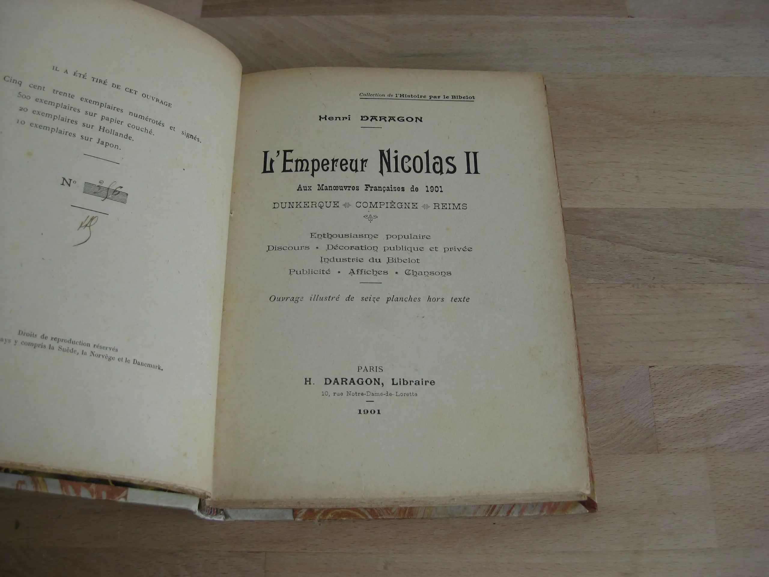 DescriptionL’Empereur Nicolas II Aux Manœuvres Françaises de 1901. Dunkerque – Compiègne- Reims. Enthousiasme populaire. Discours. Décoration publique et privée. Industrie du bibelot – Publicité – Affiches – Chansons.