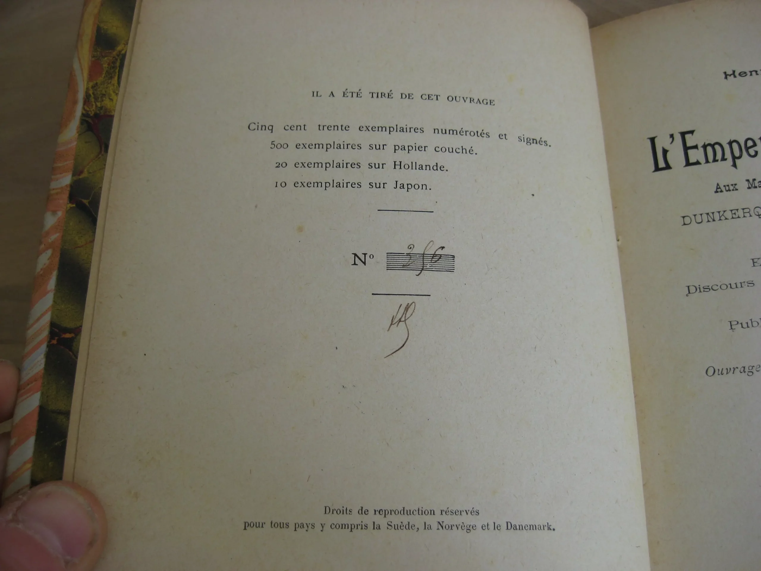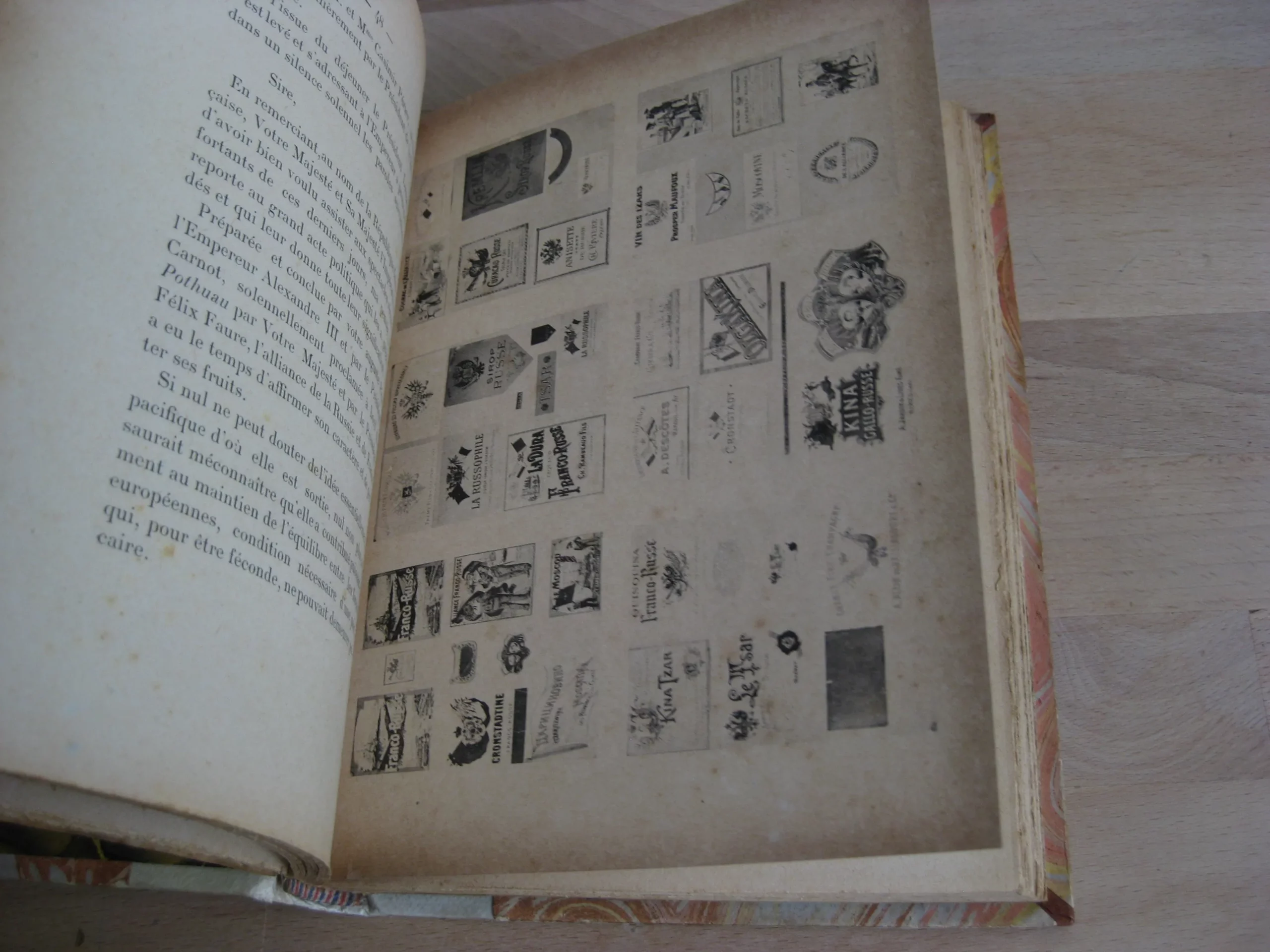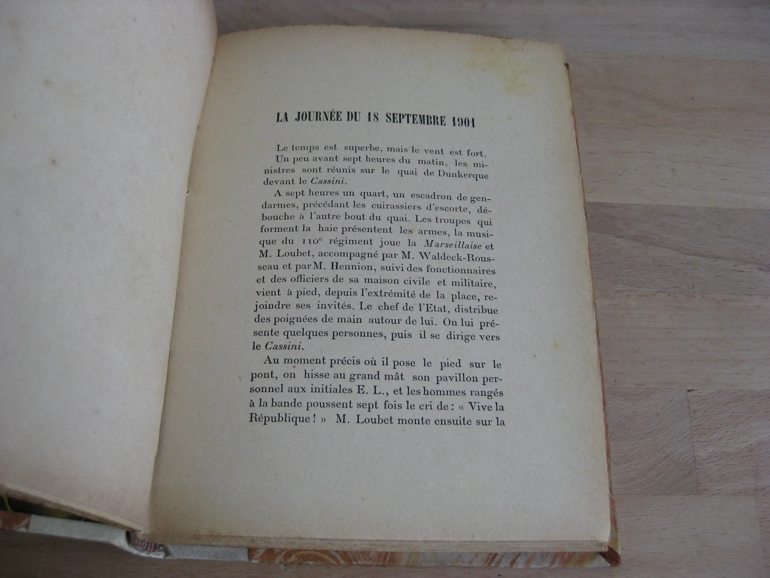 Demi-veau blond, dos à faux-nerfs, orné d’une pièce de titre en maroquin brun, nerfs cernés de frises, dos orné en plein d’un motif doré et en pied d’un super libris J.F. L., 196 x 147, 126p. Avec tables des matières et des illustrations. 1901. Édition originale numérotée 356, un des 500 sur papier couché, signé de l’auteur-éditeur (530 tirage total). Collection de l’histoire par la bibelot. Intérieur légèrement insolé mais propre et intègre. Des rousseurs sur tranches. Reliure légèrement insolée et frottée mais très bel état. Les grandes manoeuvres de l’Est de 1901 désignent d’importants exercices militaires menés par une partie de l’armée française, dans l’Est de la France, durant le début de l’automne 1901. Et se déroulèrent en présence de l’empereur Nicolas II.