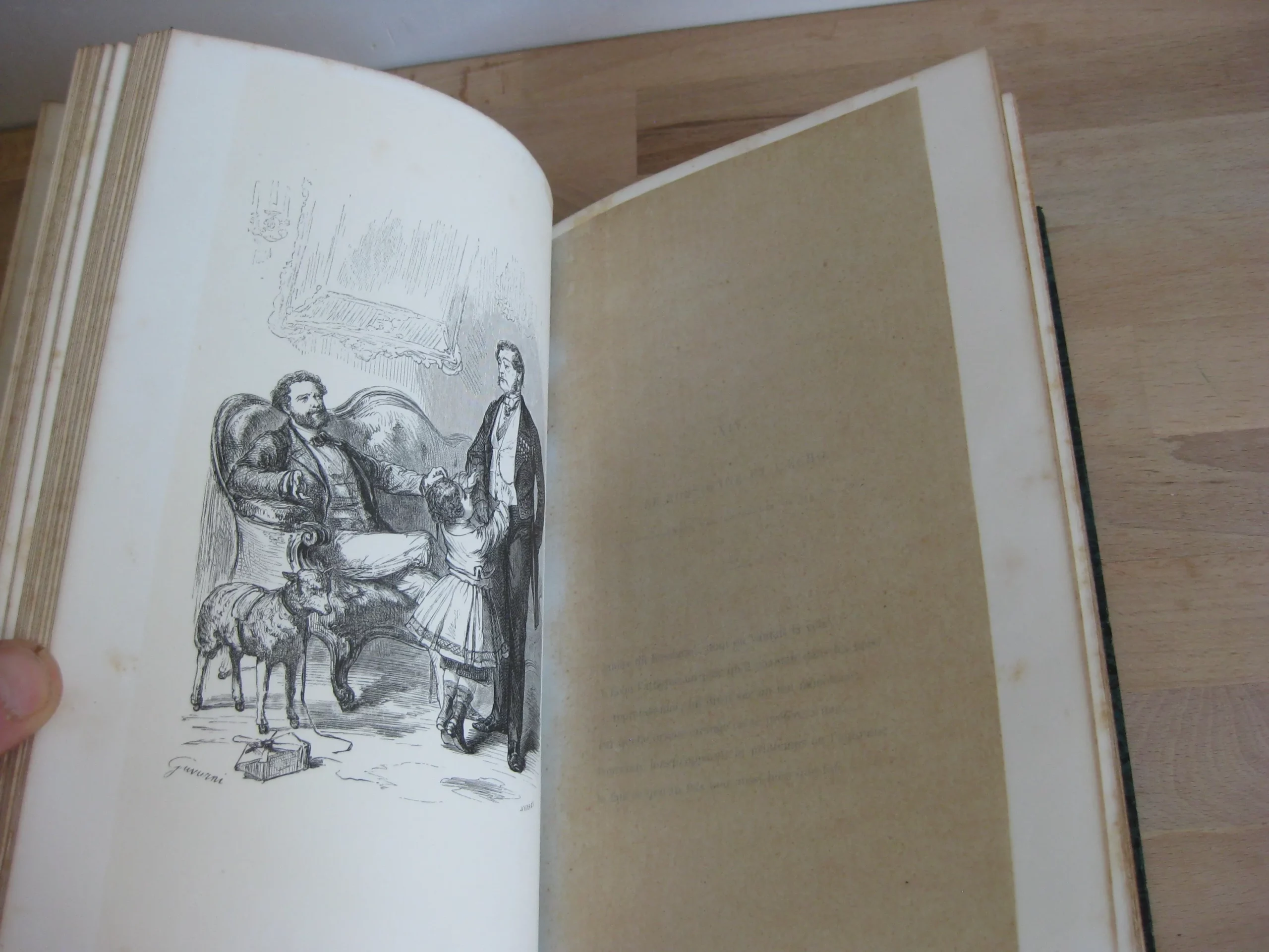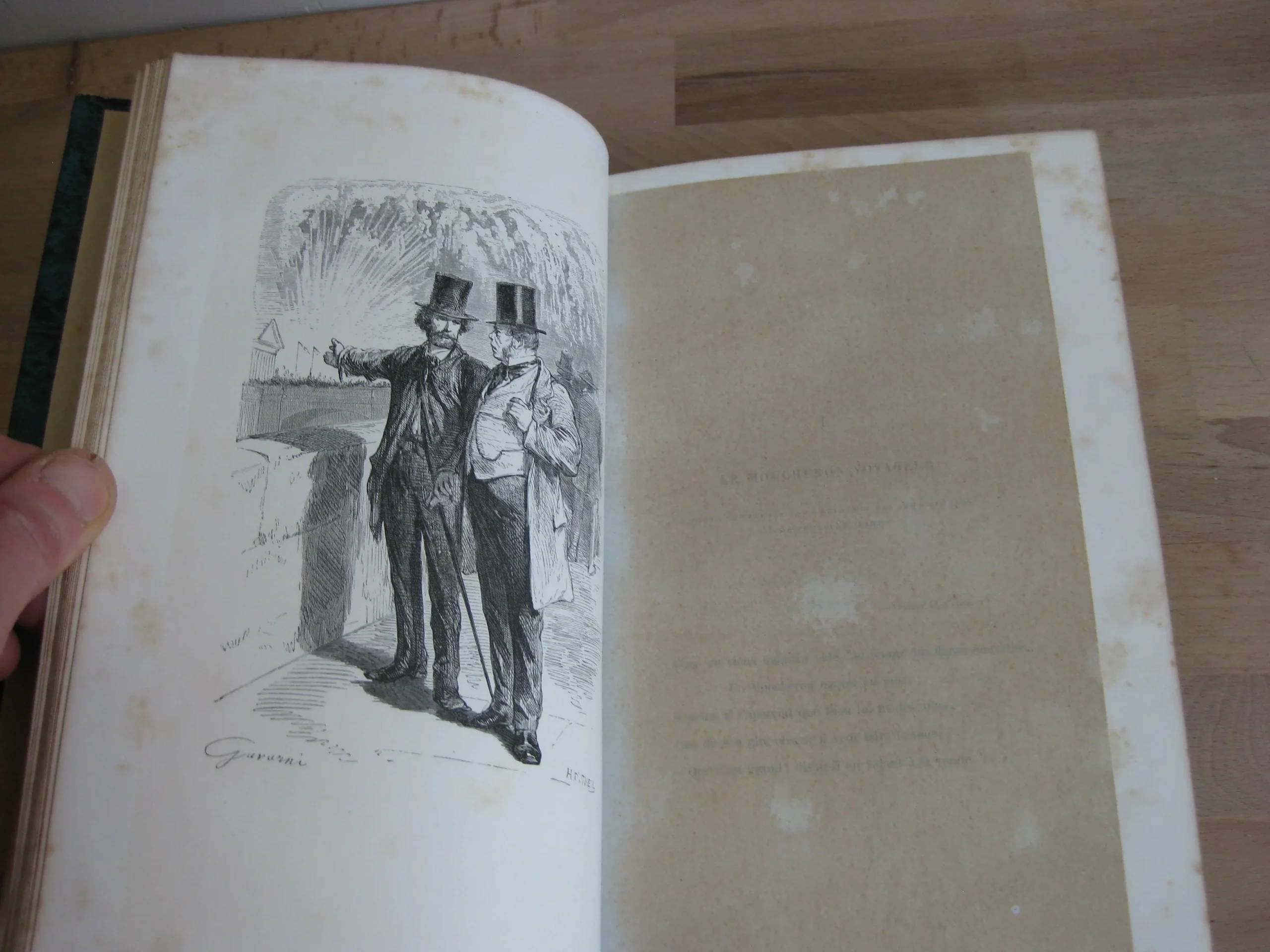 Demi-basane olive à dos long, orné du titre, de liserés, d’un super-libris en pied et d’une cote en tête, 231 x 105, 284p. Avec table. Sans date (1866). Frontispice sous serpente, et 8 pleine page sous serpente de Gavarni. Edition originale. Intérieur bon, des rousseurs, mais plus souvent en marge. Des frottements et épidermures à la reliure mais bon état. Coins très légèrement émoussés. Bon exemplaire, bien ferme.