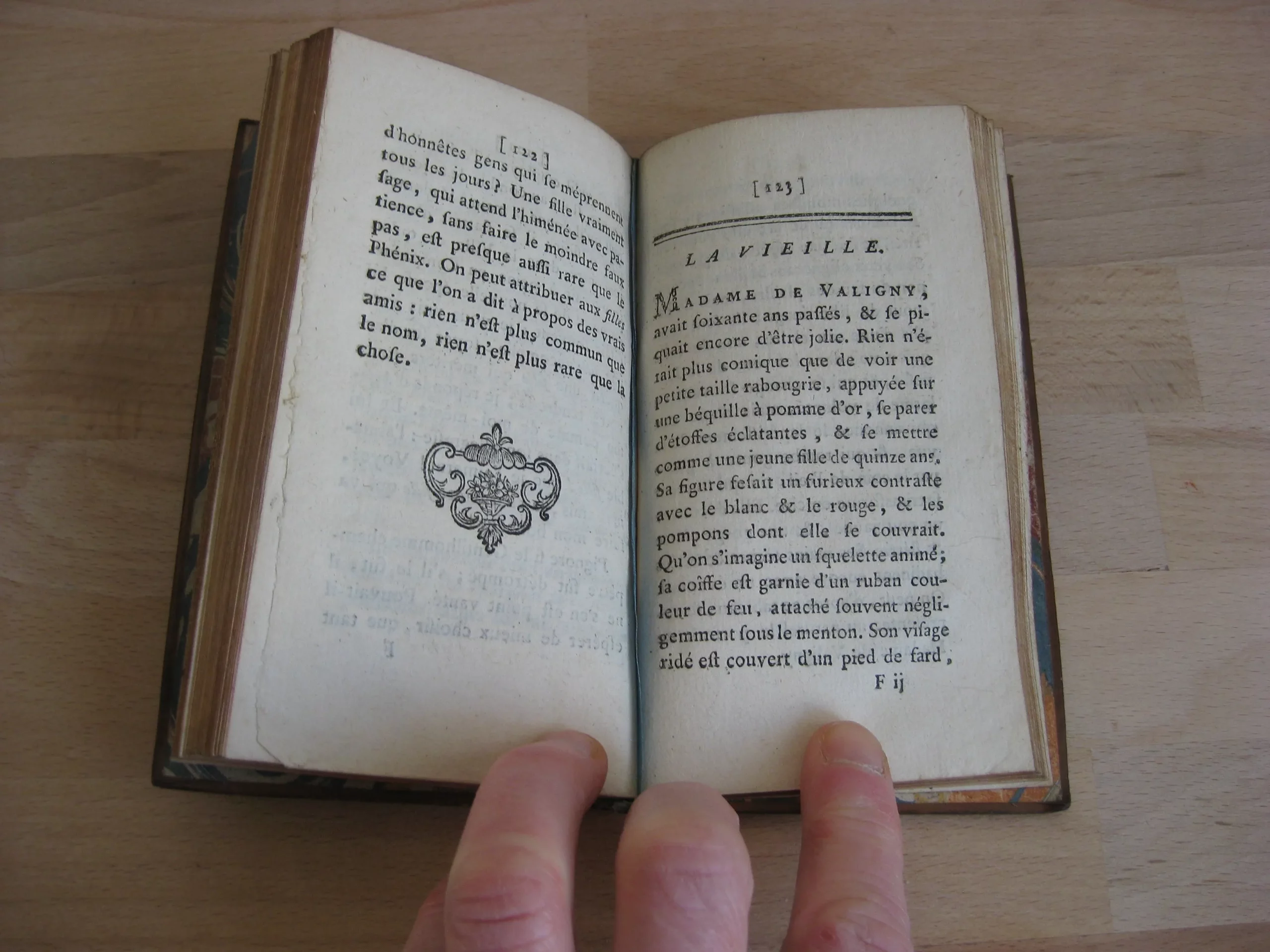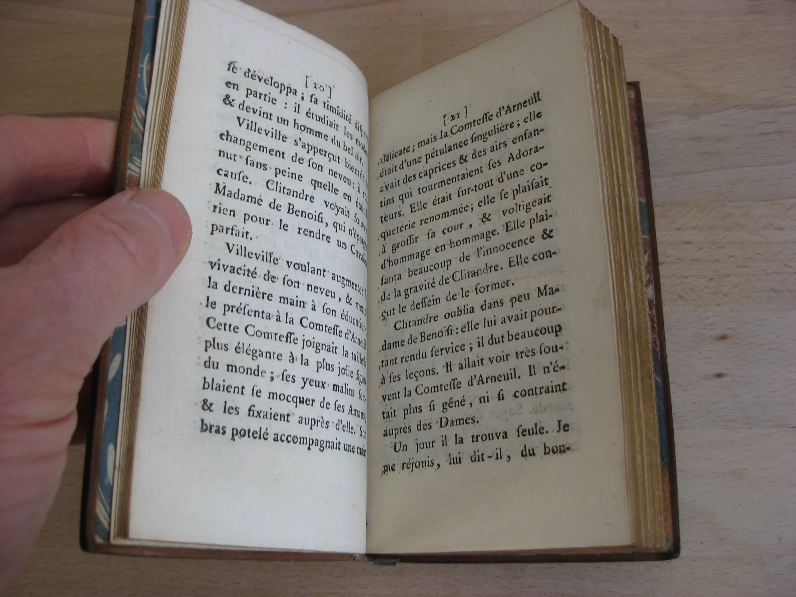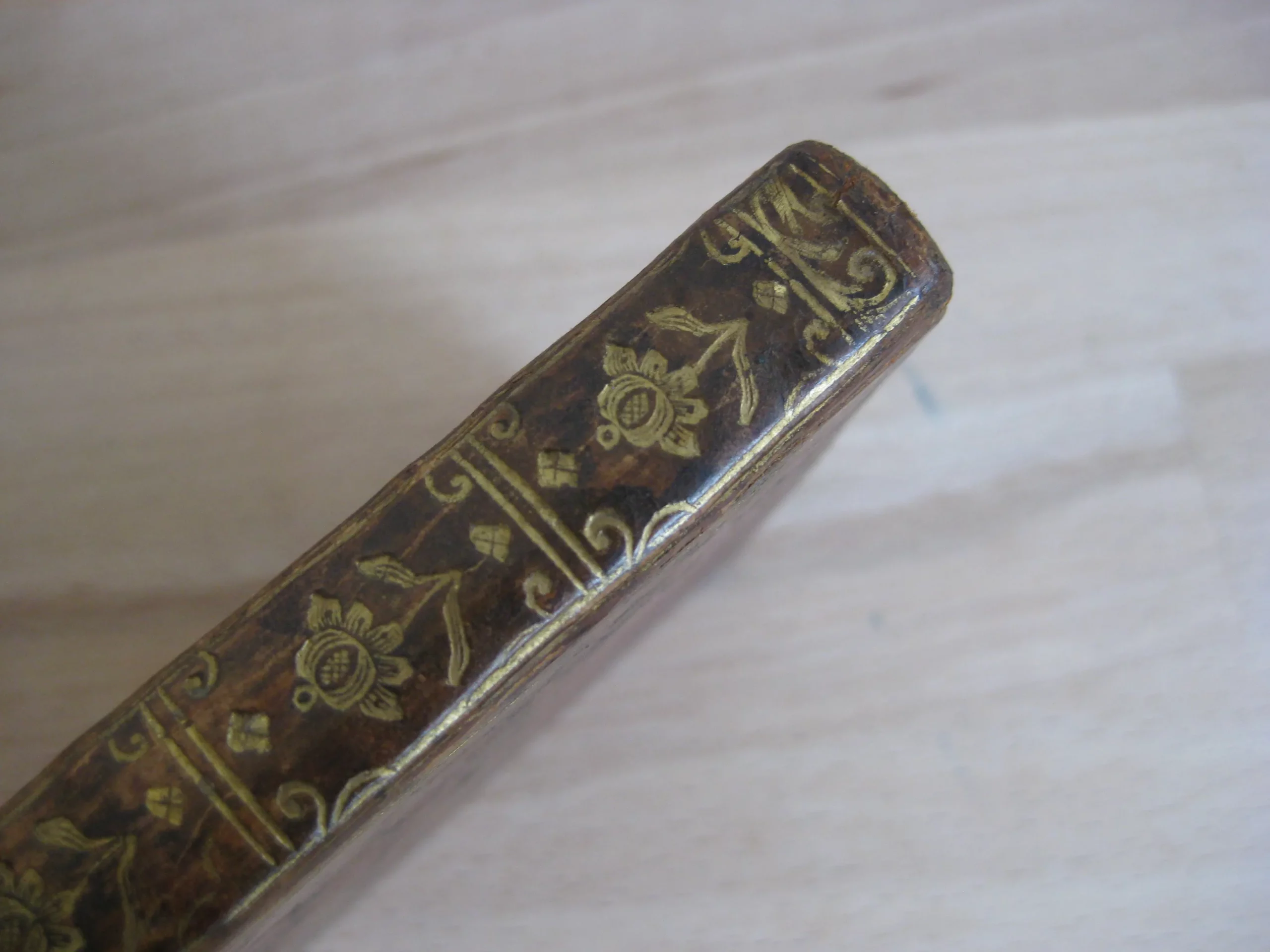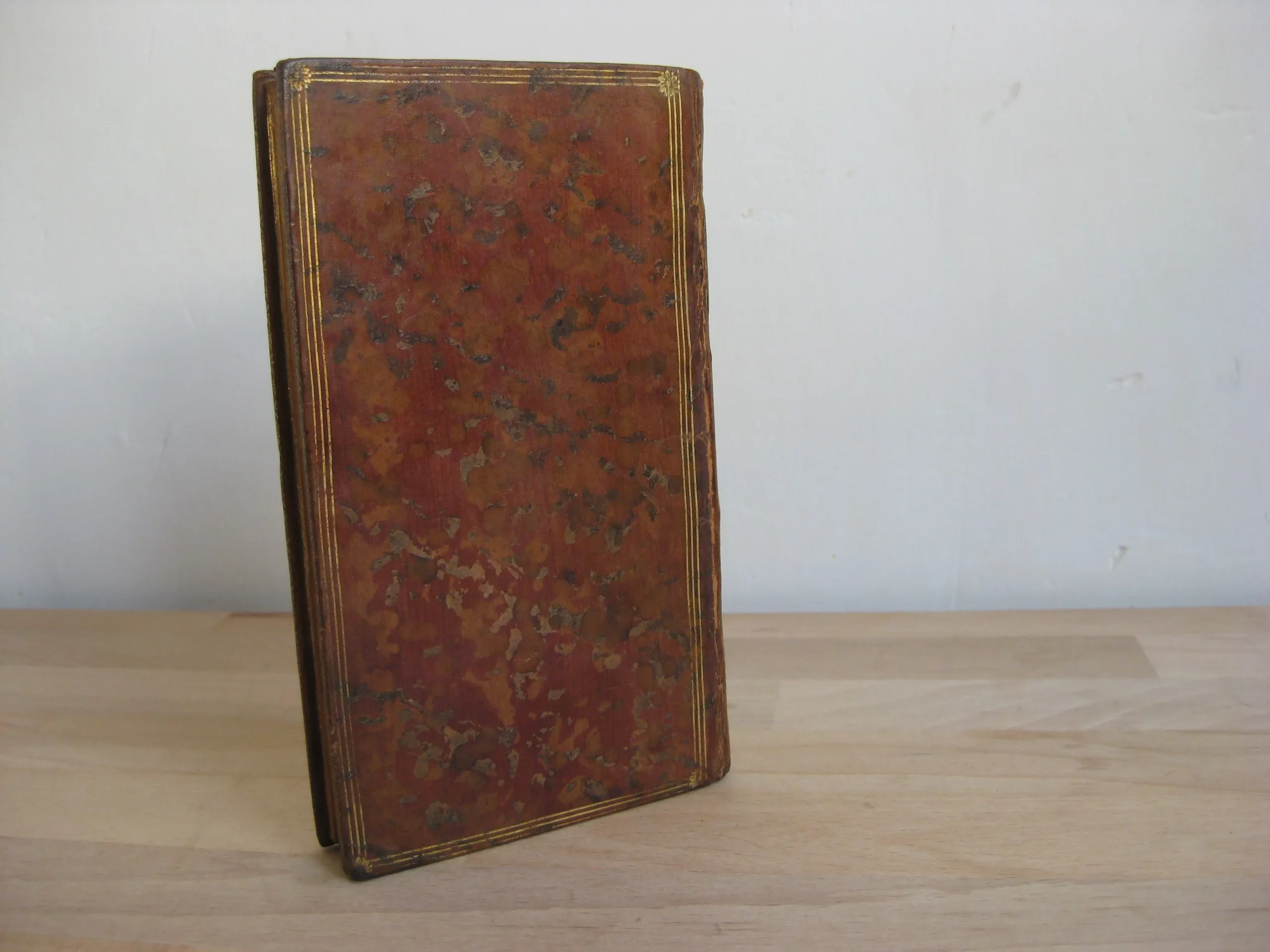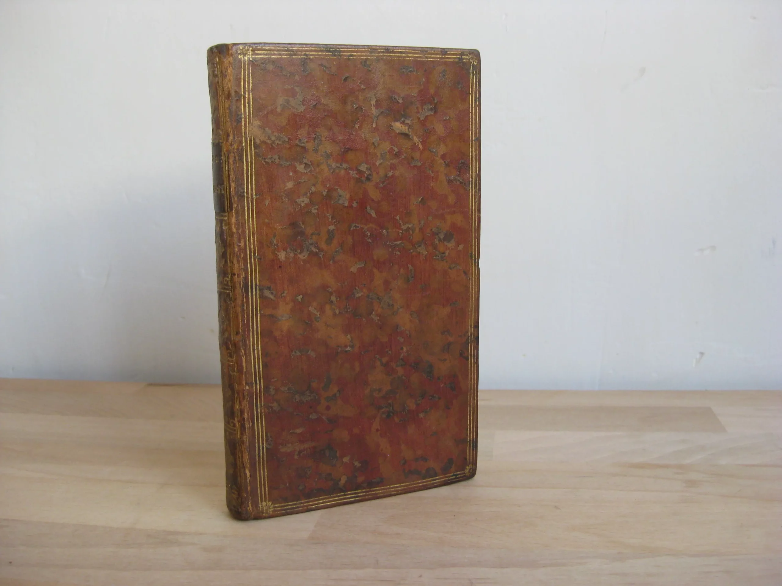 Plein veau marbré à dos long, plats et dos ornés, fleurons, pièce de titre en maroquin brun, triple liserés et motifs floraux en plats, chasses de gouttière ornées de motifs floraux, tranches dorées, signet, 144 x 84, 159p. Hors table. 1766. Première édition. Intérieur très bon, propre et intègre. Plats frottés mais avec quelques traces noires, mais très bons.Dos frotté, avec épidermures légères en coiffe et pied.