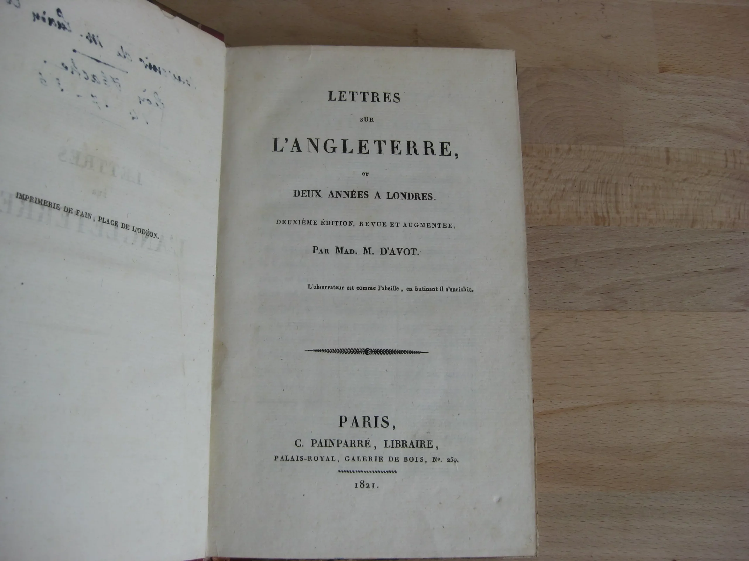 Lettres sur l’Angleterre, Ou deux années à Londres – Mme M. D’Avot
