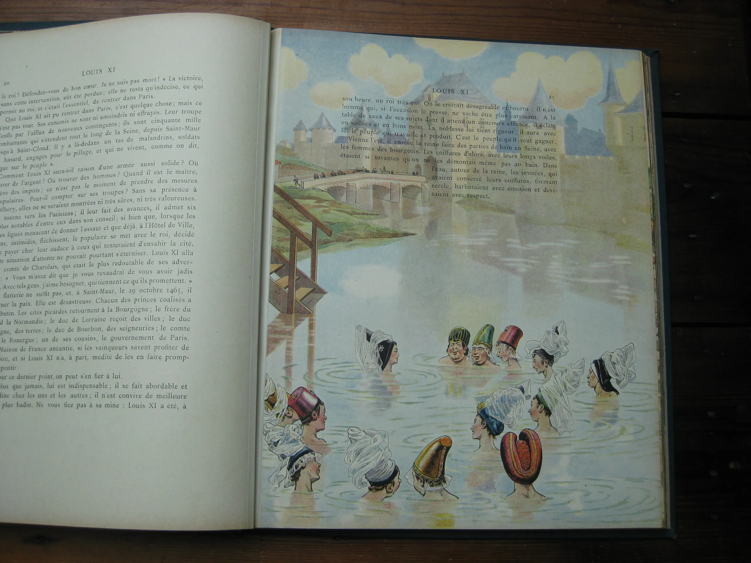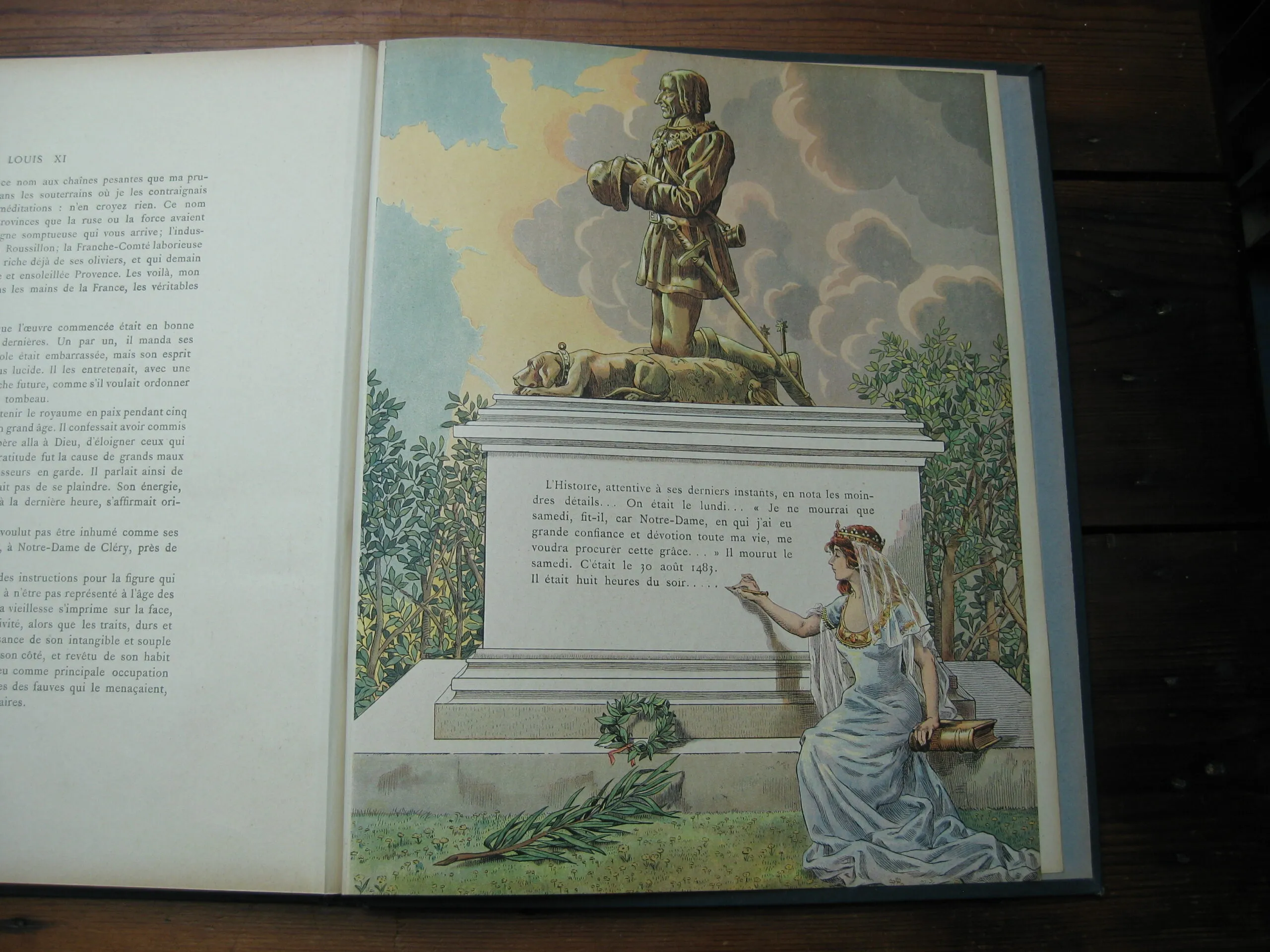 Full illustrated percaline in color signed Poënsin, with long spine decorated with the title, all edges gilt, 370 x 300, 1905. Foreword, paginated II-IV, then the text, 79p. Interior very good, clean and intact. Corners rubbed, a little dulled for three of them. Fields rubbed, one field of head with epidermis. Covers rubbed but good. Spine rubbed with tear without loss at head. good copy very firm. Also in stock from the same duo and in the same format: Bonaparte; Les trois couleurs; France son histoire; La cantinière.