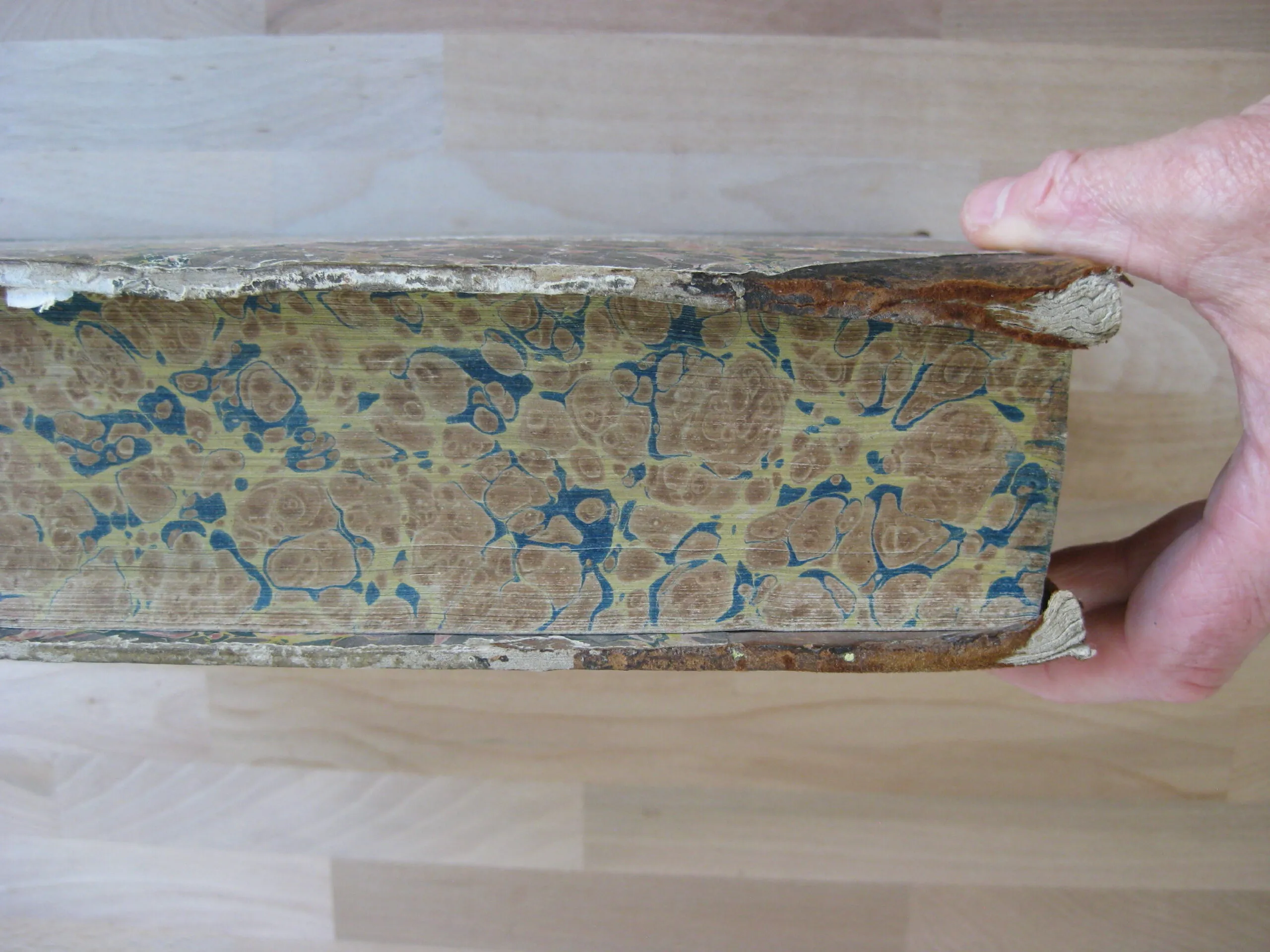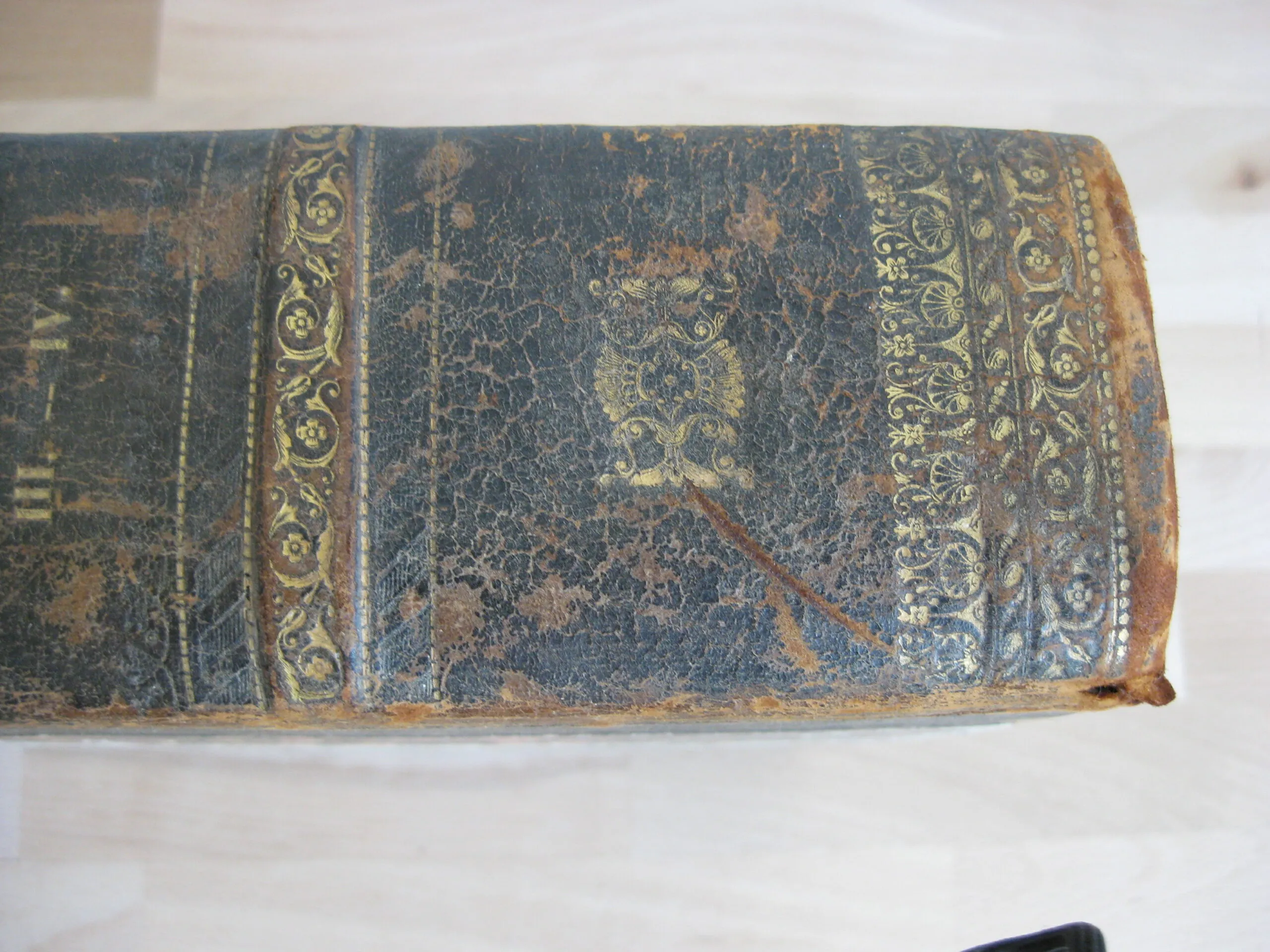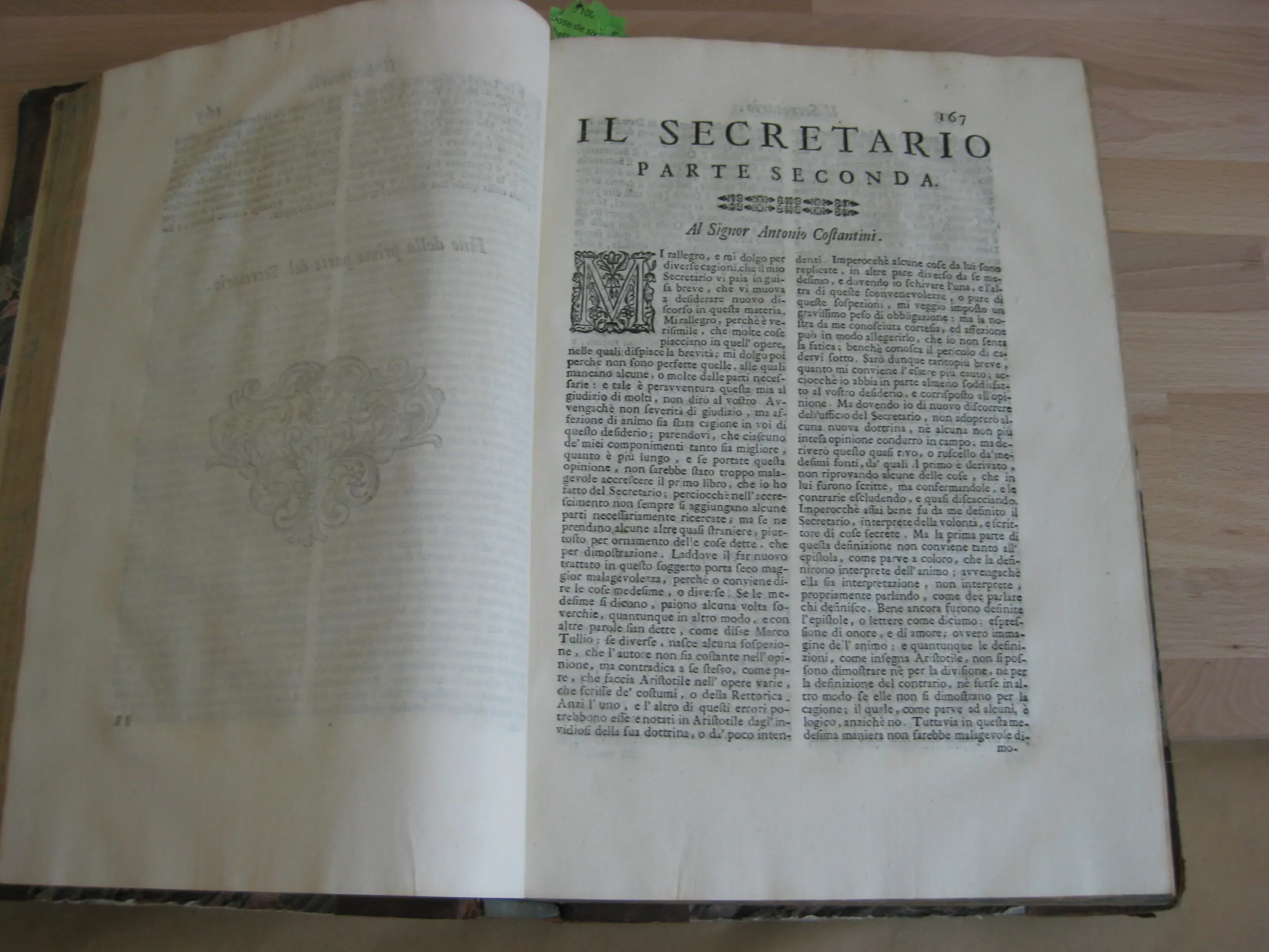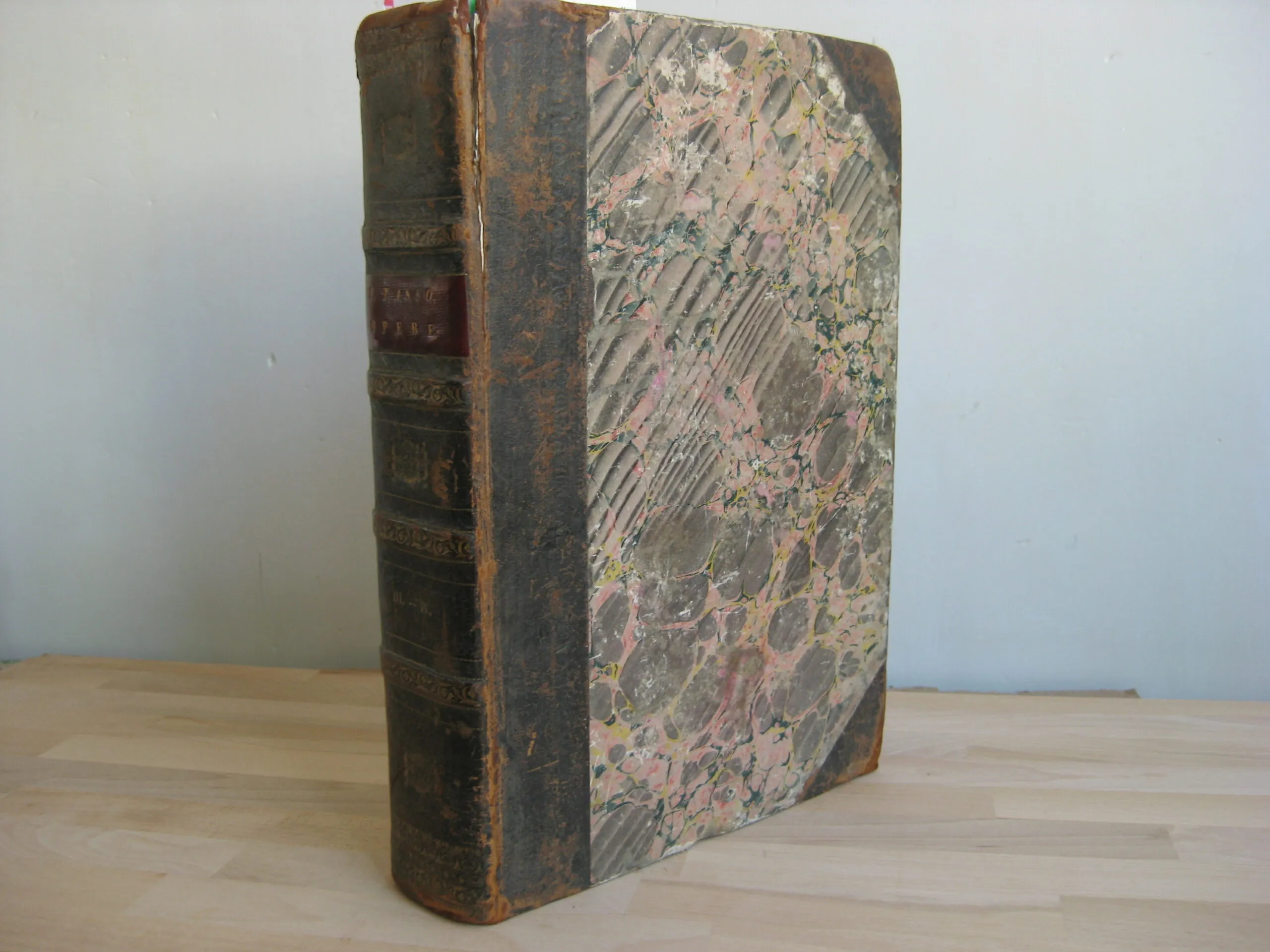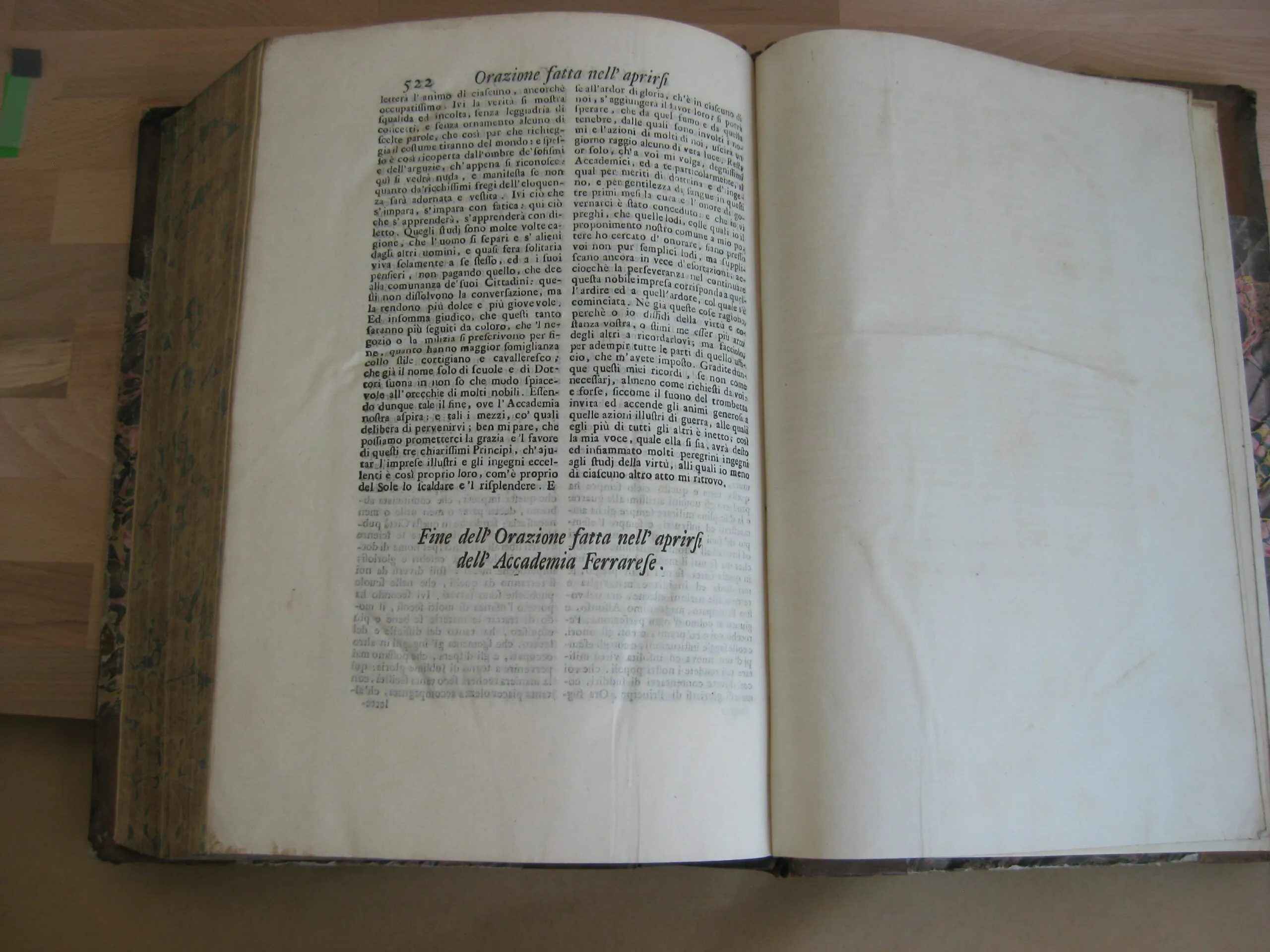 In-folio, half brown sheepskin with corners, ribbed spine decorated with ribbed friezes and boxes, a red calf title label, and volume numbers, veined edges, covers stamped with a frieze in the height, 338 x 233, 1724, Florence. For both volumes, very beautiful engraved vignette on the title with motto "Aeternitatis instrumentum in documentum", and signed "Av. W.". Includes: Table of the terzo tomo, 2p. Then Prose di torquatotasso, Parte prima. 508p. Table of the quarto tomo, 2p. Then Prose di torquatotasso, Parte seconda, 522p. Very good interior, clean and intact. Corners and fields rubbed, corners bumped. Covers rubbed with scuffs. Rubbed joints, upper joint split along the height of the first nerve, and lower joint at the head and foot but less long. Rubbed back, scuffs on the headdress, tail, caissons. A fine specimen nonetheless.