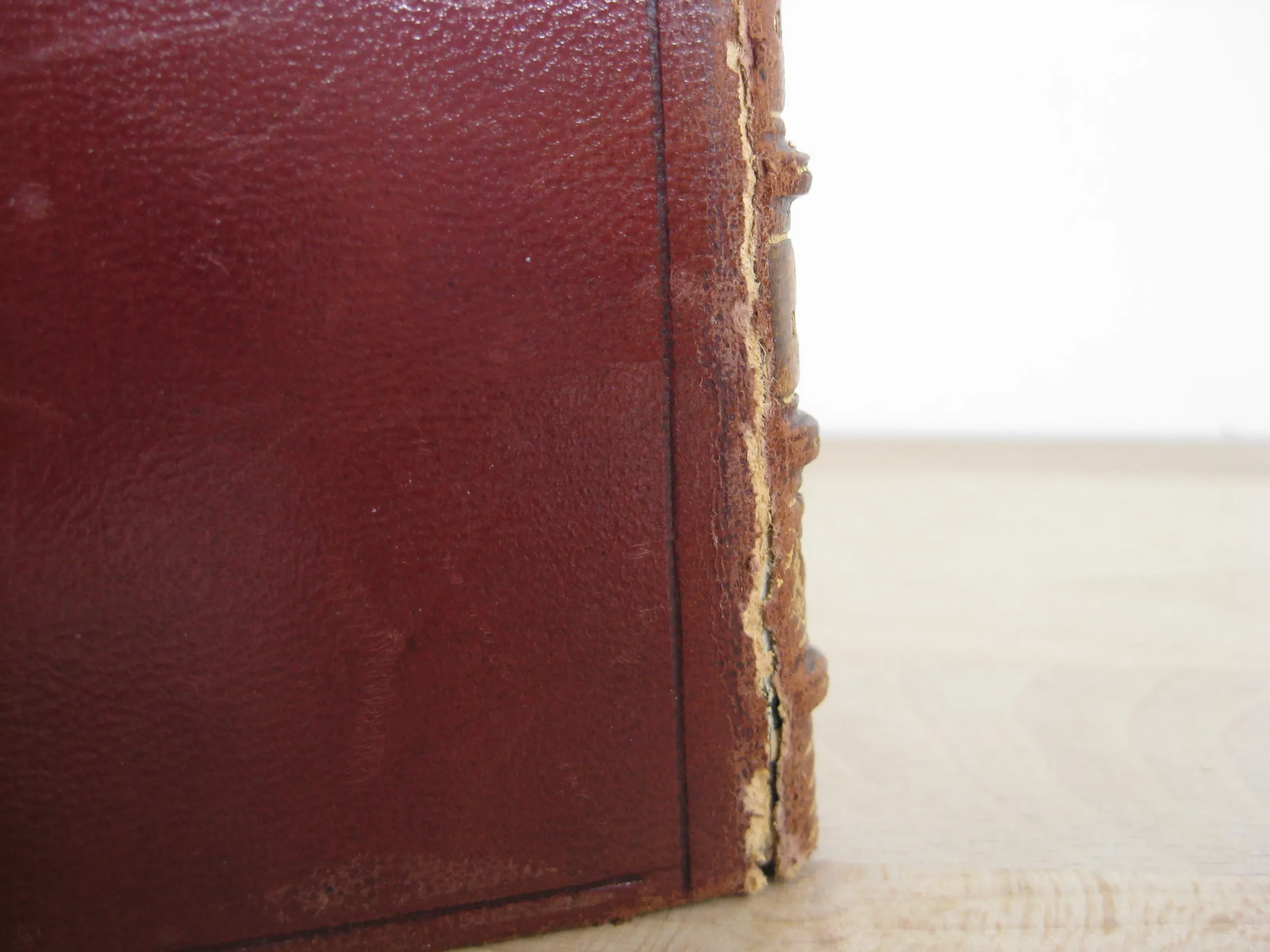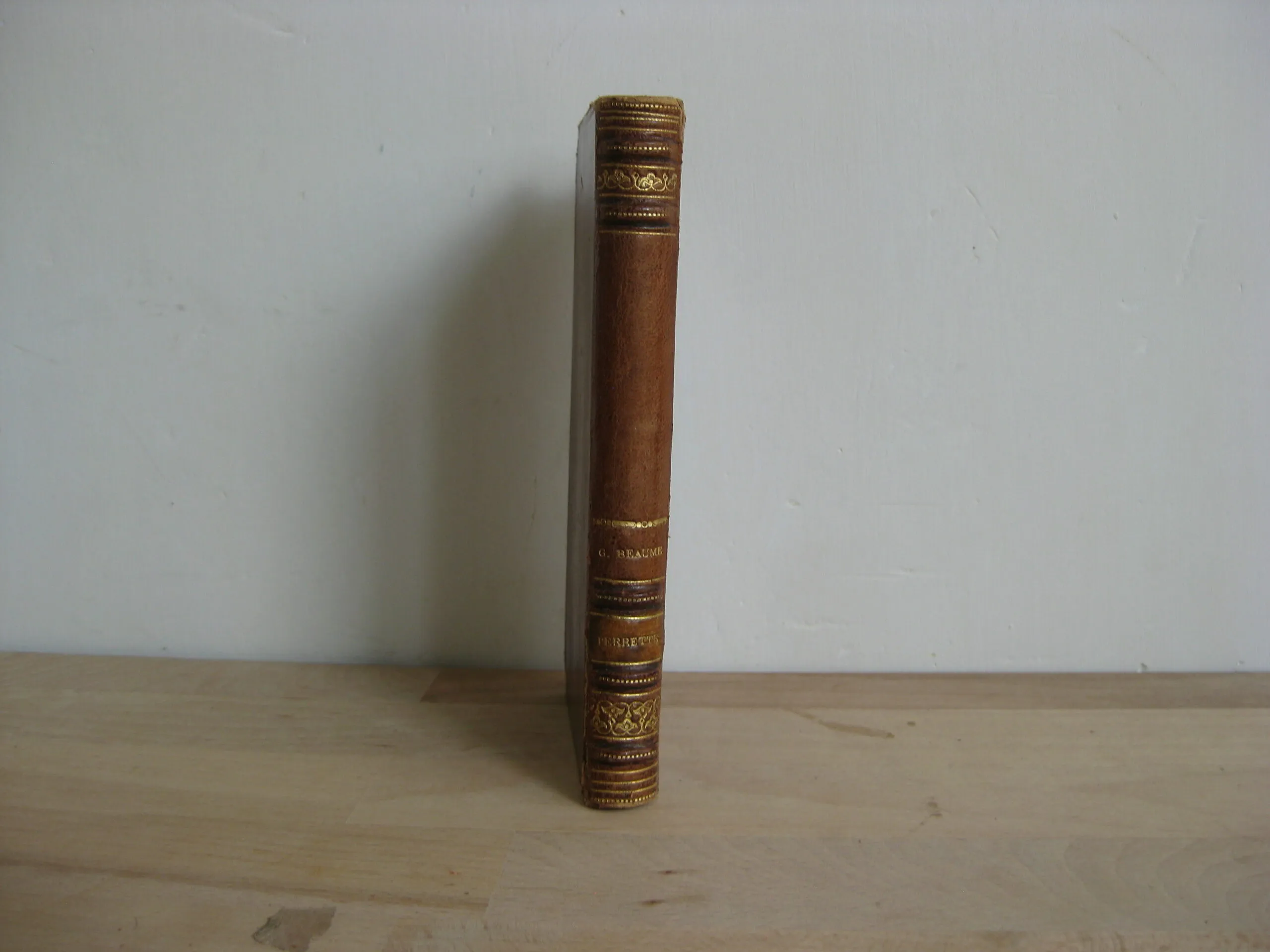 DescriptionLibrairie Borel – Pleine basane lie de vin à dos romantique orné de 5 faux-nerfs, de liserés, frises, pièce de titre havane, auteur estampé doré, couverture conservée, 140 x 77, 134p. 1897. Collection Edouard Guillaume « Lotus Alba ». Illustrations de Calbet. Page de titre illustrée. Avant la lettre : suite de 4 sanguines. Frontispice et 4 illustrations à pleine page, d’autres en entête. Intérieur très bon, propre et intègre. Des frottements à la reliure (champs, coins). Quelques griffes aux plats. Dos insolé avec épidermures en coiffe et en queue. Mors inférieur très frotté. Bon exemplaire bien ferme.