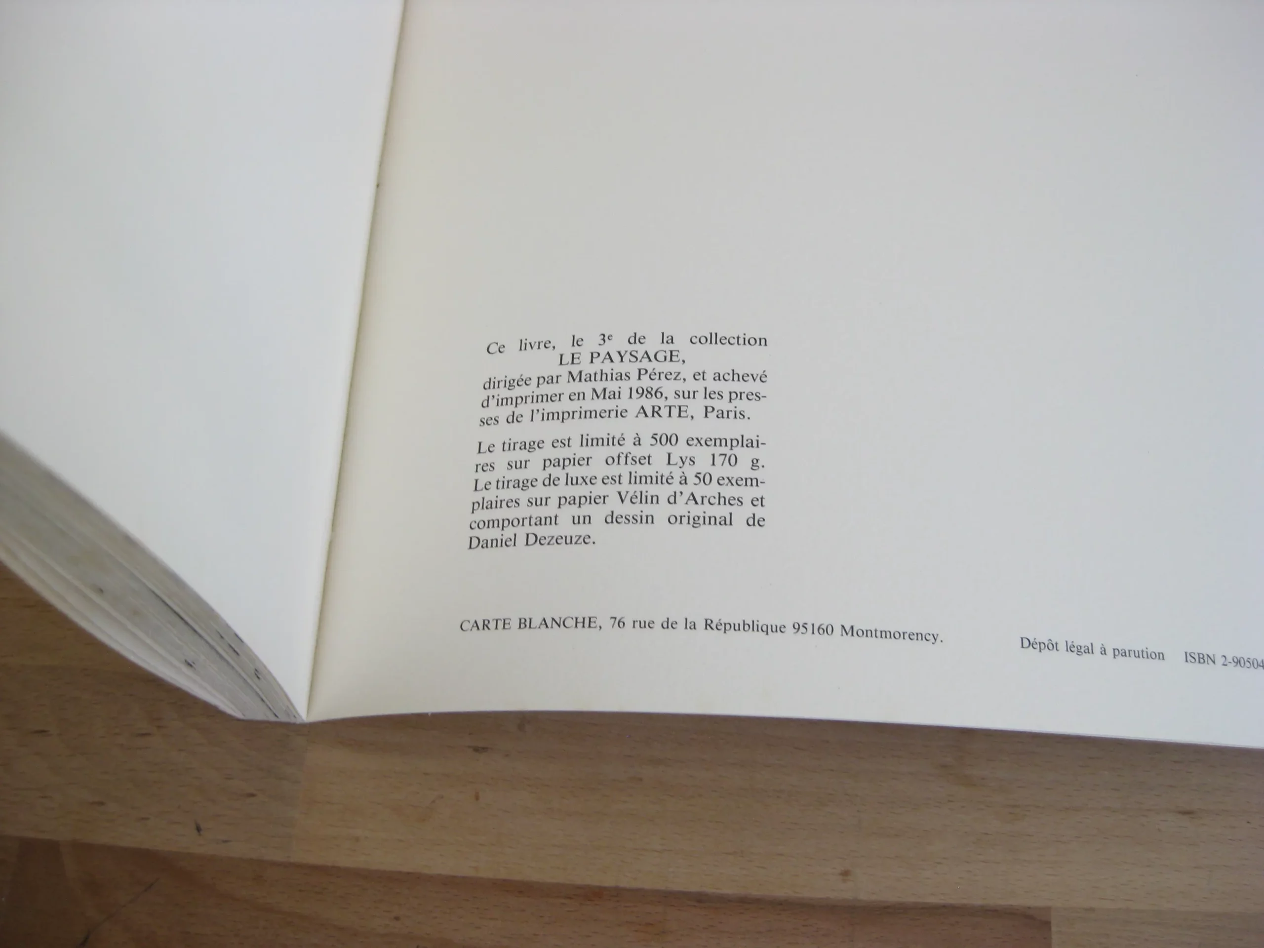 Broché à rabats,format italien 240 x 339, non paginé, 1986 Editions Cartes Blanche. Edition originale un des 500 exemplaires. Intérieur très bon, propre et intègre. Des rousseurs en couvertures, mai propre et intègre par ailleurs. Bon exemplaire bien ferme.