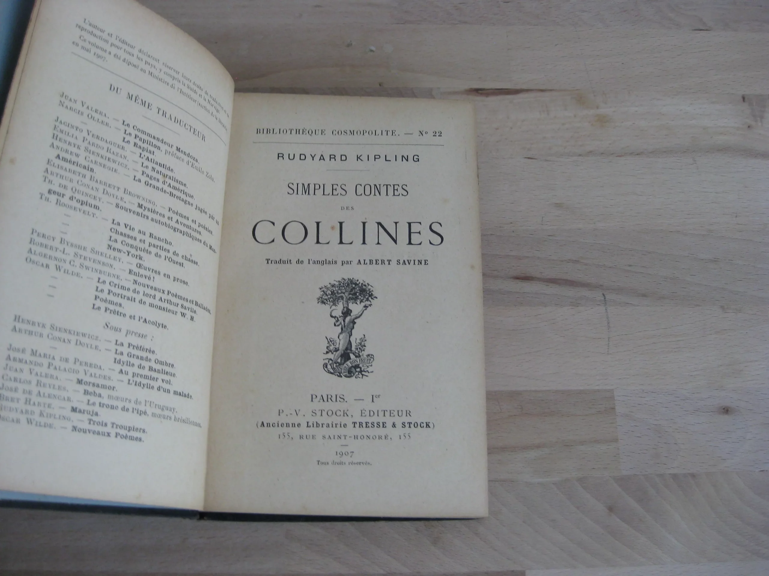 DescriptionP.-V. Stock – Plein simili percaline noire à dos long orné des titres et auteurs, 182 x 121, 294p. Avec table. 1907. Traduction d’Albert Savine. Bibliothèque cosmopolite n°22. Première édition en français. Intérieur propre, quelques rousseurs. Des frottements à la reliure, un manque en mors supérieur. Bon exemplaire bien ferme. Egalement en stock de Kipling en première édition française due à Albert Savine, La cité de l’épouvantable nuit.