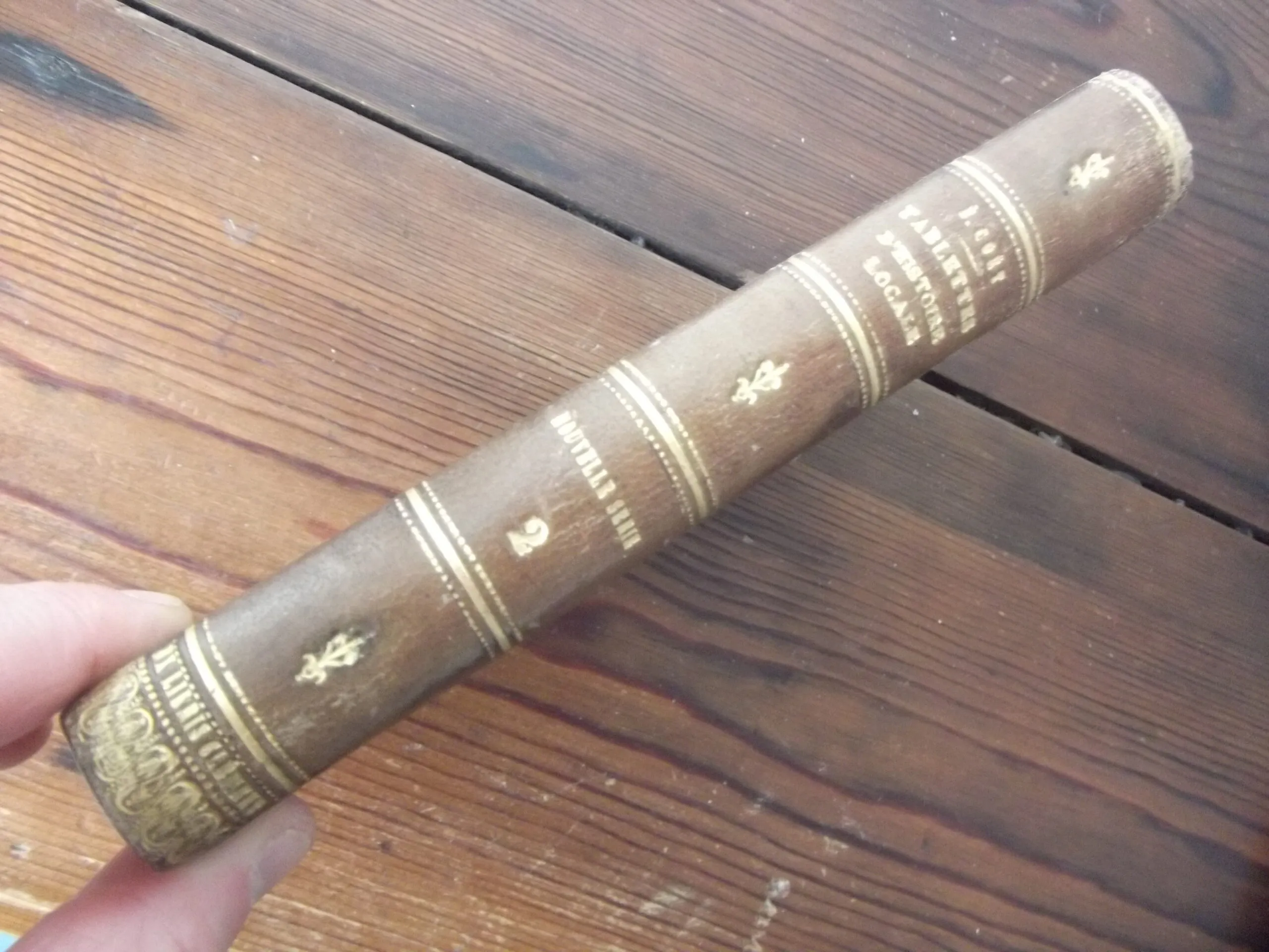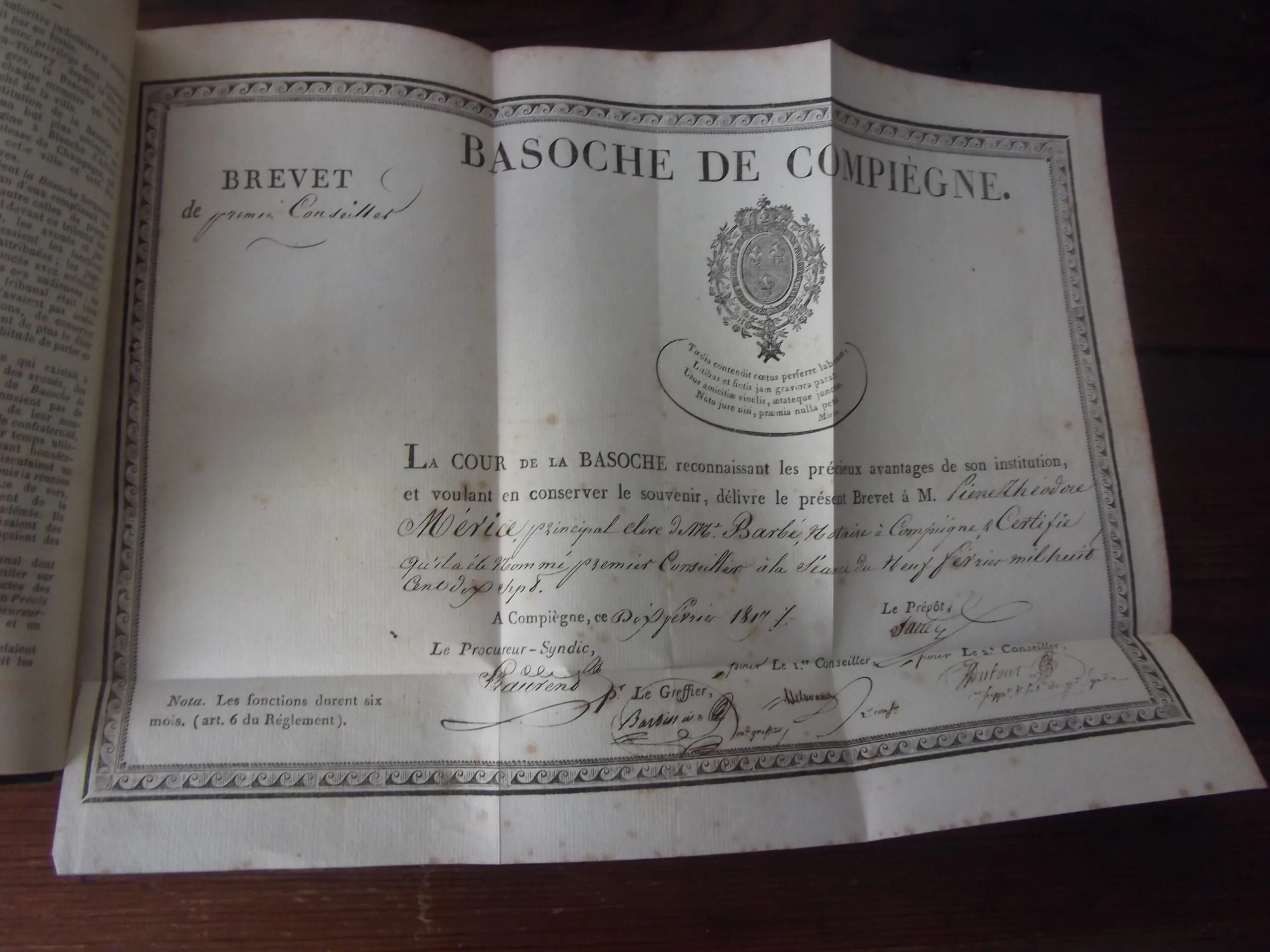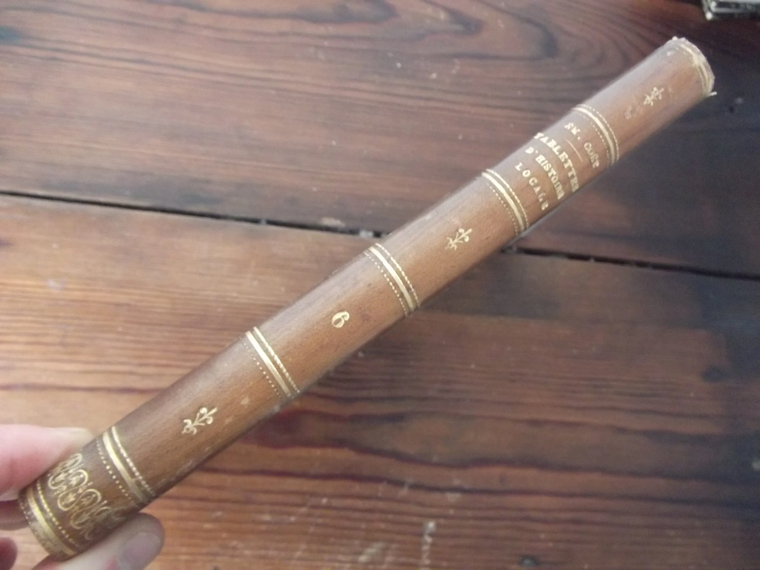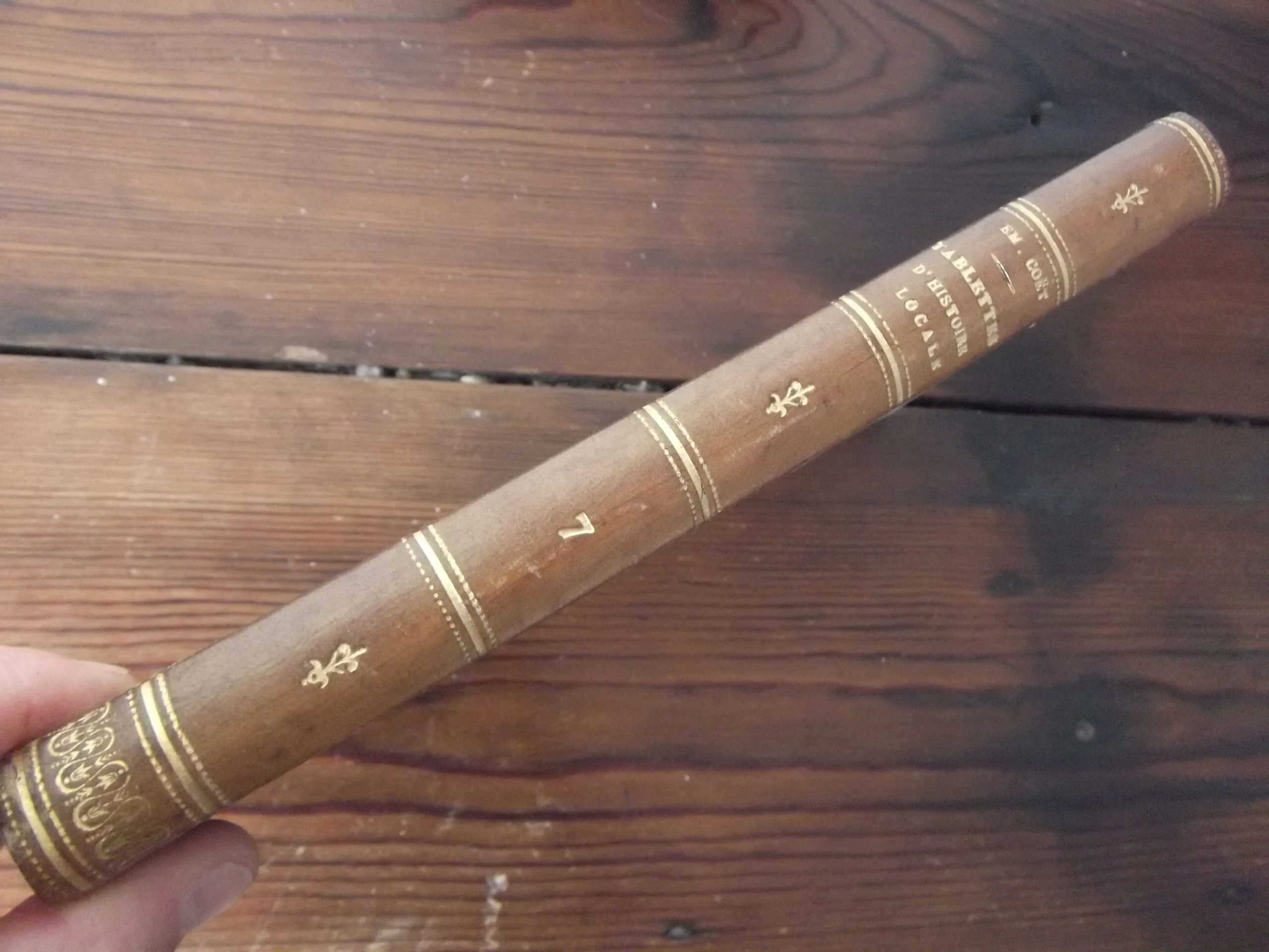 Sixth part – Half Havana calf, long spine decorated with borders, fleur-de-lys motifs, frieze at the foot and title, author and volume number, 218 x 145, 335p. With table. 1892. Includes 77 articles. Complete with his Patent of First Councillor Basoche of Compiègne (foxing but intact). Summary on request. Interior clean and intact. Binding sunned and rubbed, but in good condition. Scuffs on head and tail. Fields of lower cover with small loss. Very firm.