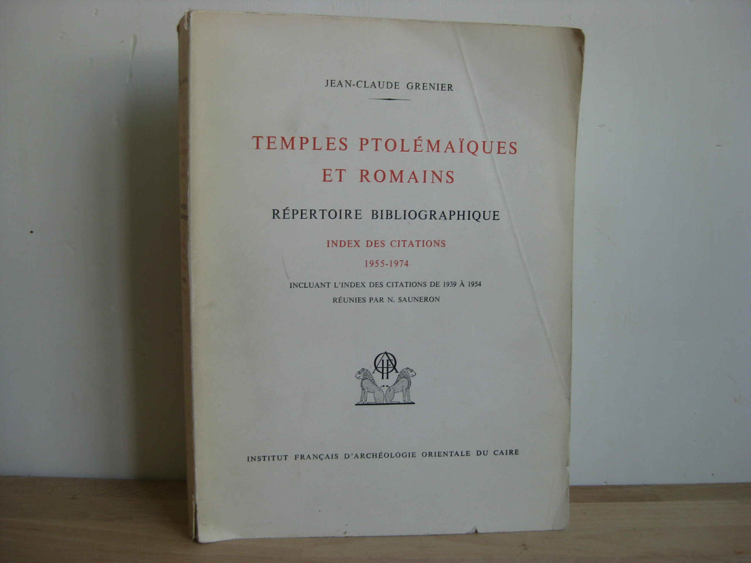 Temple ptolémaïques et romains. Répertoire bibliographique Index des citations 1955-1974, incluant l’index des citations de 1939 à 1954 réunies par N. Sauneron. Jean-Claude Grenier – Institut Français d’Archéologie Orientale. du Caire