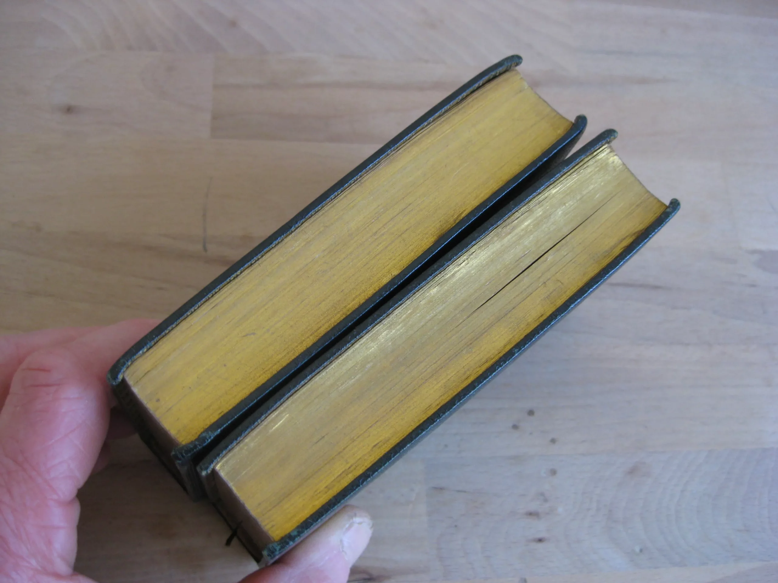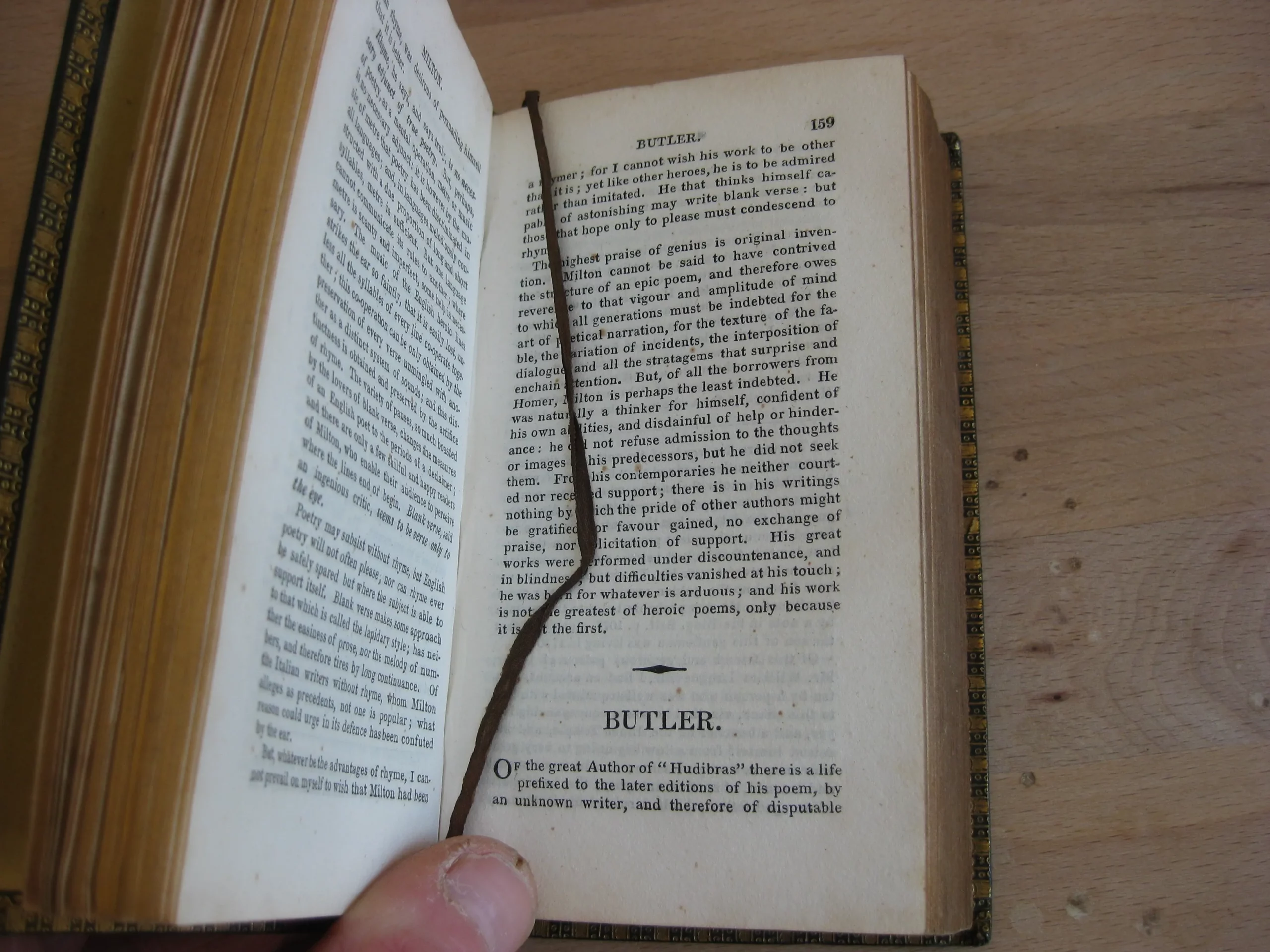Très jolie reliure plein chagrin noir à petit grains, dos long orné d’un beau motif symétrique, des titre, auteur, date, toutes tranches dorées, signet, guirlande dorée en bord de contreplat, 132 x 75, 528 et 543p. 1829. Frontispice à chaque volume : Milton dessiné par T. Uwins et gravé par W. au T1, Finden / Dean Swift et Miss [Esther] Van Homrigh, par les mêmes. Vignette au titre de chaque volume, par les mêmes. Jolie provenance : ex-libris en contreplat supérieur « Joël Dupont, » ancien conservateur du musée Barbey d’Aurevilly. à Saint-Sauveur-le-Vicomte. Intérieurs très frais, propres, intègres ; de même que les reliures en très bel état.