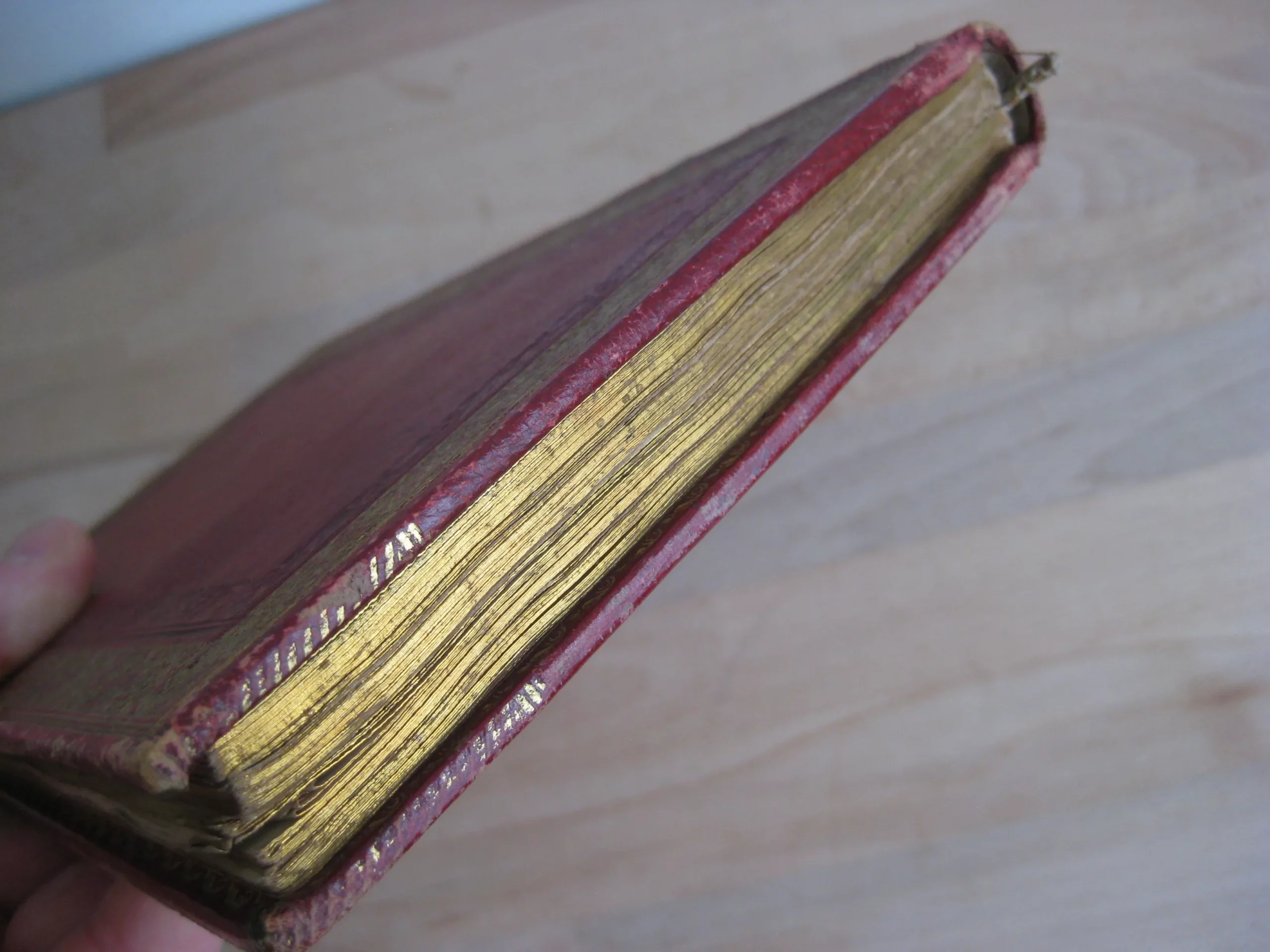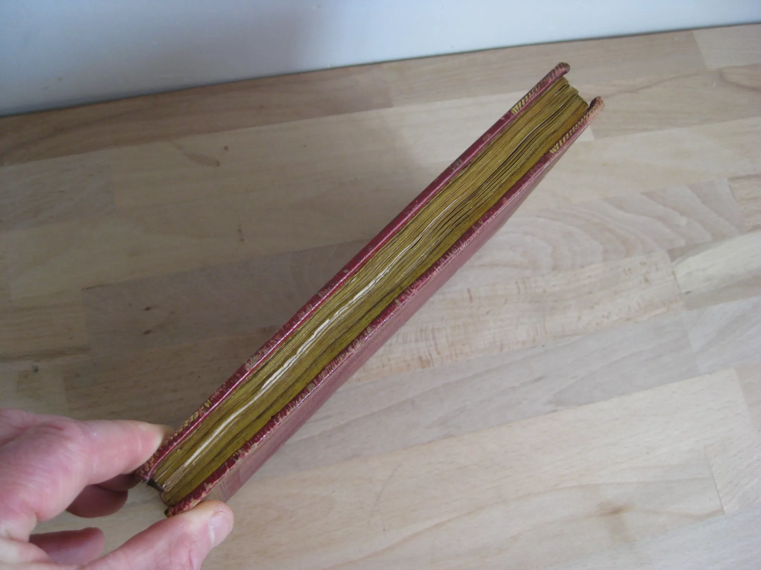 London – Jolie reliure plein maroquin rouge à dos et plats ornés richement ; dos à nerfs, nerfs ornés, caissons à liserés et fin motif très dense ; plats à à encadrement à triple liseré et large guirlande à motifs floraux très dense, avec un cadre inséré à triple liserés et guirlande à motifs floraux estampés ; champs des coins ornés ; toutes tranches dorées, 218 x 140, 1819. Avec 18 des 24 planches dont frontispice. Préface, vi-viii ; puis le texte 147p. ; in fine index et table des planches. Édition originale du récit de voyage illustré de Hassell explorant le tracé du canal de Grand Junction, construit de 1793 à 1805 entre le Northamptonshire et Londres. Les planches manquantes sont : Leightown Beaudesert town ; Three Locks, Stoke Hammond ; View of Linford ; Stony Stradford ; Entrance to Blisworth Tunnel ; Weedon-Bee Church, and Embankment across the Valley. Intérieur propre, mais bloc-livre fragilisé sur sa reliure. Frottements et épidermures en plats, champs, coins et dos avec épidermures plus marquées en coiffe et queue, et coins. Aquarelliste et graveur, Hassell (1767-1825) a produit un certain nombre de guides illustrés de la campagne anglaise.