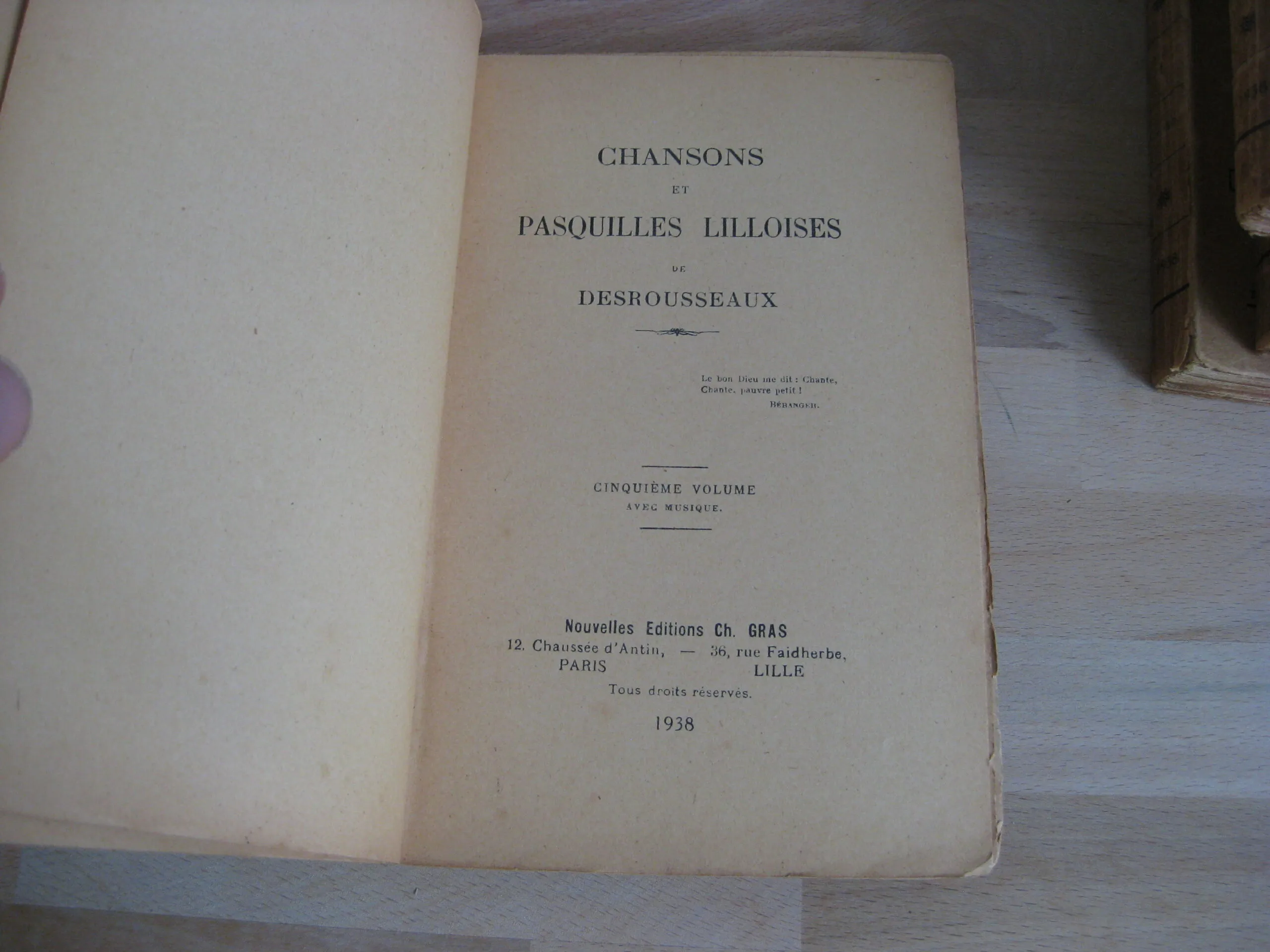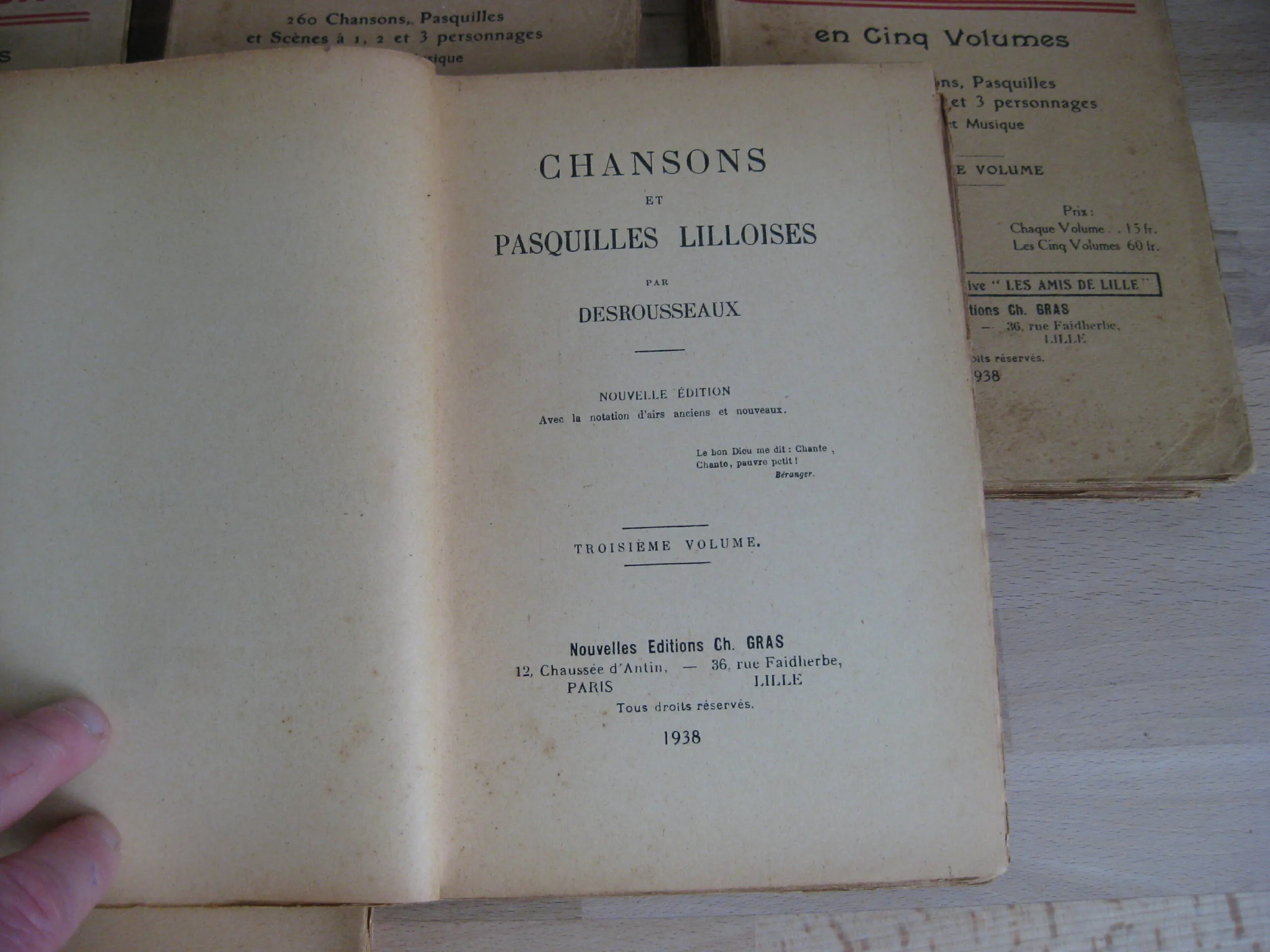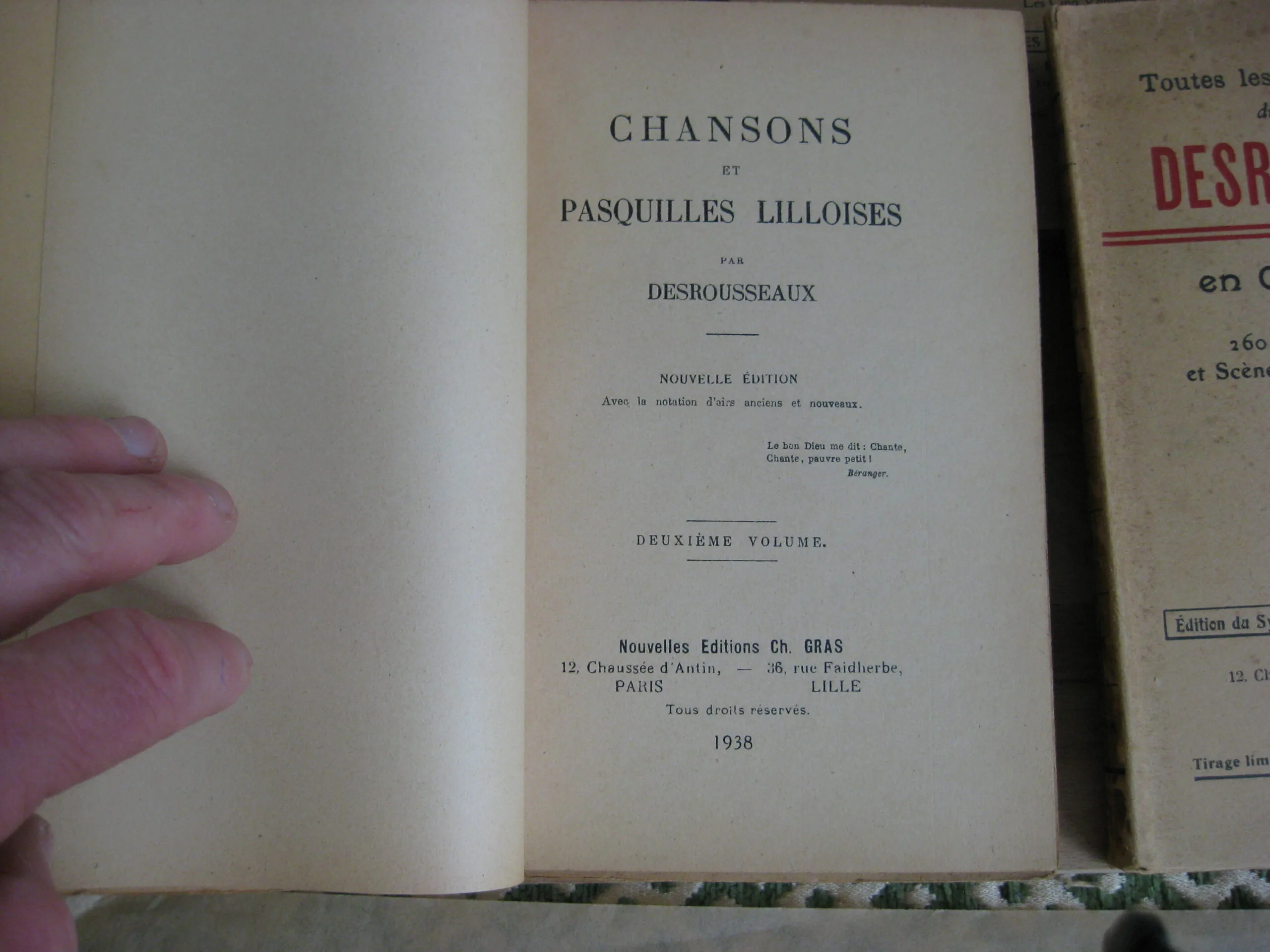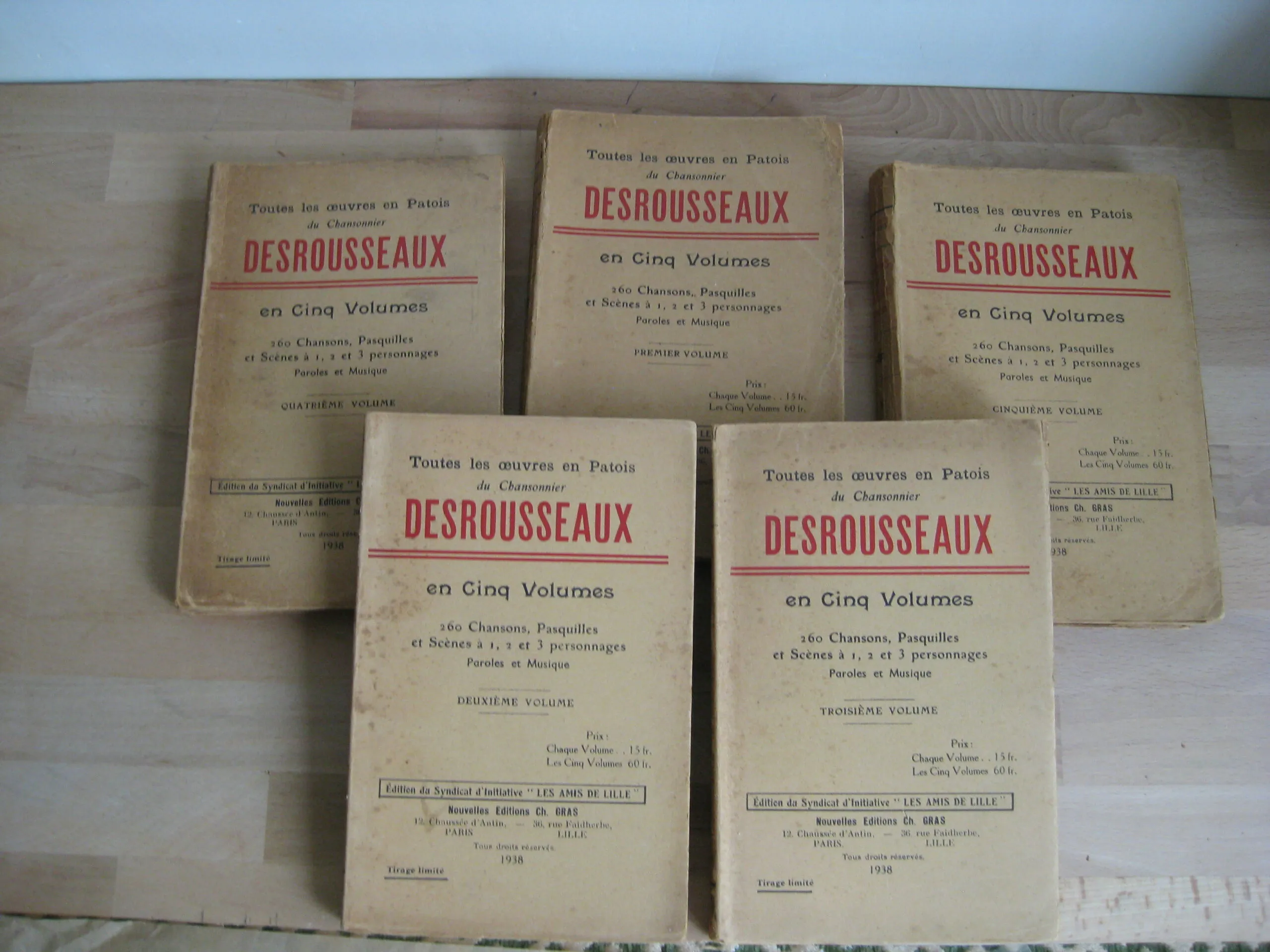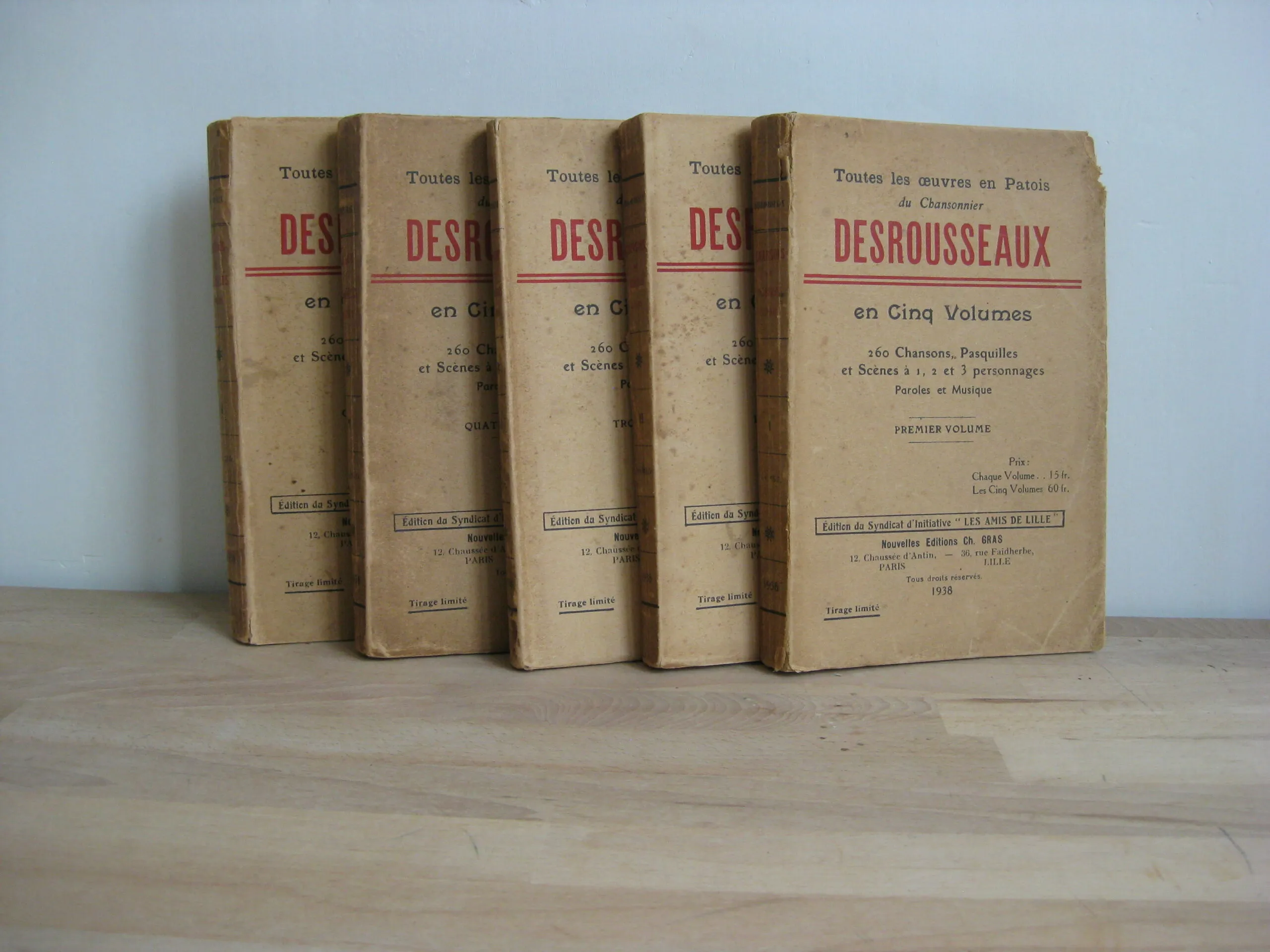 Toutes les œuvres en patois du chansonnier Desrousseaux en cinq volumes.