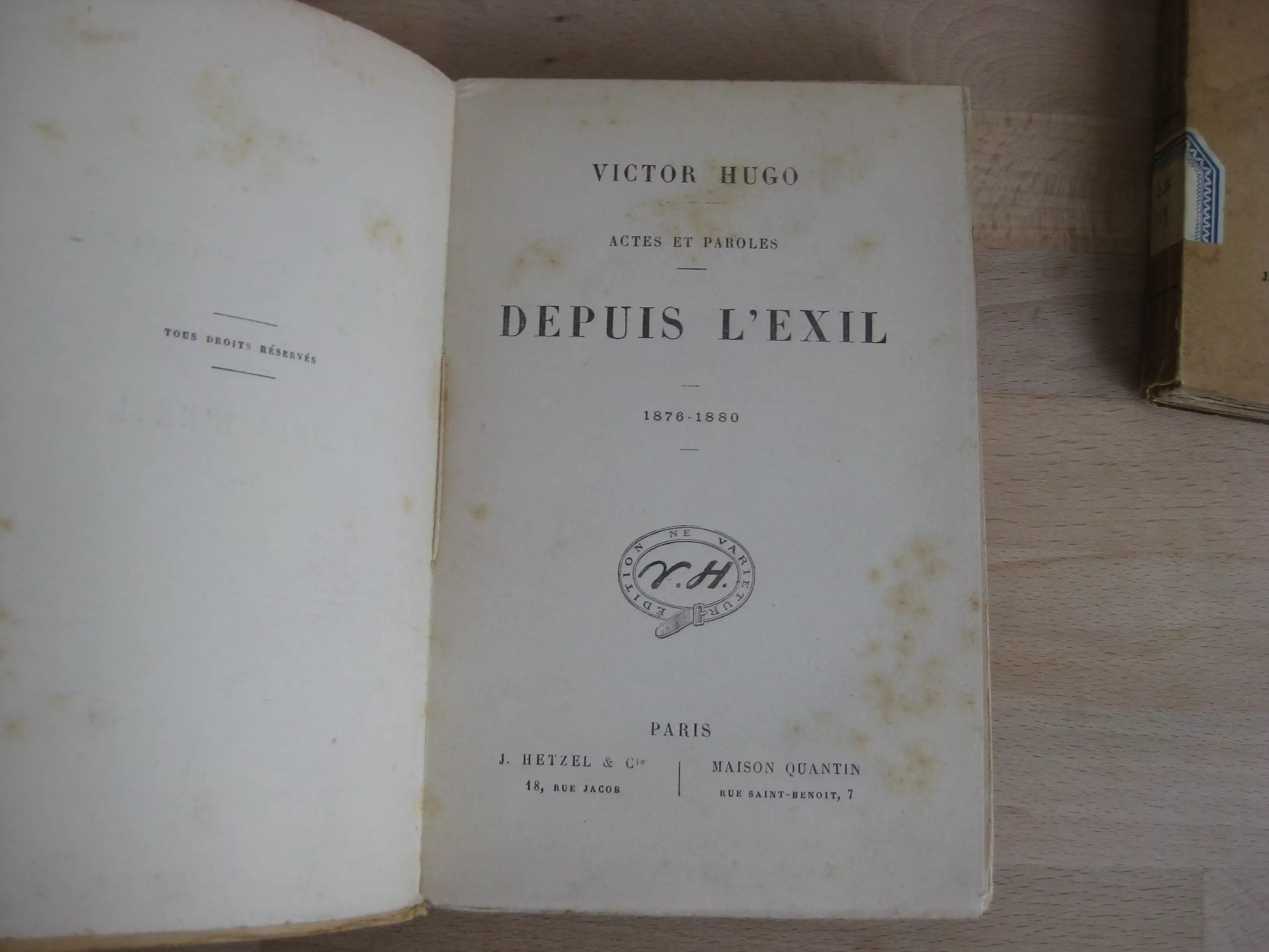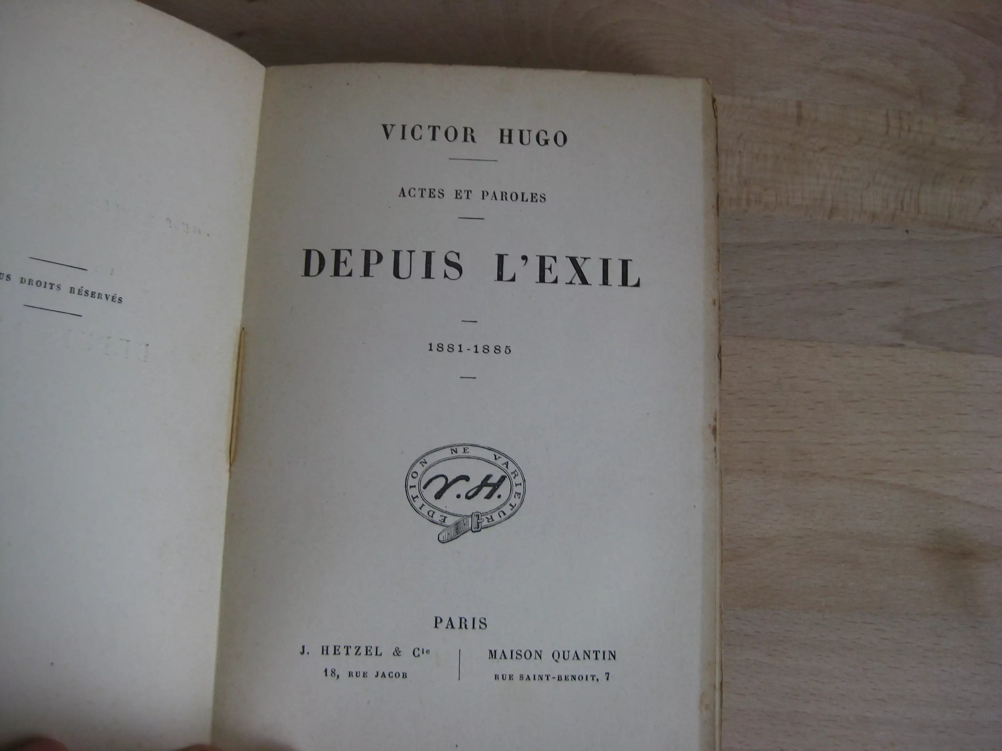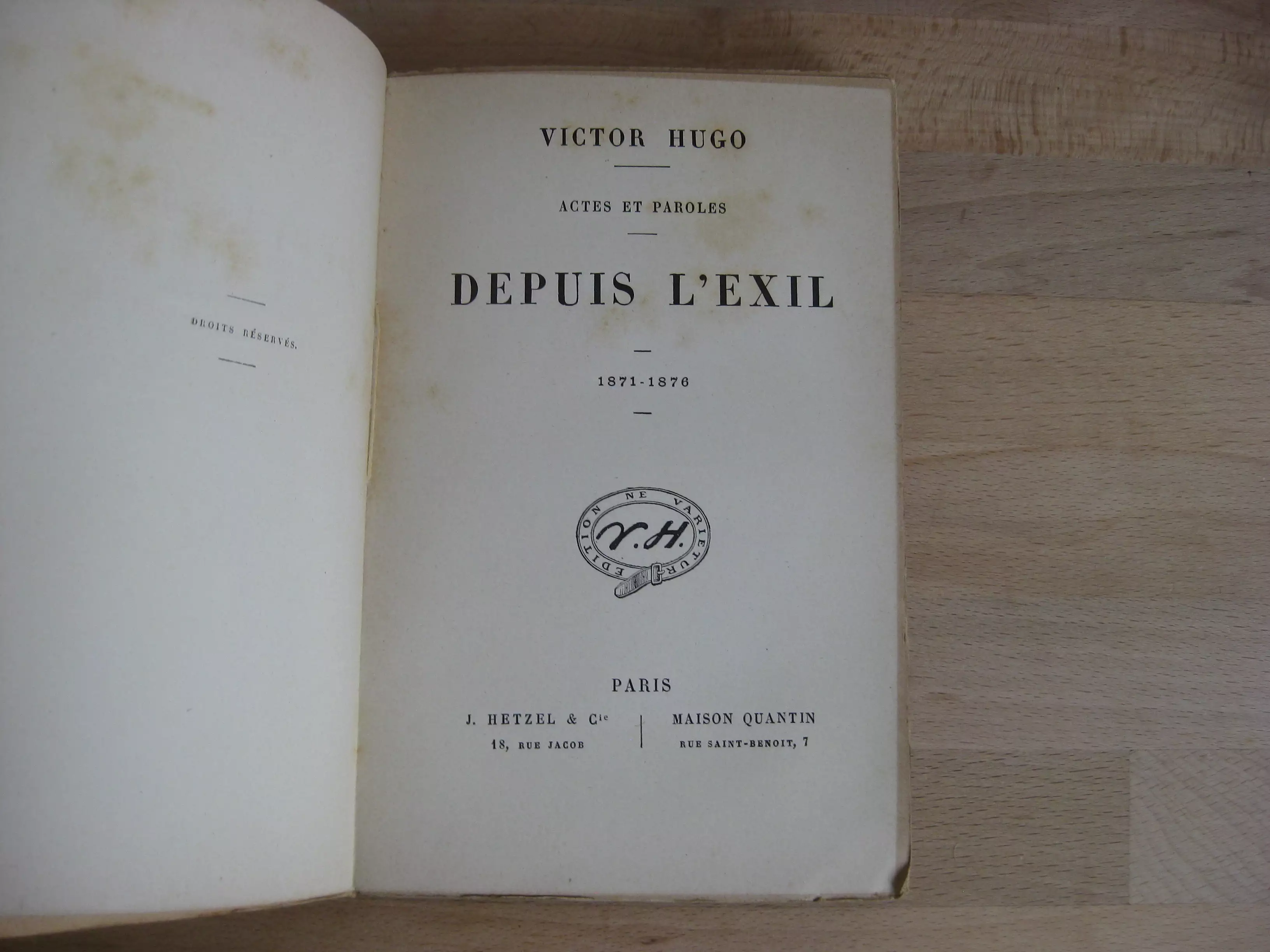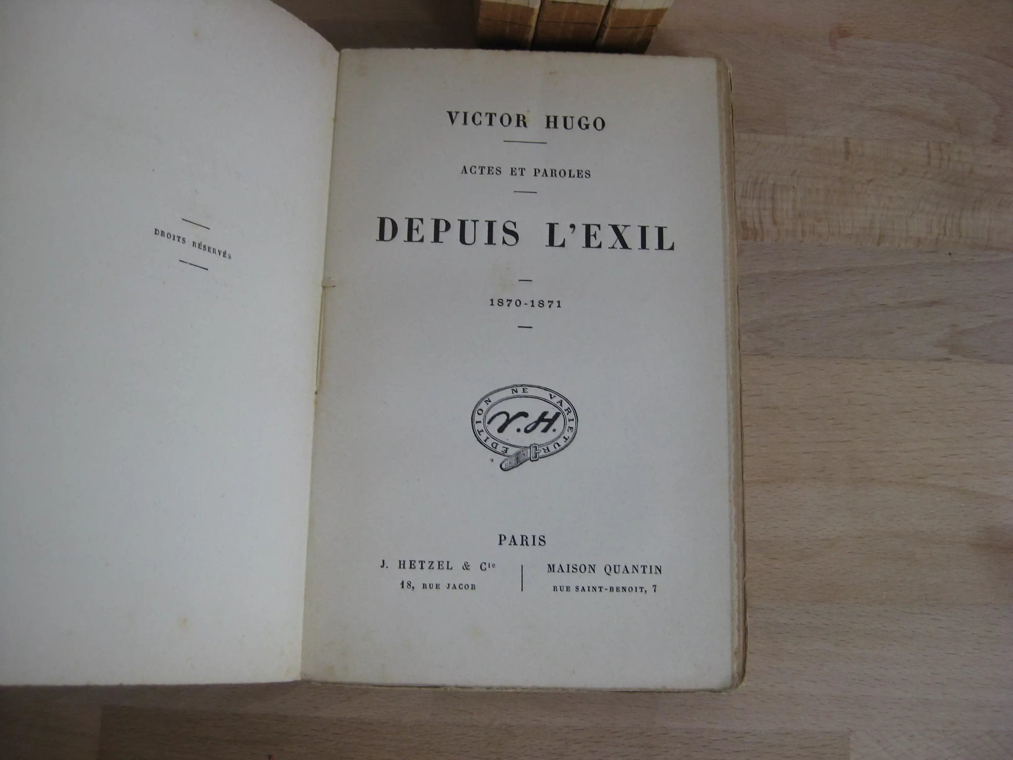 Victor Hugo, Actes et paroles. Depuis l’exil, 4 volumes