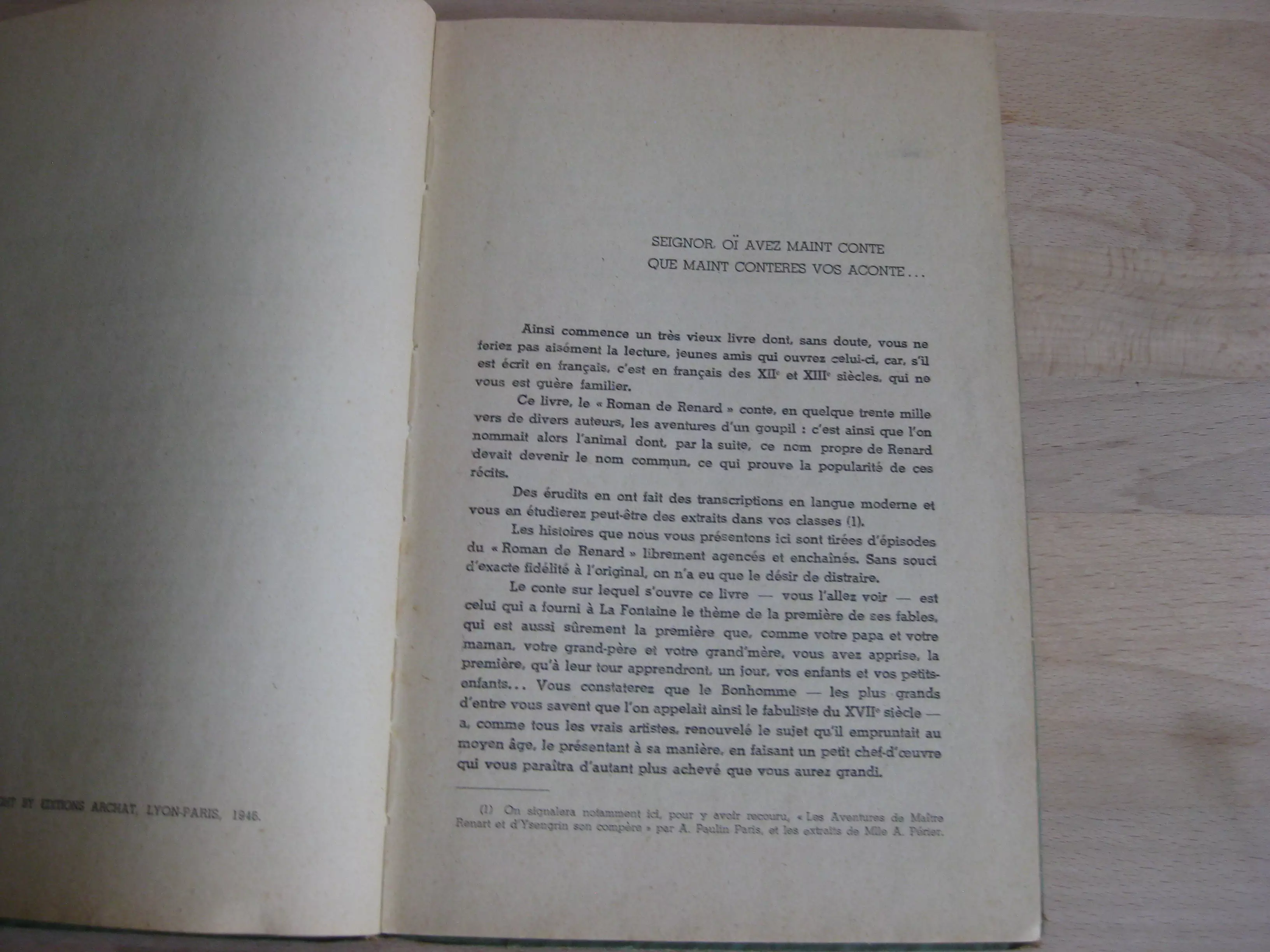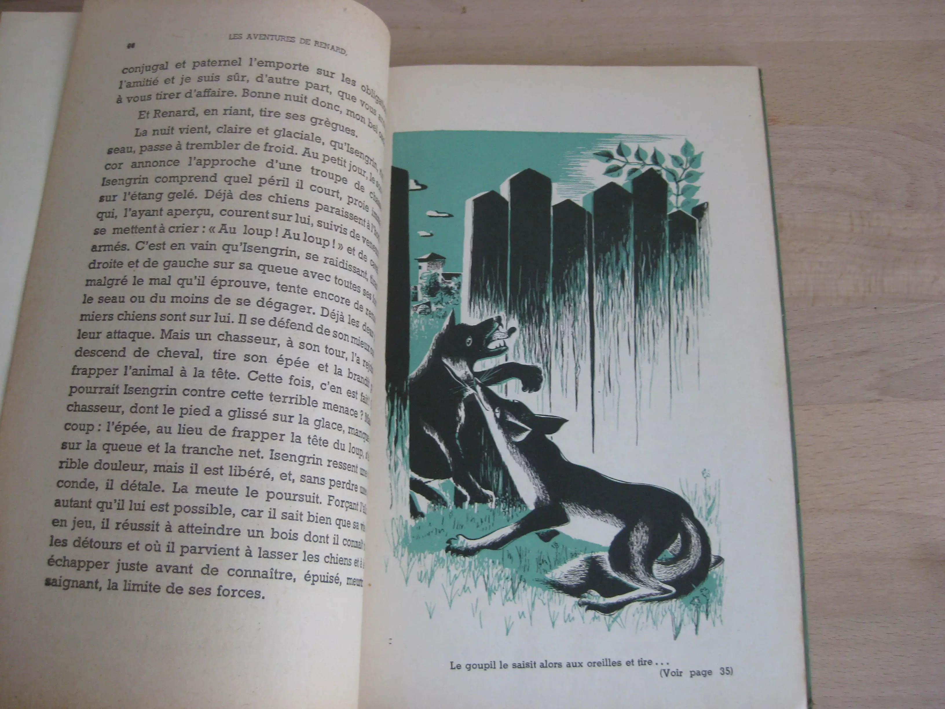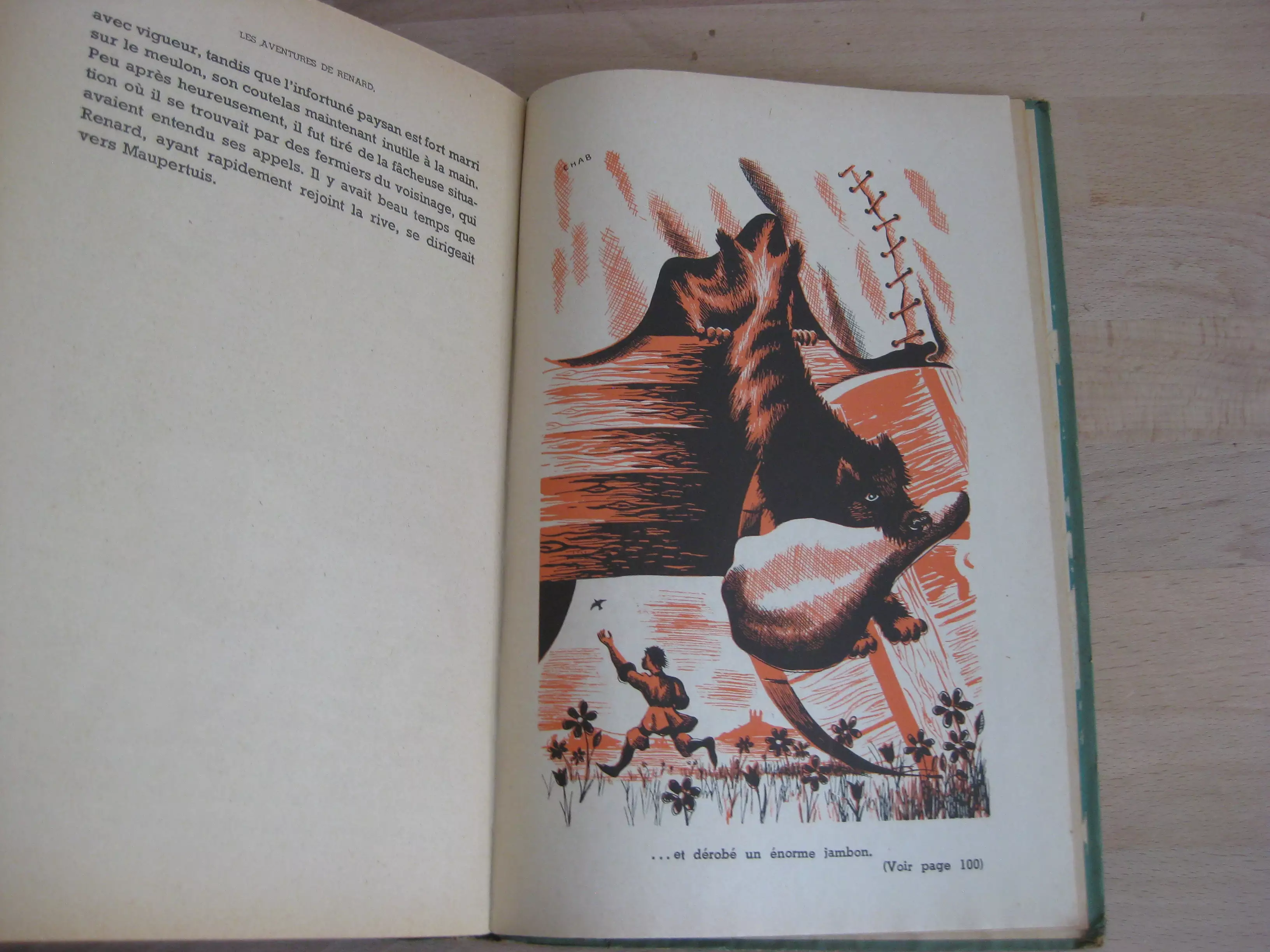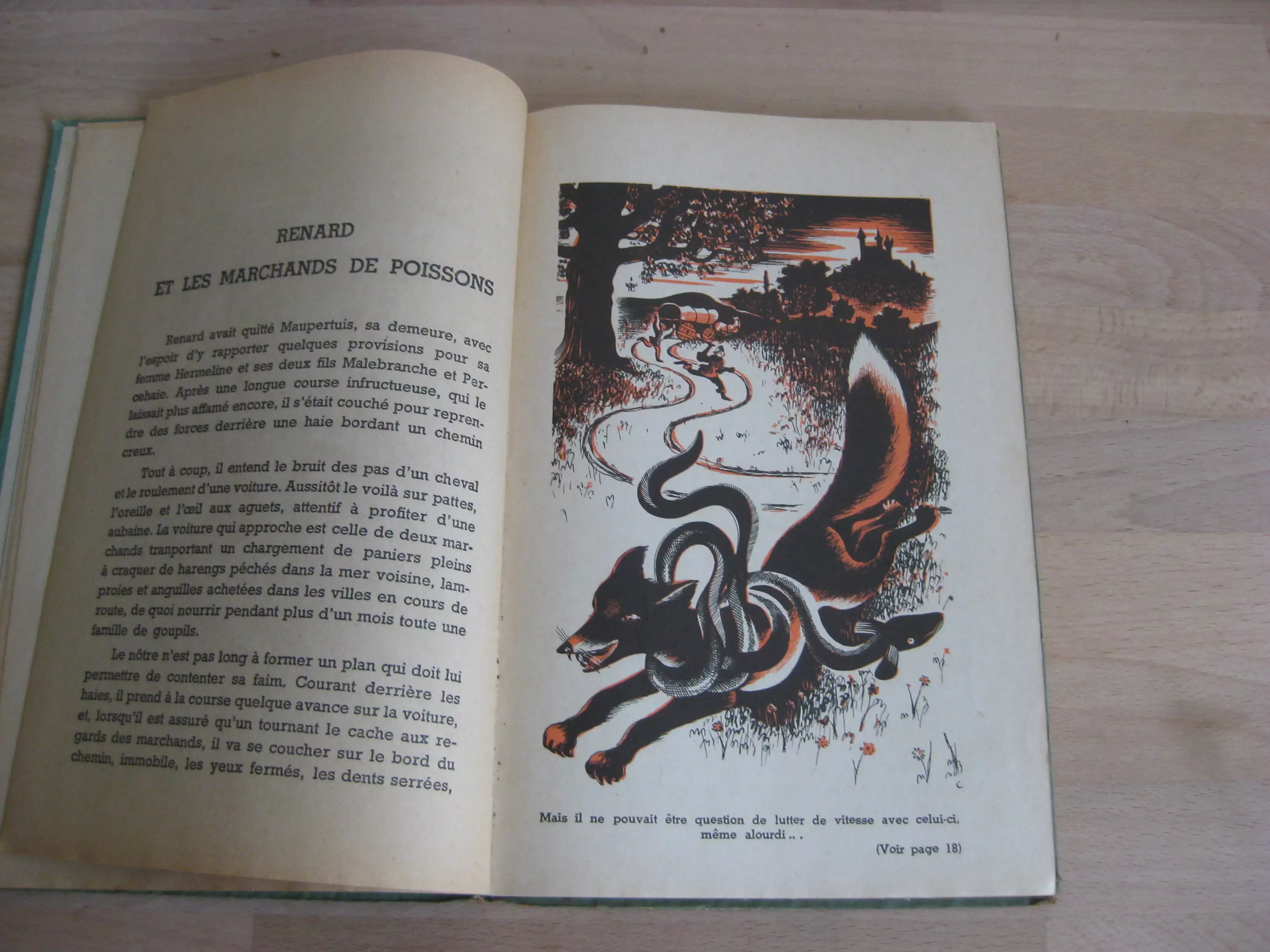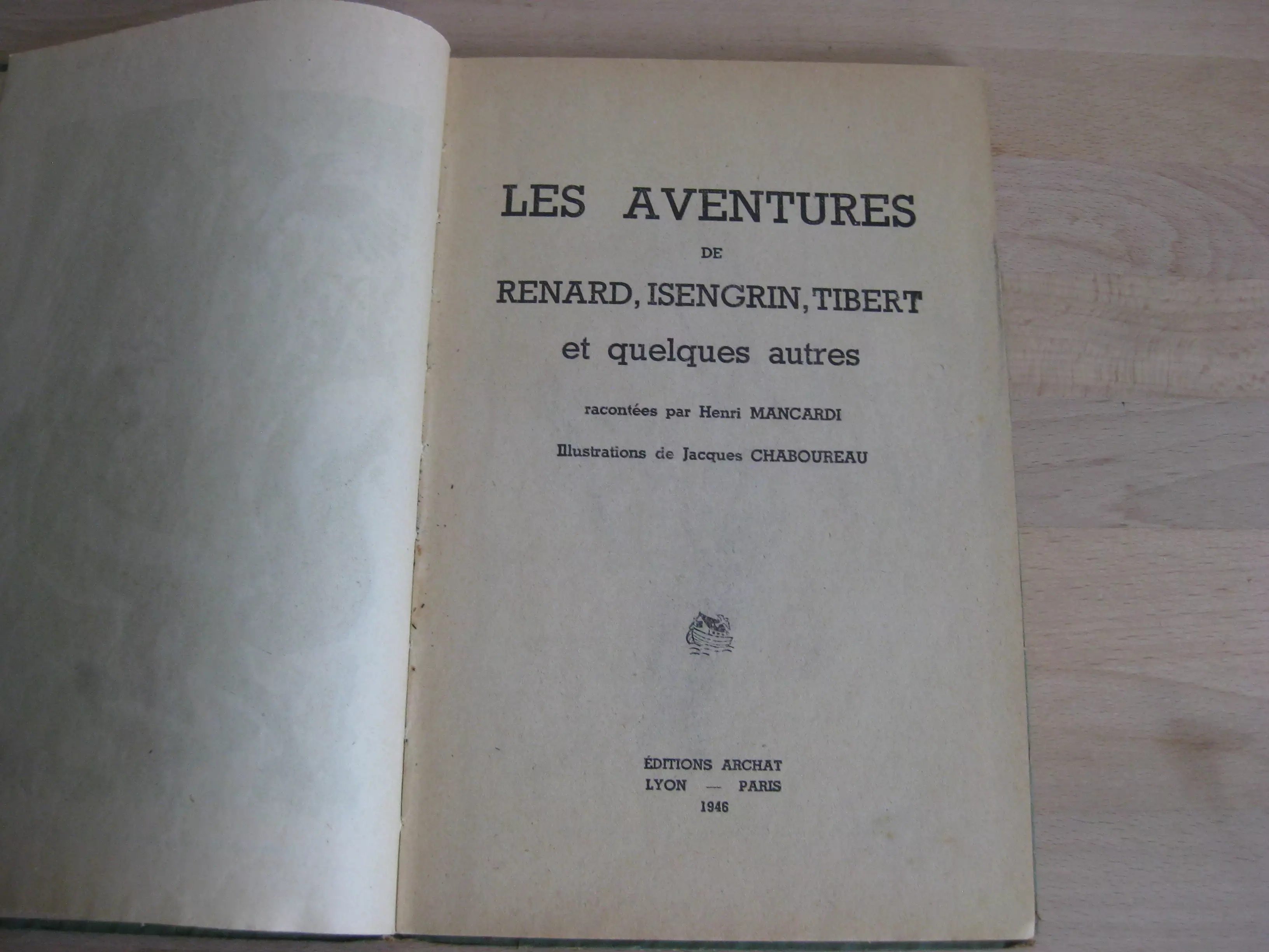 Édition Archat – Cartonnage éditeur vert, illustré couleur en plat supérieur, titré au dos, 242 x 148, 103p. Paris, Lyon, 1946. Edition originale et unique. Frontispice couleur vert et noir, et 15 illustrations à pleine page alternativement noir et vert, rouge et noir. Intérieur propre ; des frottements aux couvertures et dos mais bons.