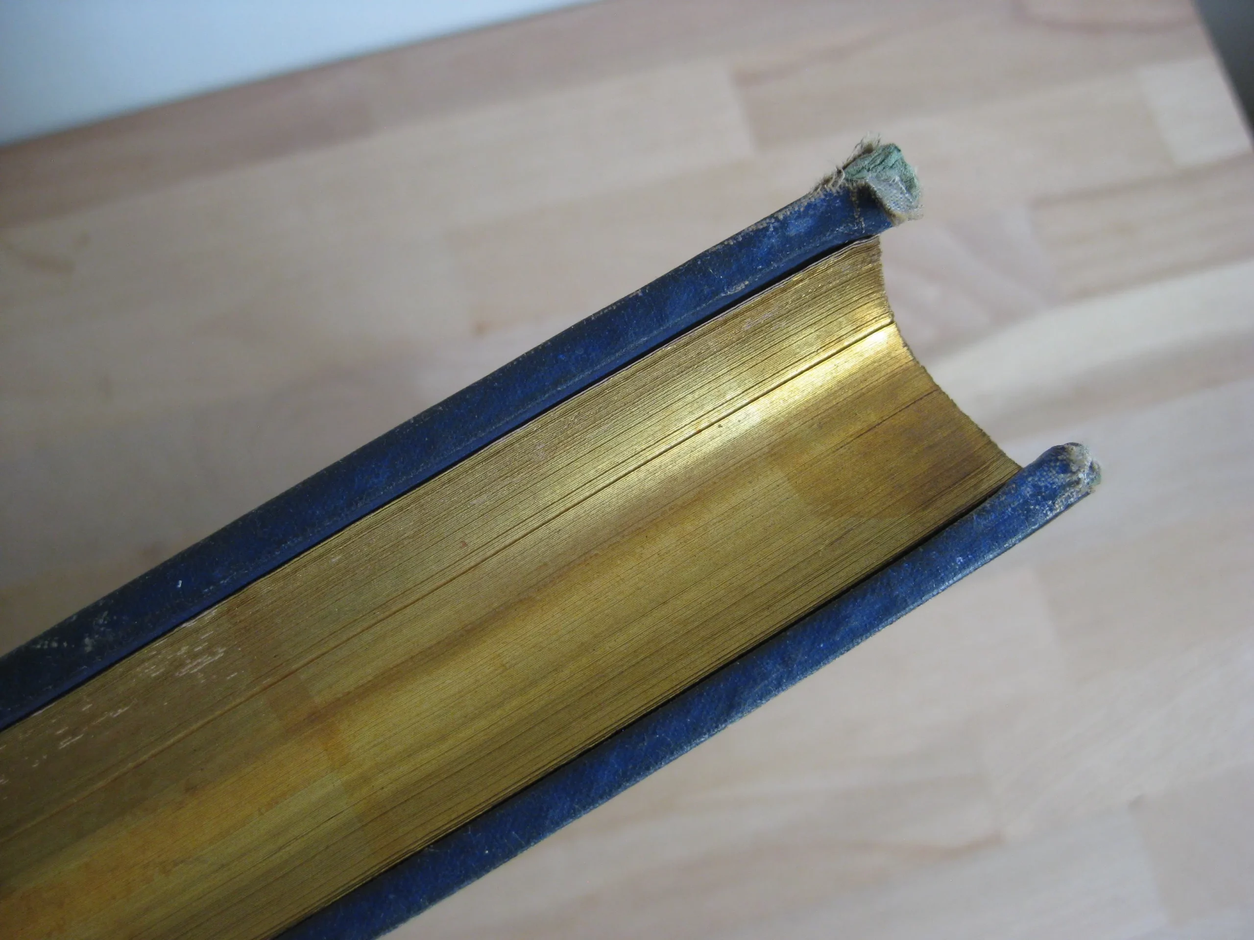 Intérieur avec rousseurs variable, plutôt marginales. Coins et champs frottés, deux coins légèrement émoussés. Plats très bons, quelques griffes, plat supérieur un peu insolé et grisé.Dos un peu plu insolés et frotté, avec épidermures nombreuses en coiffe, queue et mors. Bel exemplaire bien ferme.