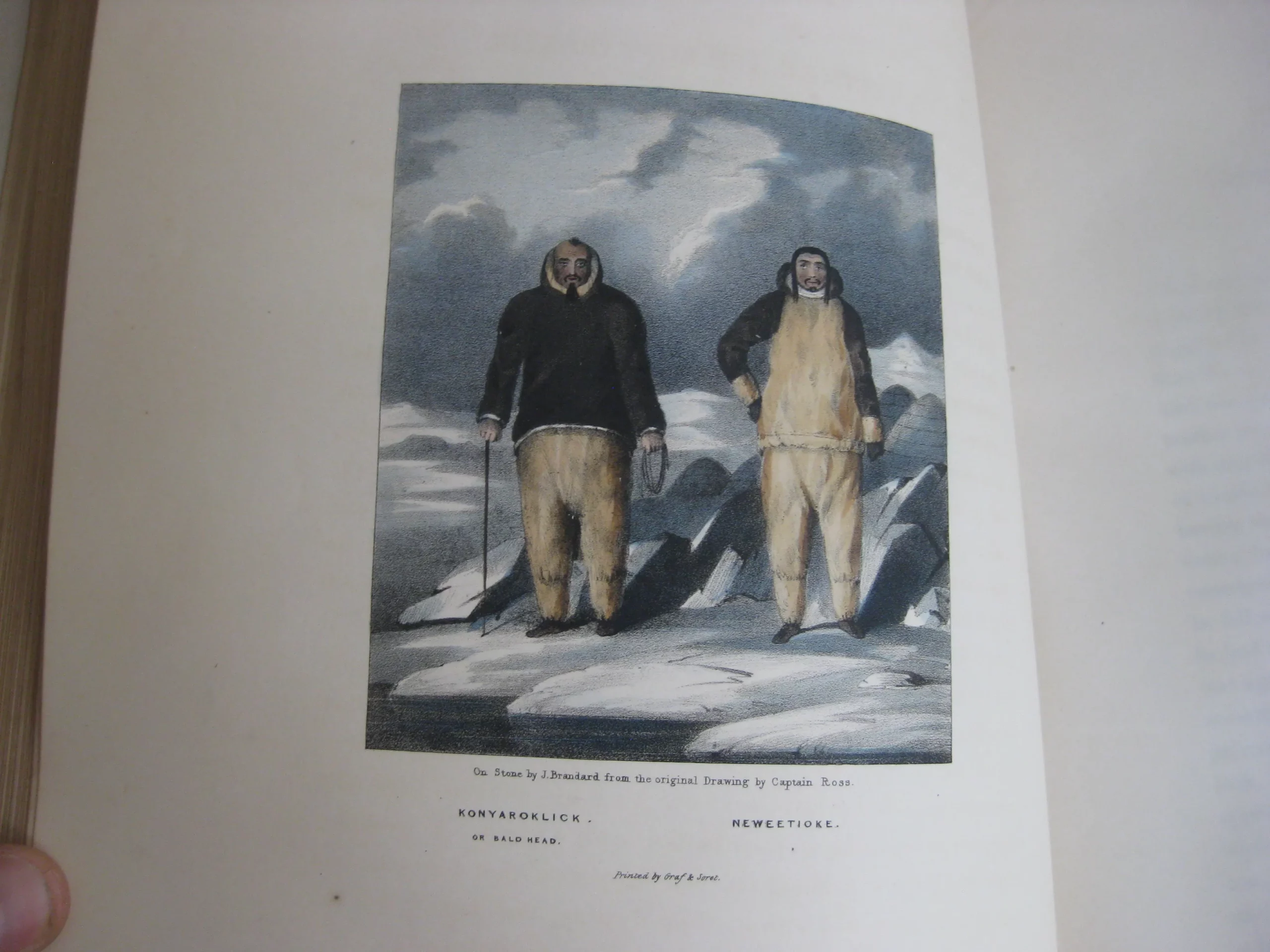 Frontispice (portrait gravé de John Ross par B.R. Fanlkner et gravé par Robert Hart] et 19 planches sous serpente dont 12 en couleurs (la plupart des dessins sont de J. Ross, gravés (litho) par John Brandard, imprimé par Graf & Soret) ; un des dessins noir signé Ross est sa New theory of Aurora.