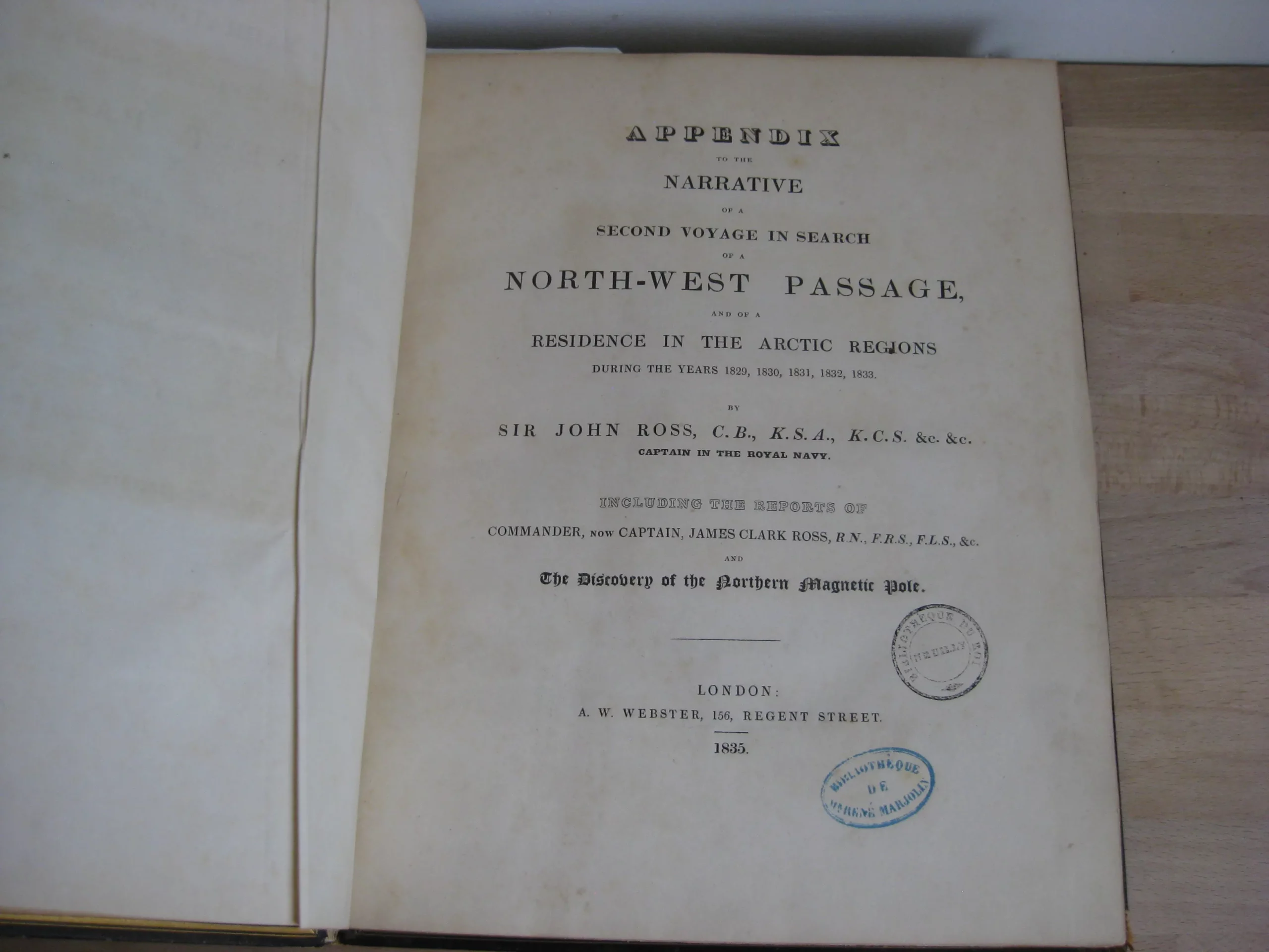 DescriptionAppendix to the Narrative of a Second Voyage in Search of a North-West Passage, and of a Residence in the Arctic Regions During the Years 1829, 1830, 1831, 1832, 1833