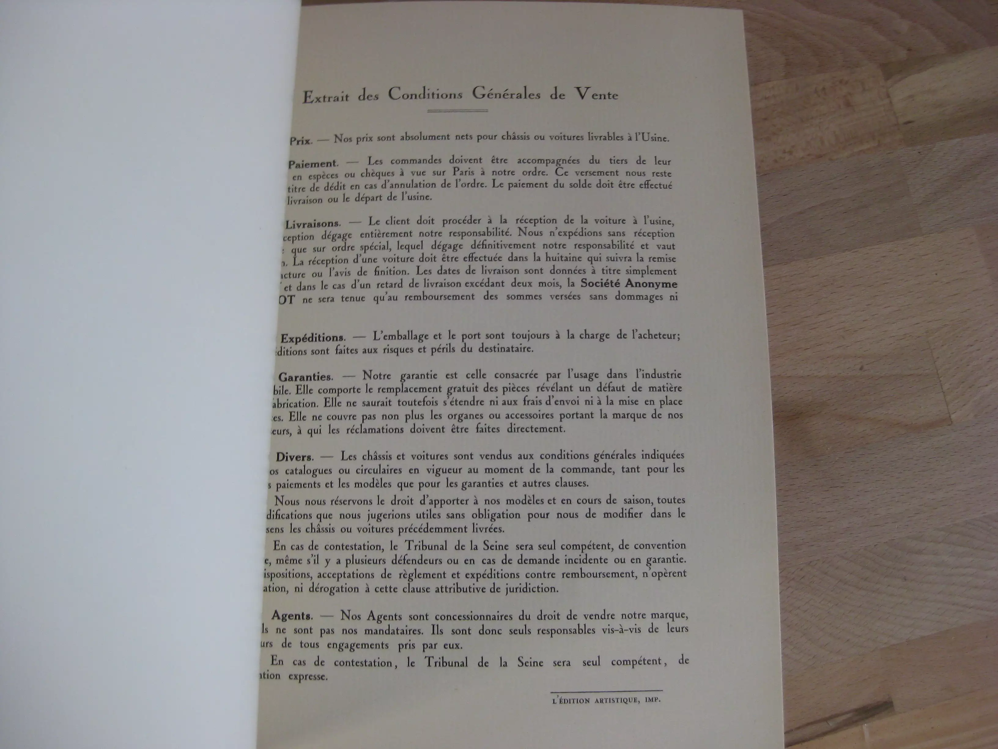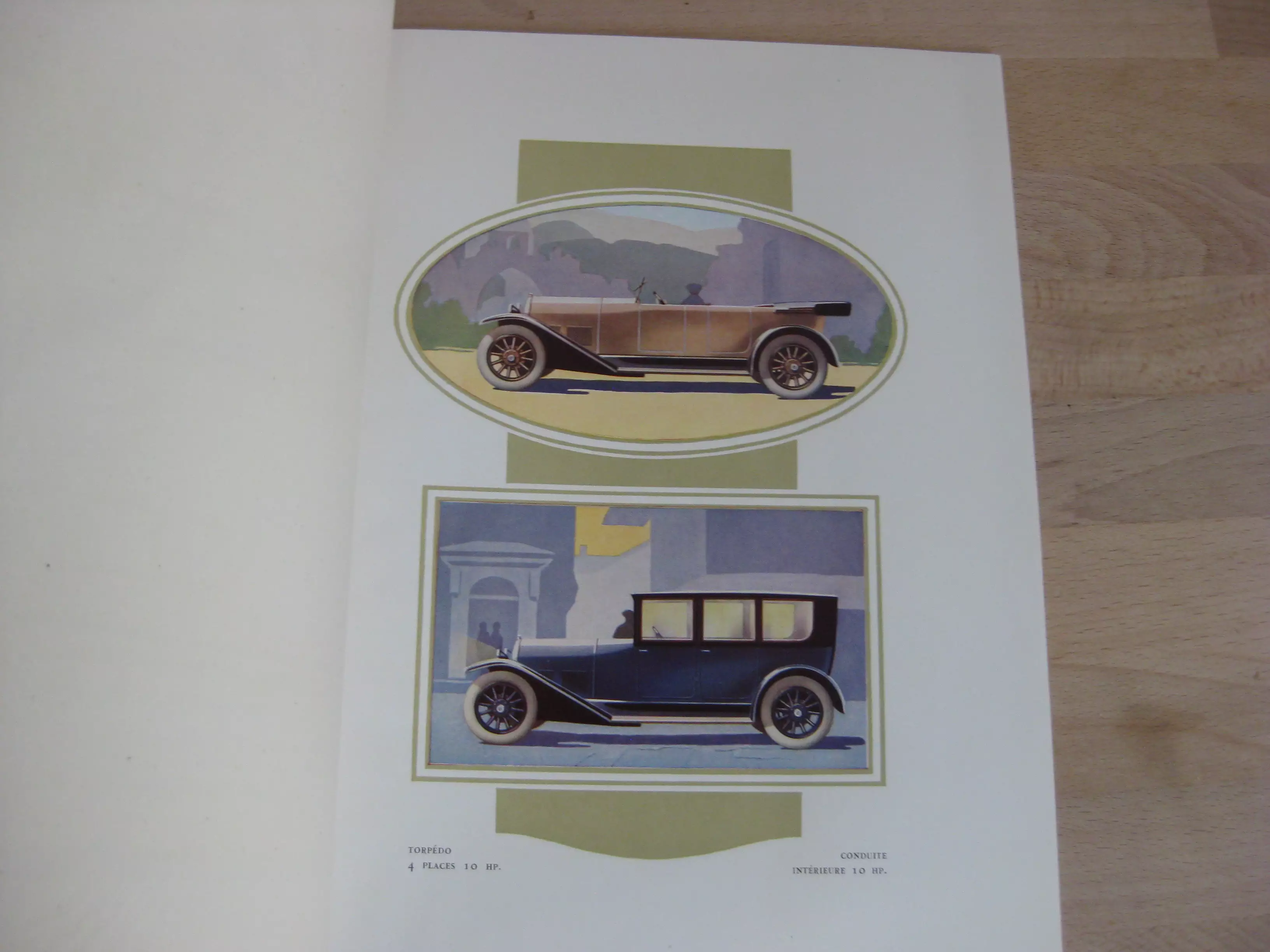 DescriptionBroché cordé, 272 x 220, non paginé (16p.) sans date. Avec 5 planches couleurs sous serpente avec au total 10 modèles de voitures dessiné dans un style art nouveau. Comprend également un feuillet calque plié avec les prix des voitures. Un ex-libris tamponné du Garage Terminus Michel Ponce à Charleville au titre. Intérieur très bon, propre et intègre. Couvertures insolées avec rousseurs légères. Exemplaire bien ferme.