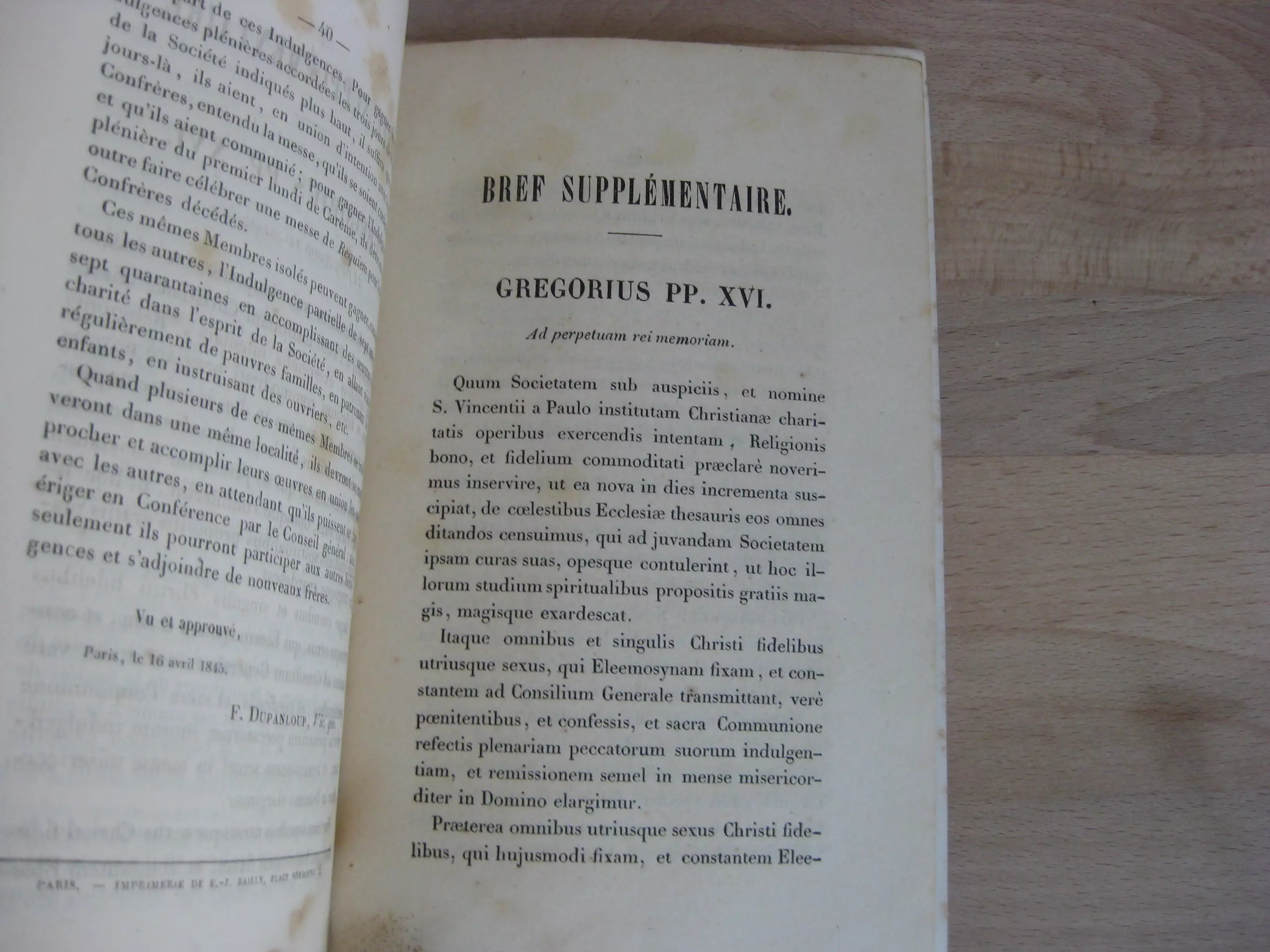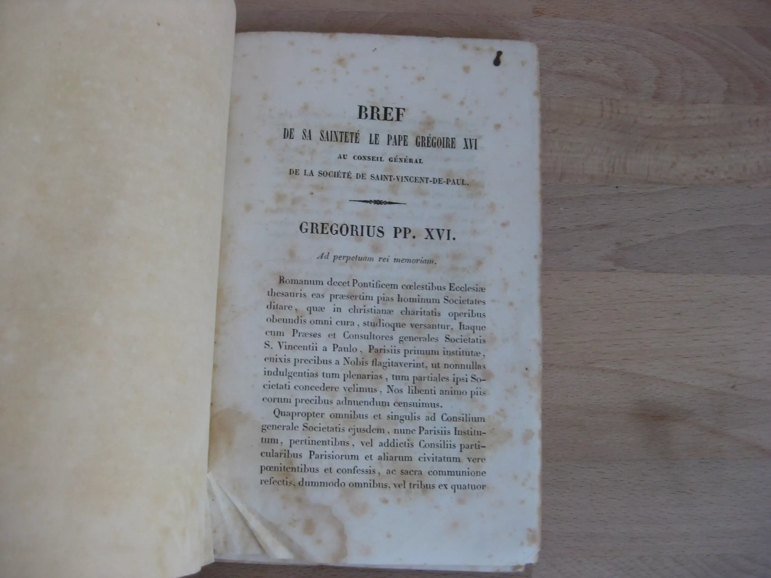 Bref de sa Sainteté le pape Grégoire XVI au Conseil général de la Société Saint-Vincent de Paul