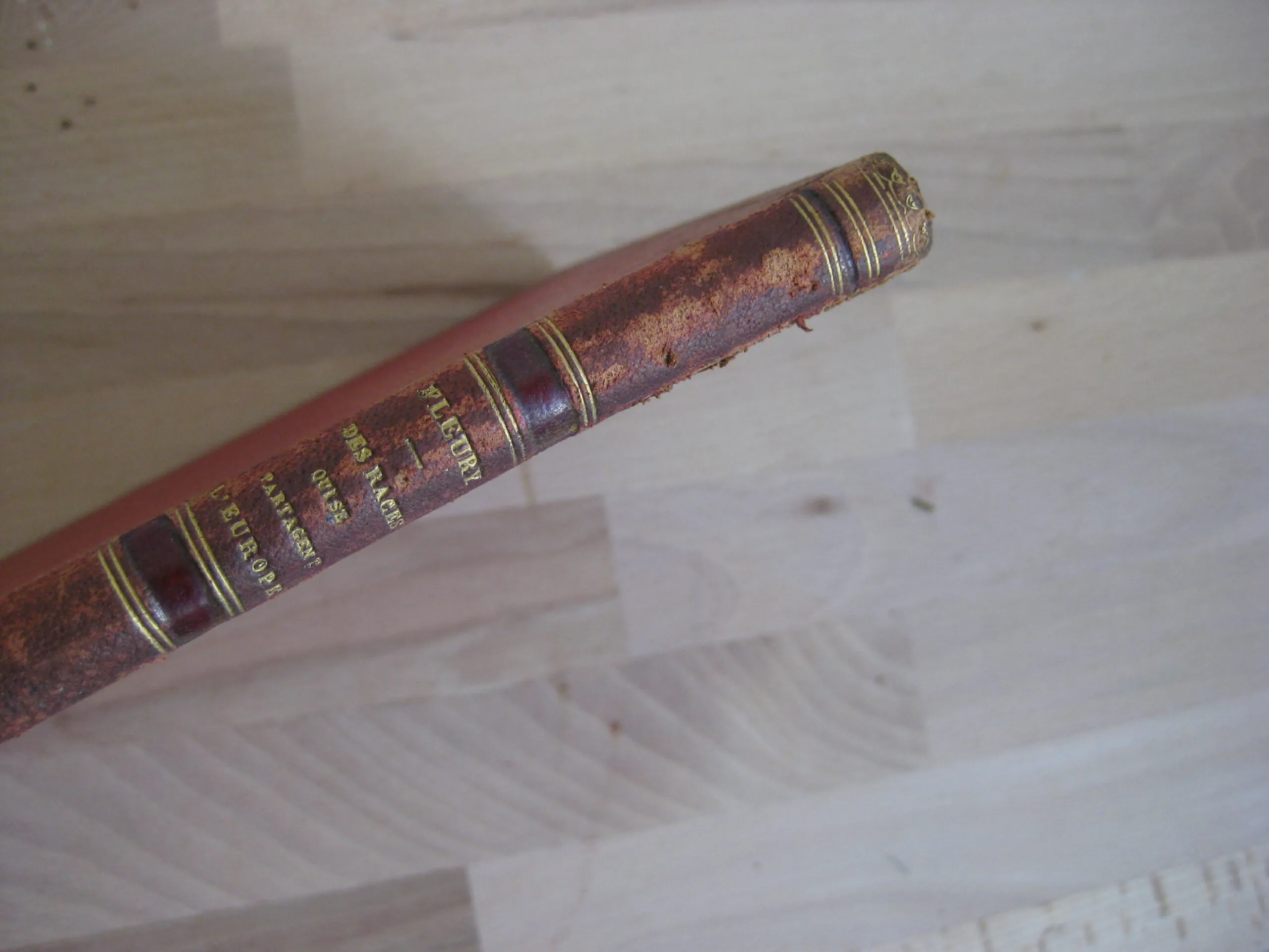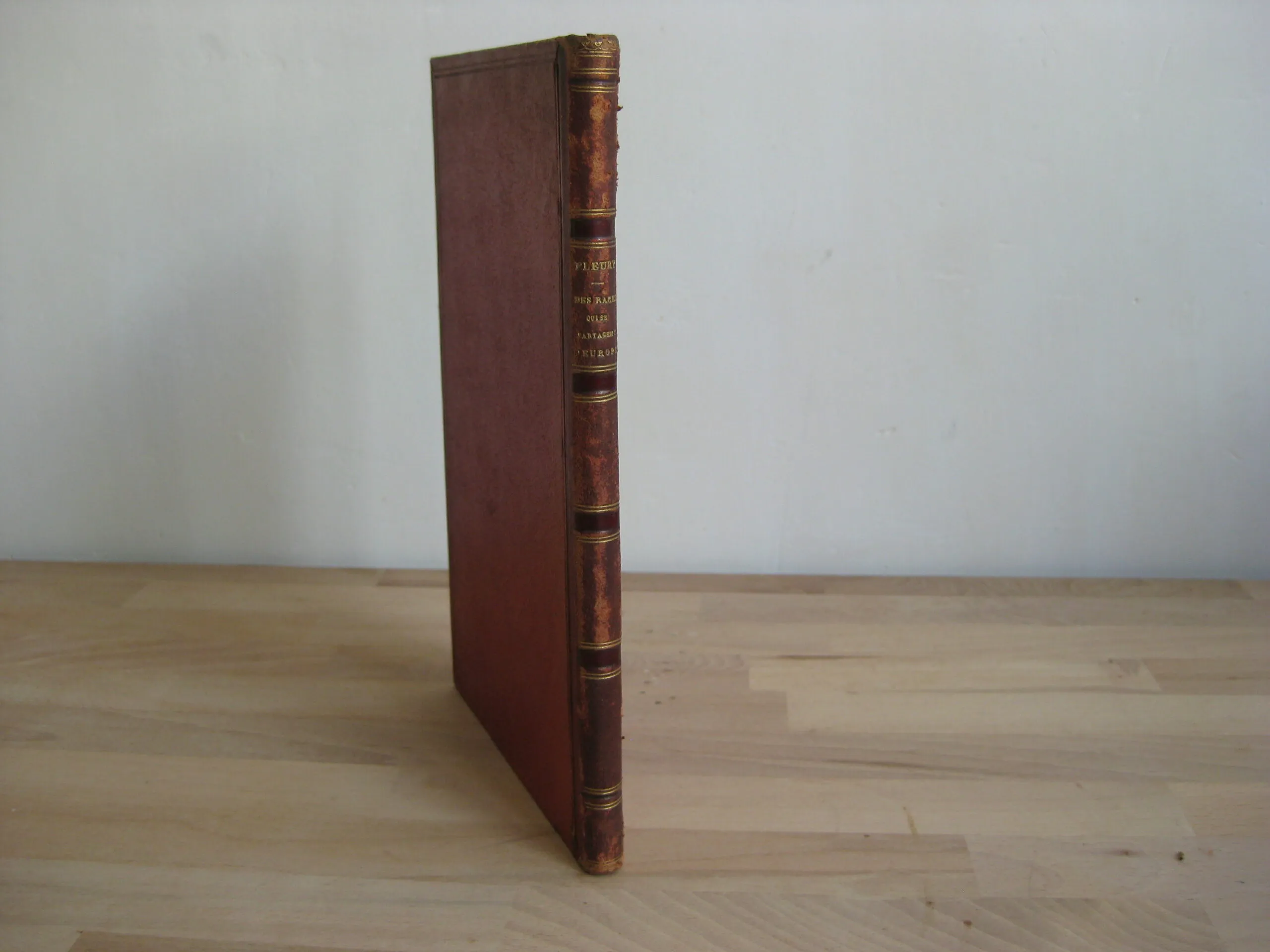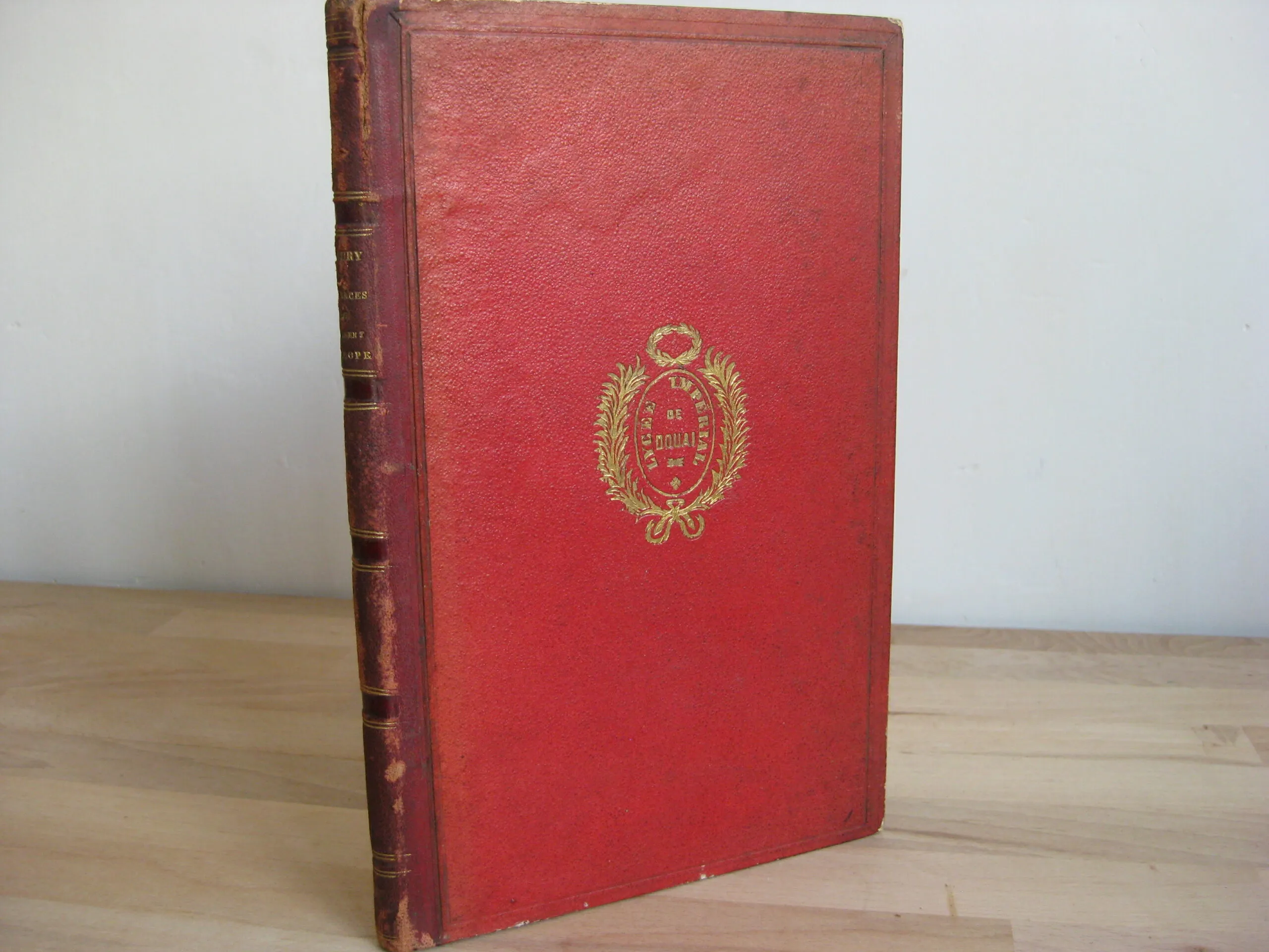 Plein-chagrin rouge, à dos long orné des titre et auteur, et de de triples liserés délimitant des patries en maroquin, fer doré du Lycée Impérial de Douai au premier plat, 241 x 146, 132p. Hors table. A Douai chez tous les Libraires. 1858. Edition originale. Avec un bel ex-libris en médaillon collé en contreplat supérieur, monogrammes FB et devise « droit quoi qu’il advienne ». Rousseurs en début et fin de volume, mais intérieur propre. Plats, coins et champs frottés avec épidermures. Dos frotté avec nombreuses épidermures. Exemplaire bien ferme.