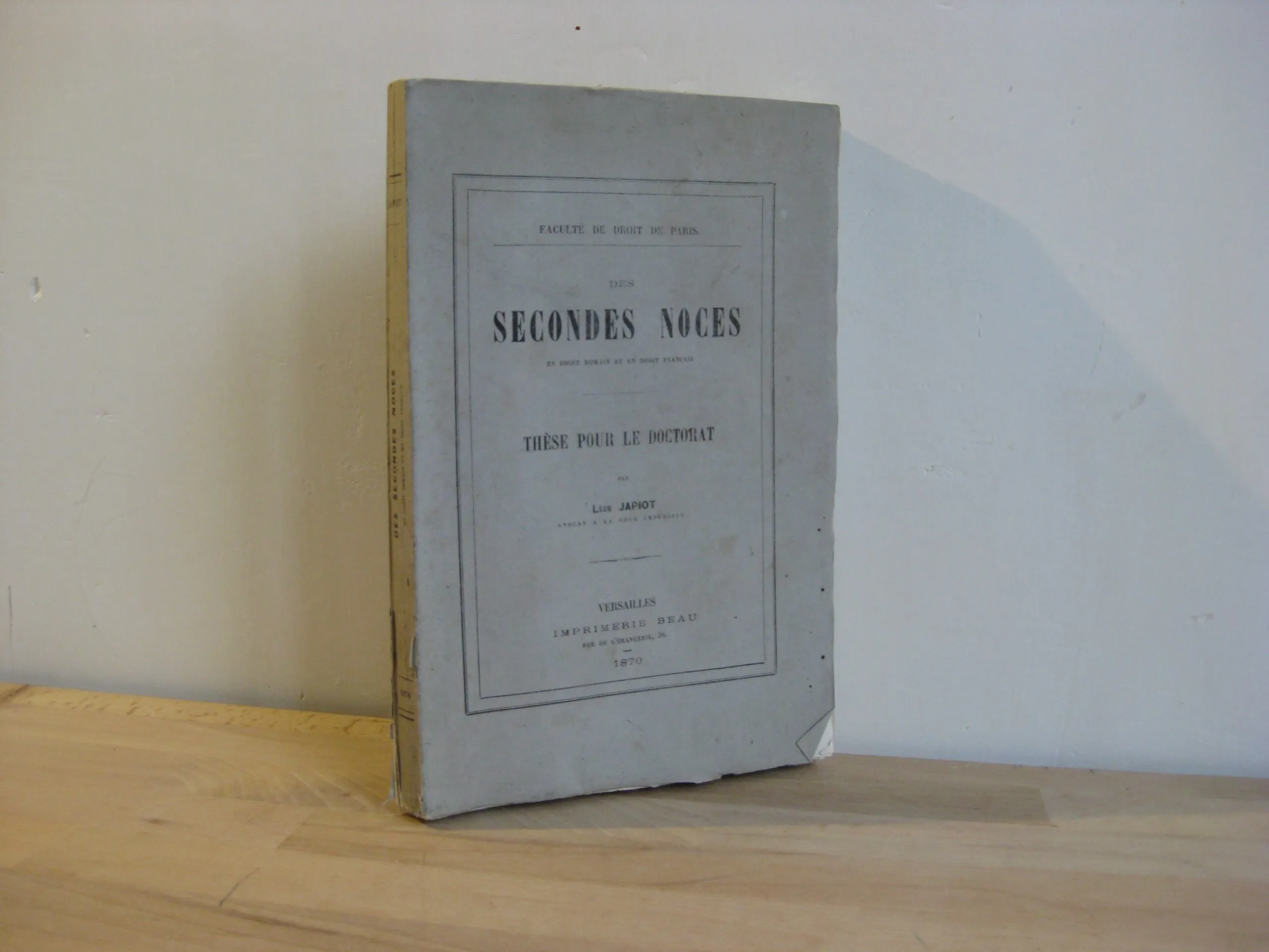 Thèse pour le doctorat – Broché, 248 x 163, 248p. Versailles, 1870. Edition originale. Intérieur avec taches rousses éparses, mais intégralement non coupé. Couvertures et dos insolés et frottés, avec rares rousseurs, taches, un coin de pied corné, un manque en pied de dos. Bon exemplaire bien ferme.