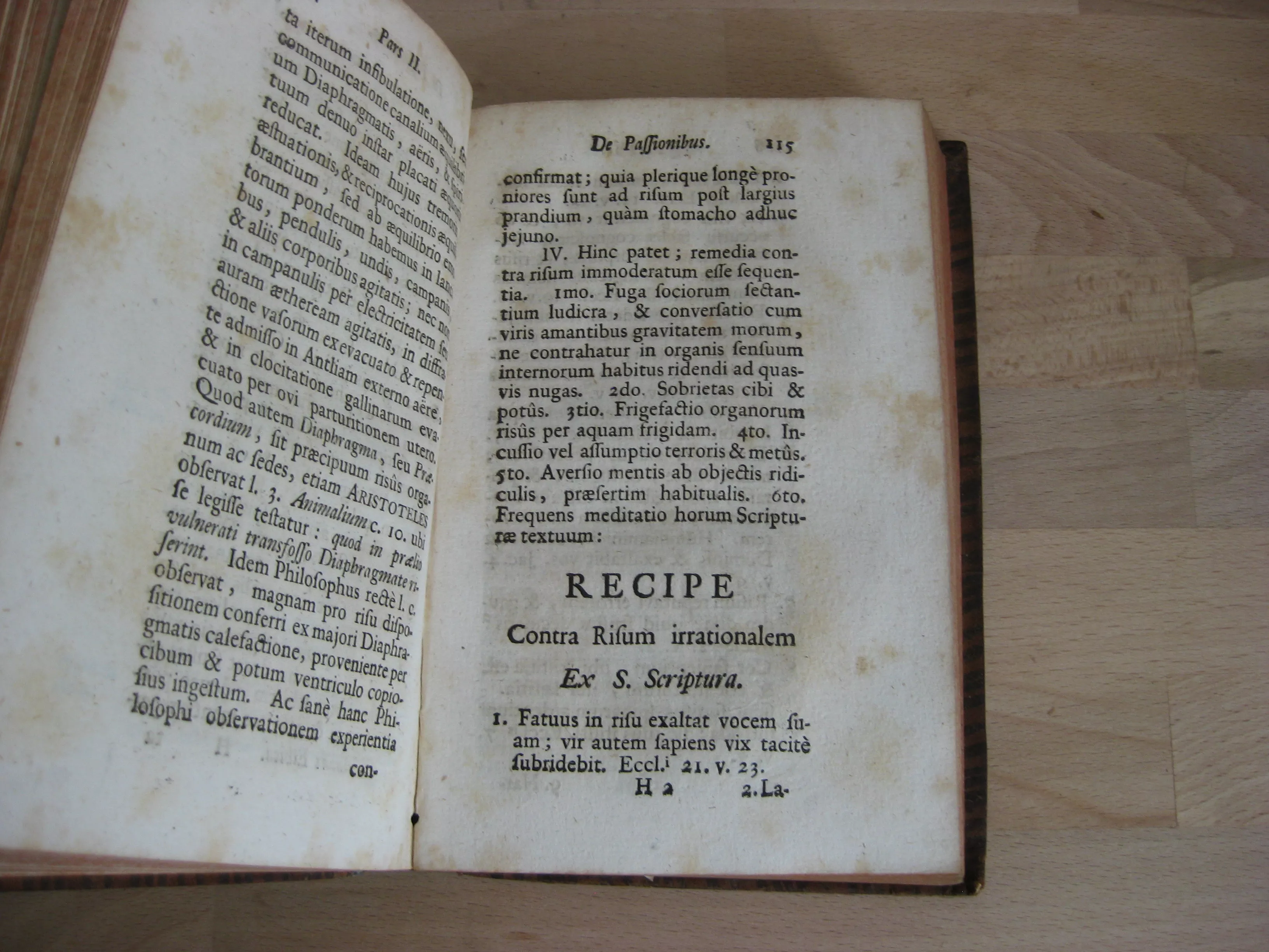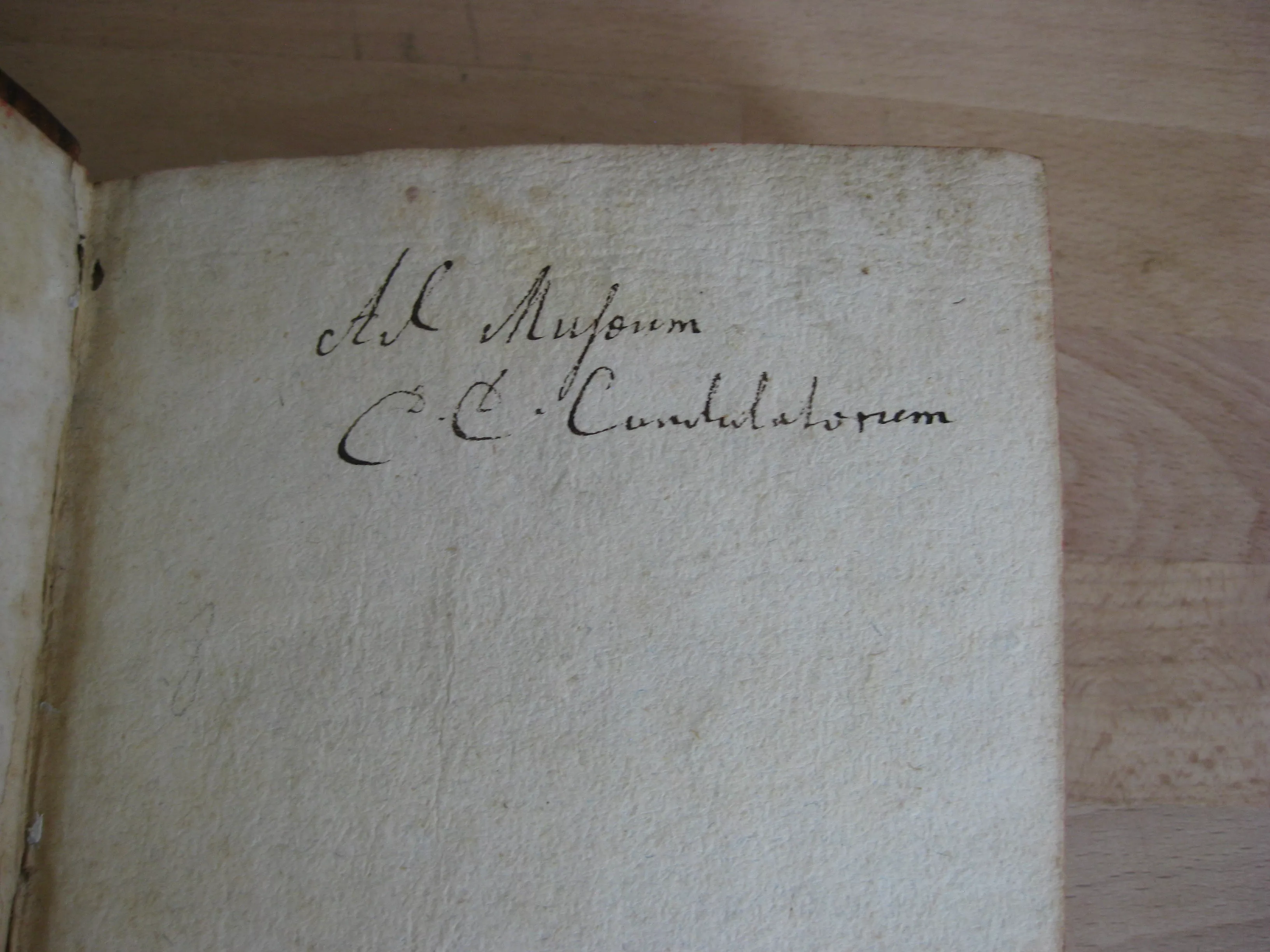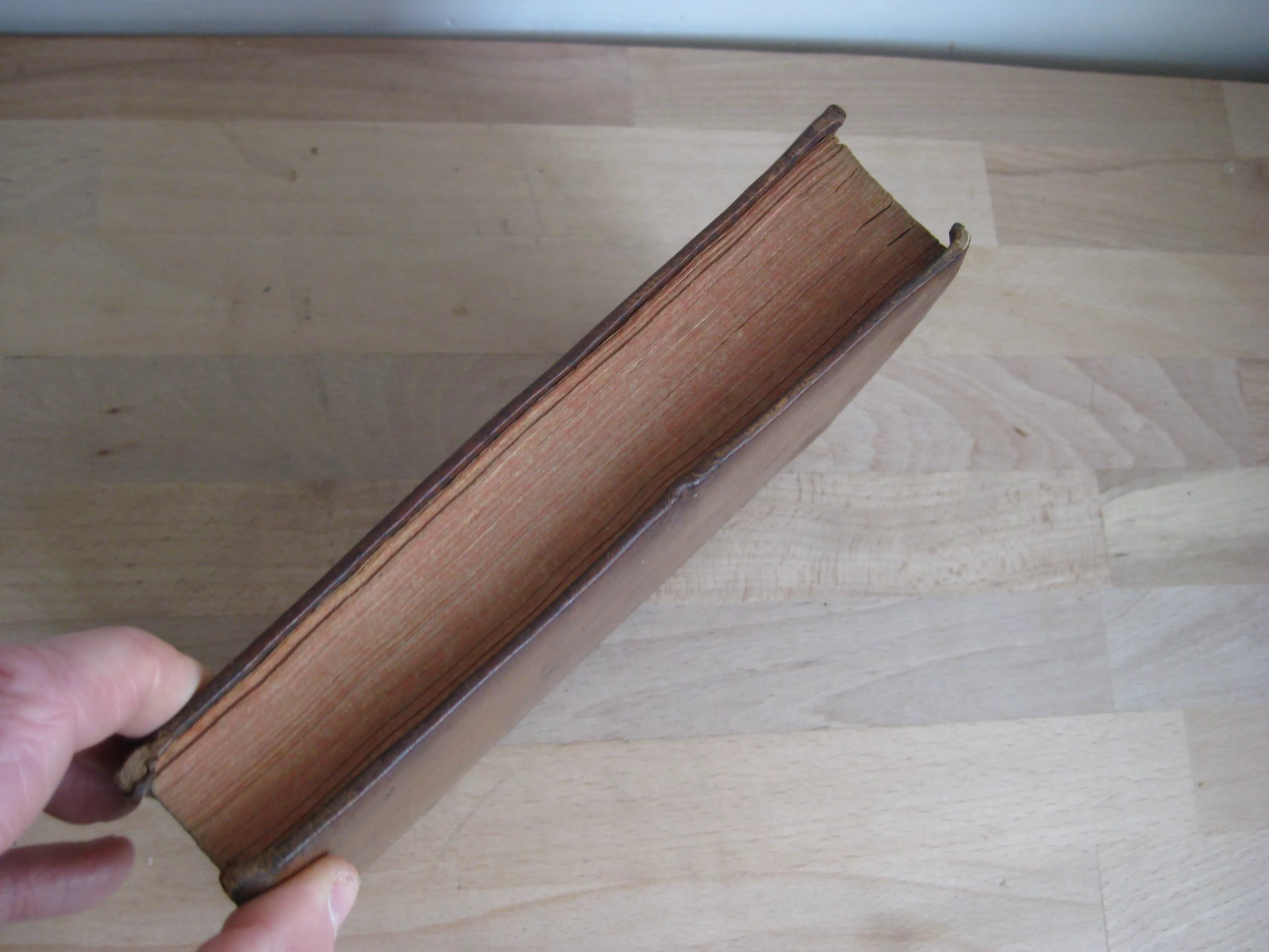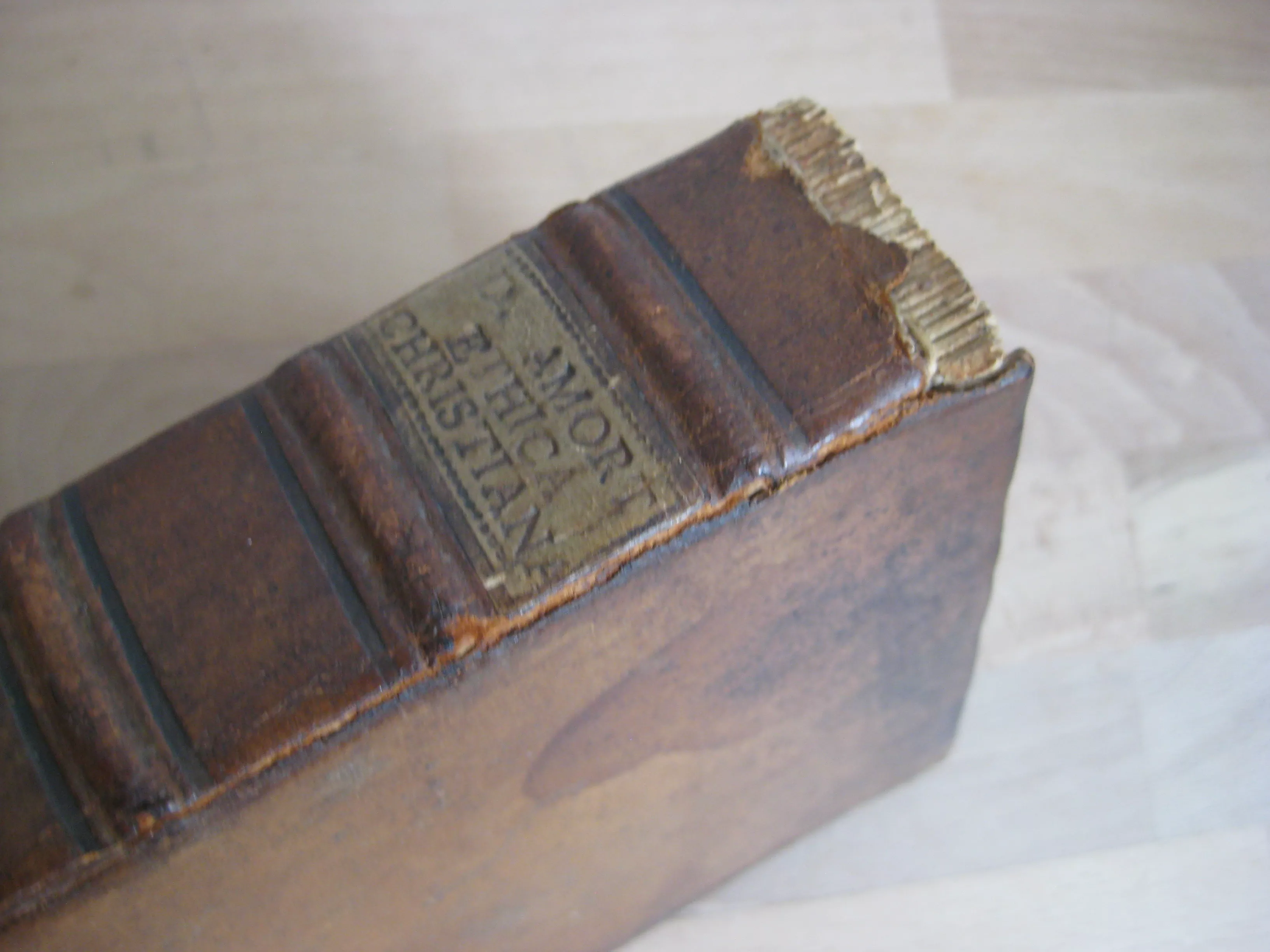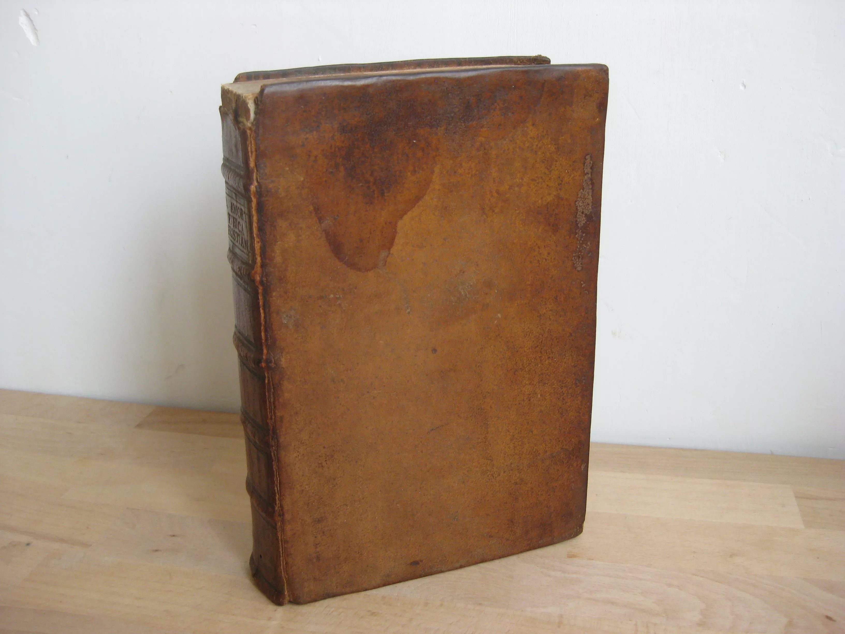 Plein veau marbré, dos à cinq nerfs, orné d’une pièce de titre olive au titre en creux, tranches jaspées rouges, 190 x 128, 368p. 1758. Première édition, avec très joli frontispice gravé par la graveuse allemande Catharina Klauber [identité réelle sujette à interrogation : portrait dans un grand encadrement du cardinal italien Antonus Andreas Galli [1697-1767 ] surplombant une adresse en piedestal, avec les armoiries du cardinal au centre. Jolie vignette allégorique au titre celle de l’éditeur avec son monogramme en pied à l’encre et boussole et la devise « Aperi et pretiosa lege » , vignette gravée par Joseph-Erasmus Bellinger. Ex-libris ou inscription latine manuscrite en garde. Comprend : Adresse au Cardinal Galli, Approbation et Adresse au lecteur, Index, Prolegomena , 10p. Puis le texte terminé par la devise jésuite acronyme O.A.M.D.G. [Omnia Ad Majorem Dei Gloriam]. In fine : Errores typographici. Intérieur propre mais avec rousseurs continues. Reliure en bel état excepté la coiffe manquante avec un manque au caisson de tête, la queue avec un petit manque et un trou de ver aux caisson de pied. Bel exemplaire bien ferme. Théologien catholique allemand, Eusebios Amort (1692-1775) est notamment l’auteur d’un cours de philosophie pour le diocèse d’Augsbourg.