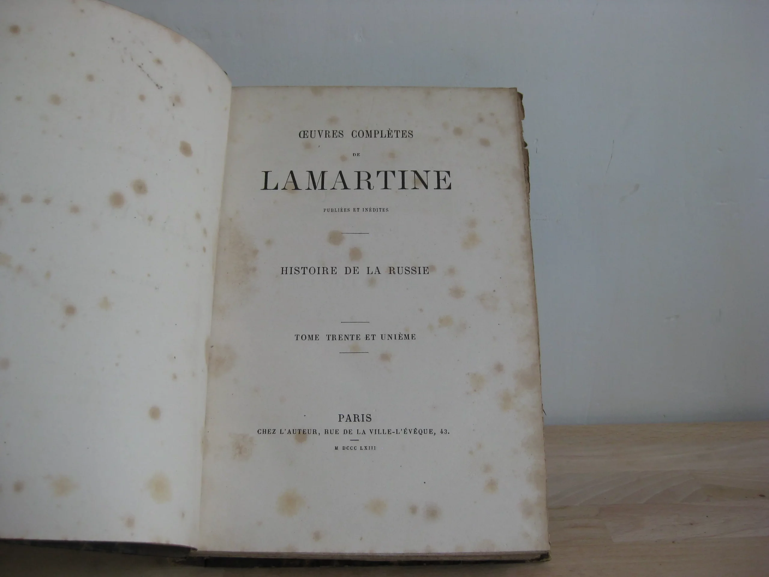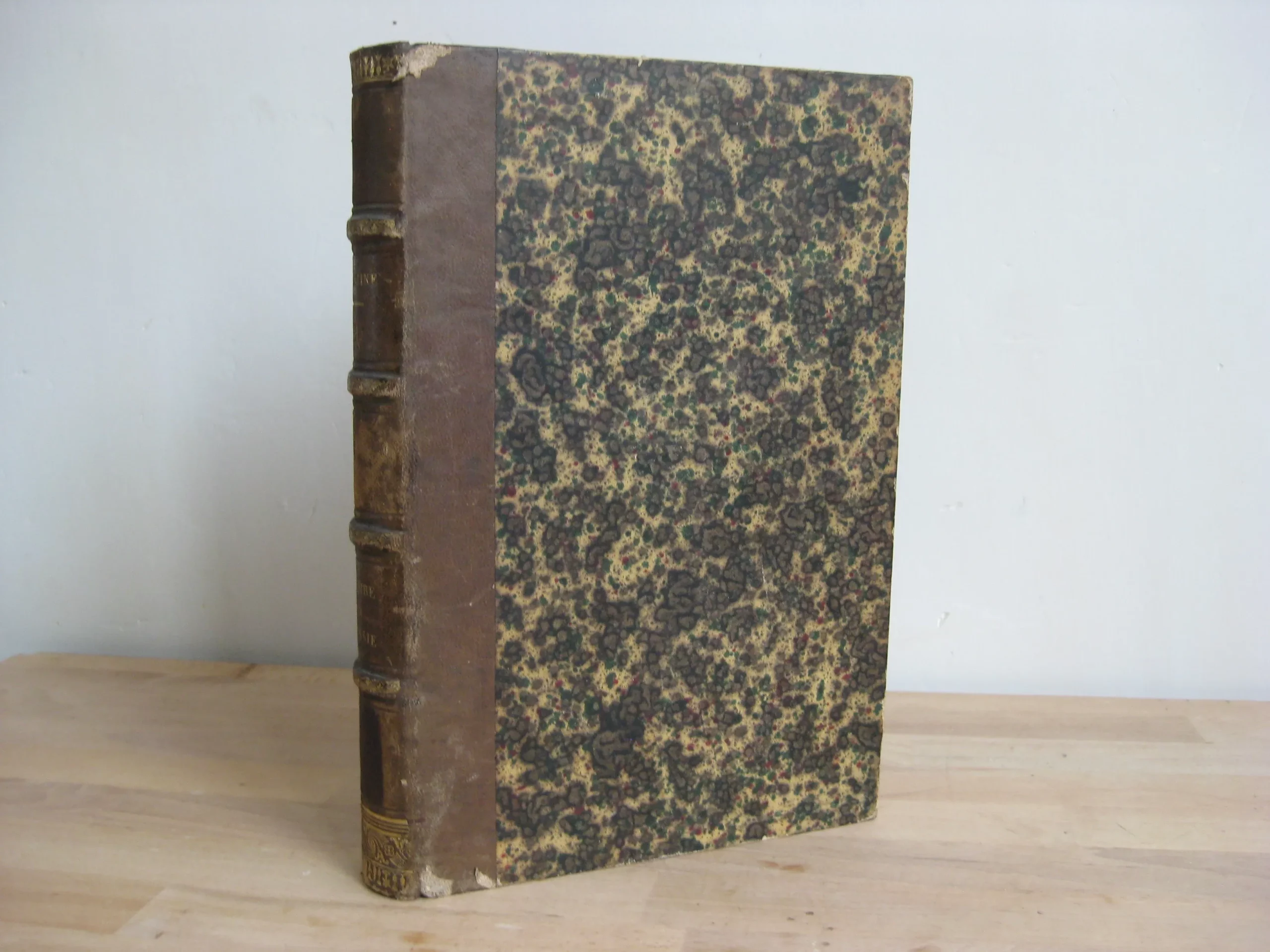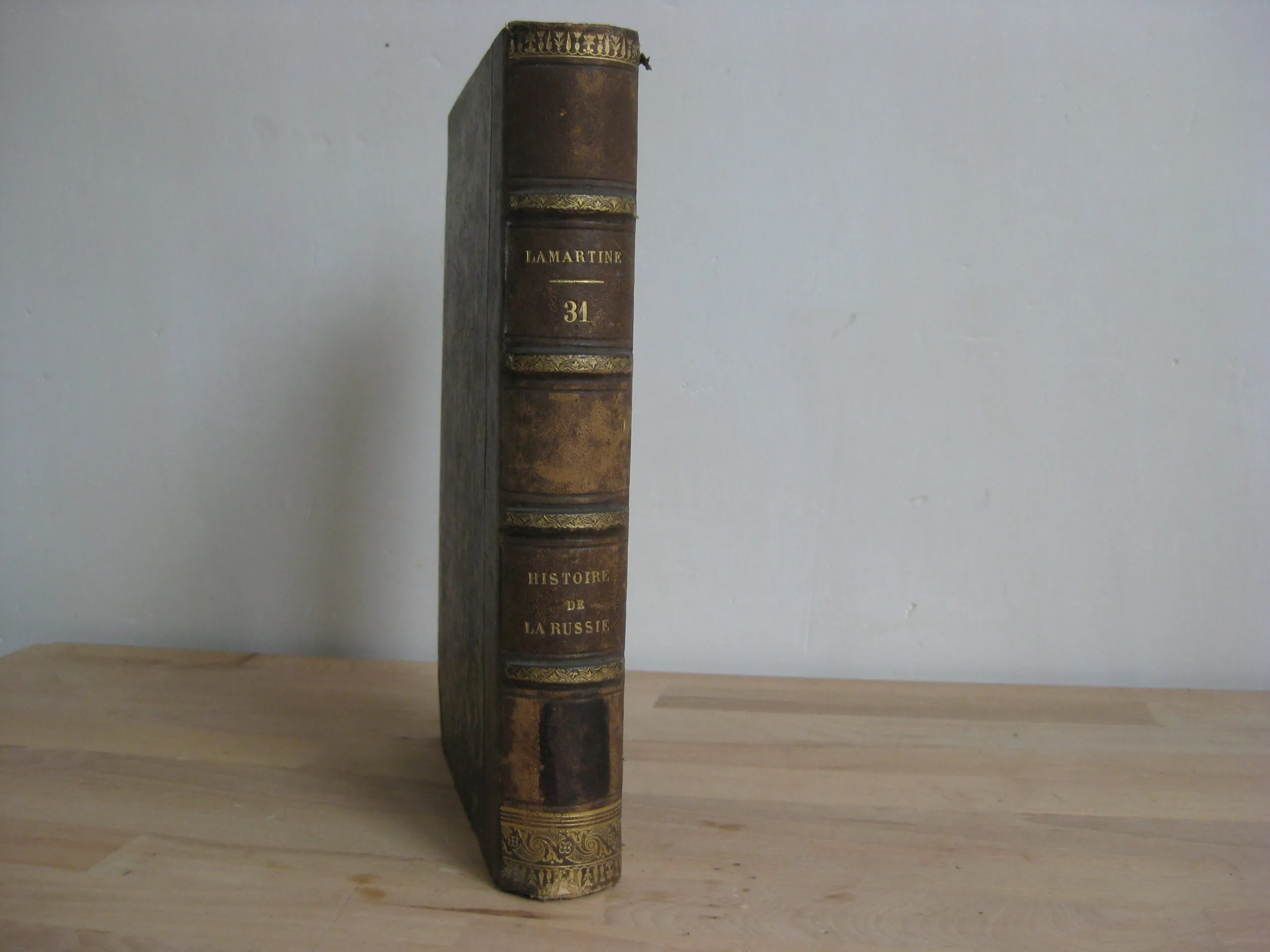 Demi-veau chocolat, dos à faux-nerfs orné des tomaisons, titres, et auteur, frises en queue et tête, nerfs ornés, 252 x 175, 1863, tome 31 des oeuvres complètes. Avec un paraphe daté en page de titre générale des œuvres (non identifié, fort douteux que ce soit celui de l’auteur). 552p. Avec table. Rousseurs sous forme de taches éparses récurrentes, plus ou moins répandues. Reliure frottée avec épidermures et petits accidents, coiffe et queue avec épidermures. Epidermure en pied et tête de plat supérieur. Caisson en pied de dos foncé, sans doute la marque d’un ancien étiquetage/code.