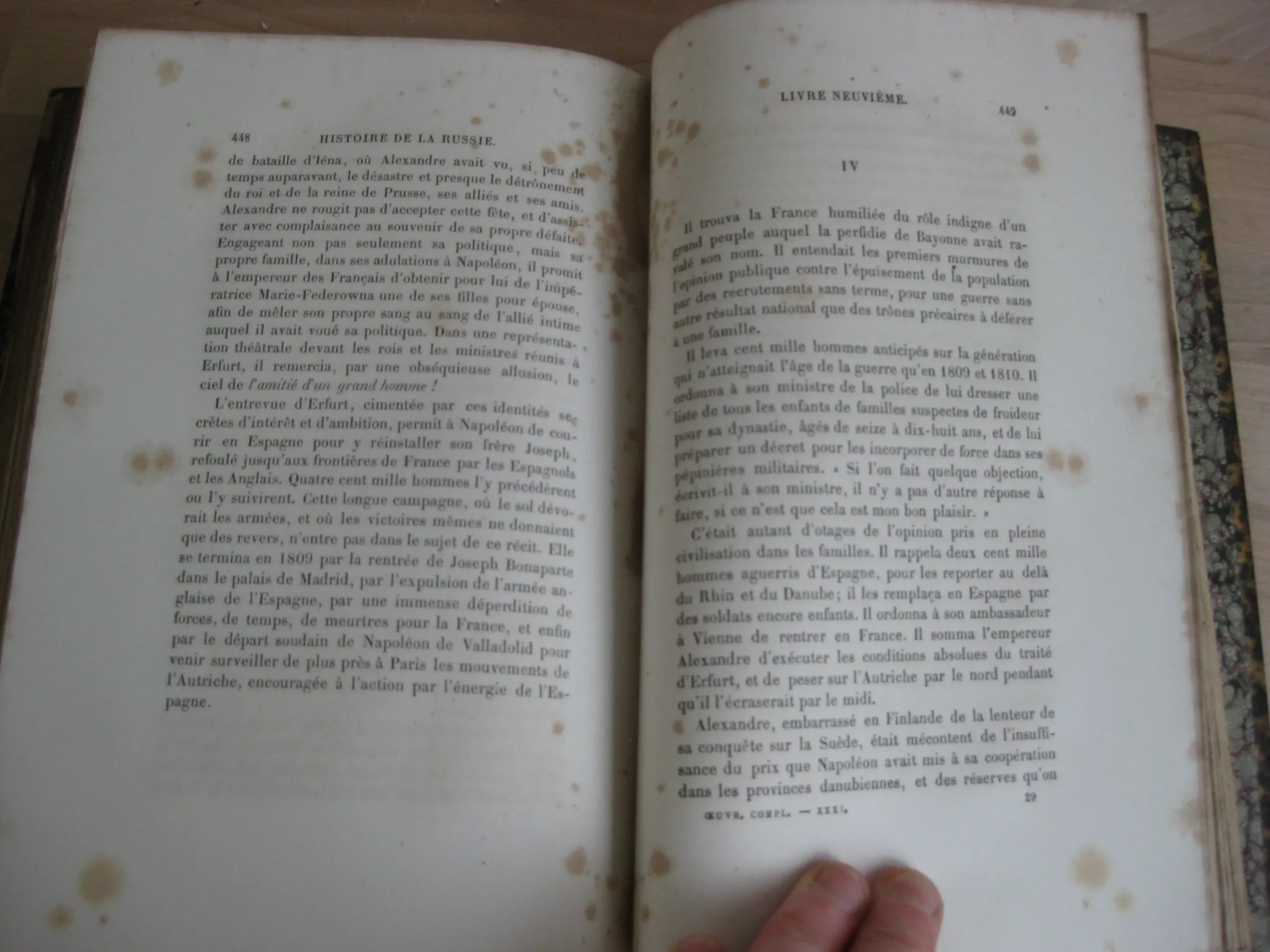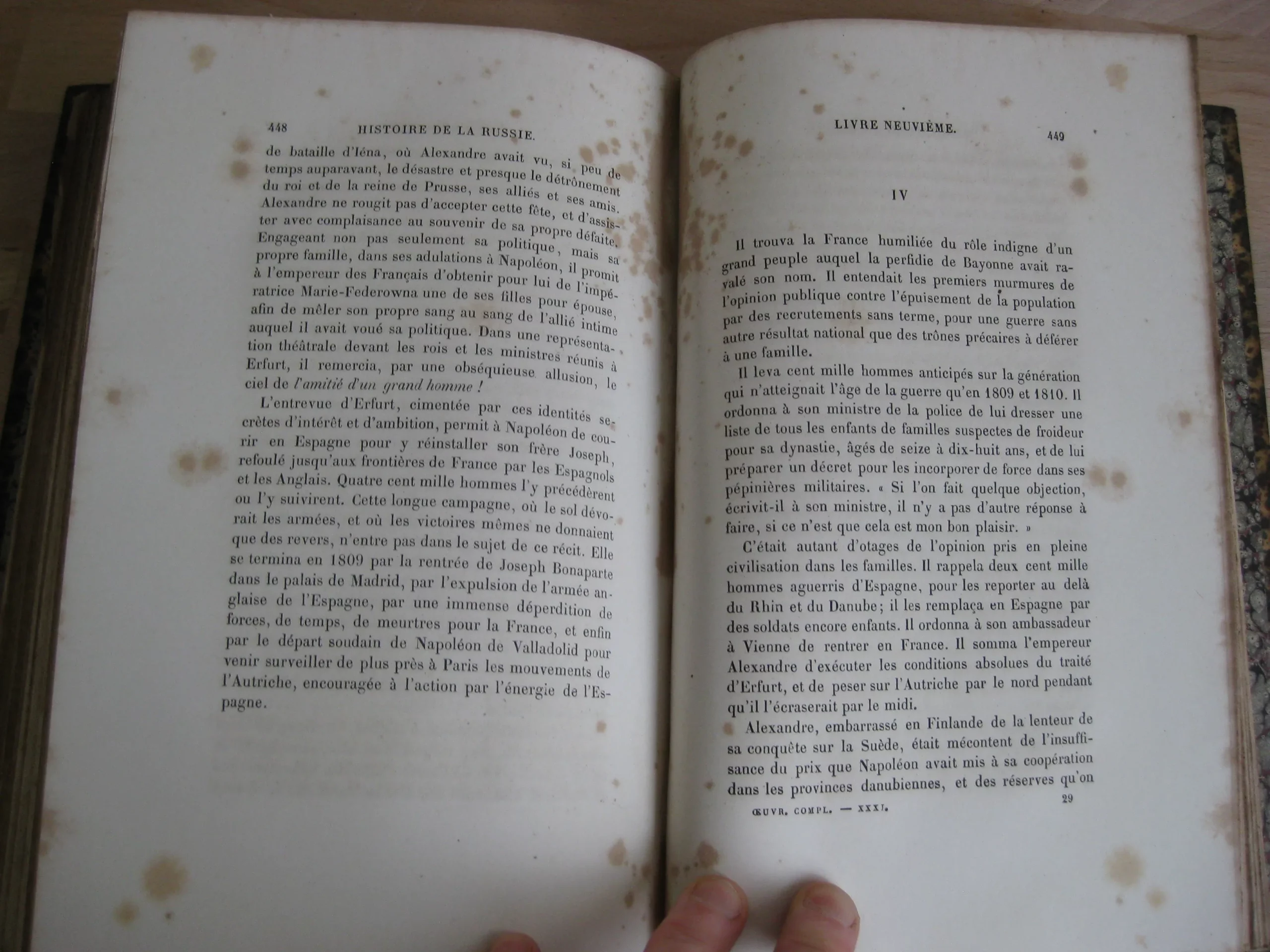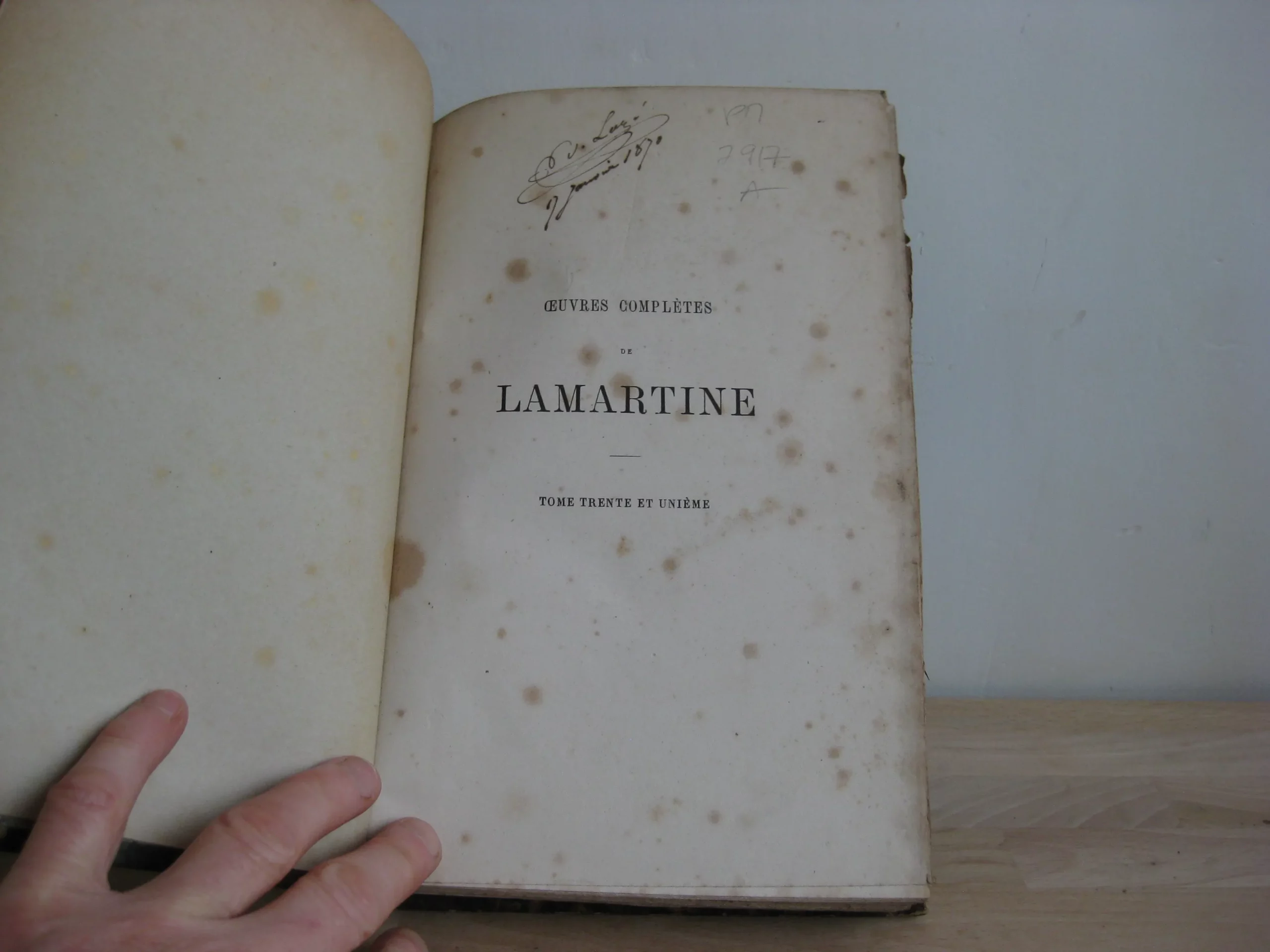 Demi-veau chocolat, dos à faux-nerfs orné des tomaisons, titres, et auteur, frises en queue et tête, nerfs ornés, 252 x 175, 1863, tome 31 des oeuvres complètes. Avec un paraphe daté en page de titre générale des œuvres (non identifié, fort douteux que ce soit celui de l’auteur). 552p. Avec table. Rousseurs sous forme de taches éparses récurrentes, plus ou moins répandues. Reliure frottée avec épidermures et petits accidents, coiffe et queue avec épidermures. Epidermure en pied et tête de plat supérieur. Caisson en pied de dos foncé, sans doute la marque d’un ancien étiquetage/code.