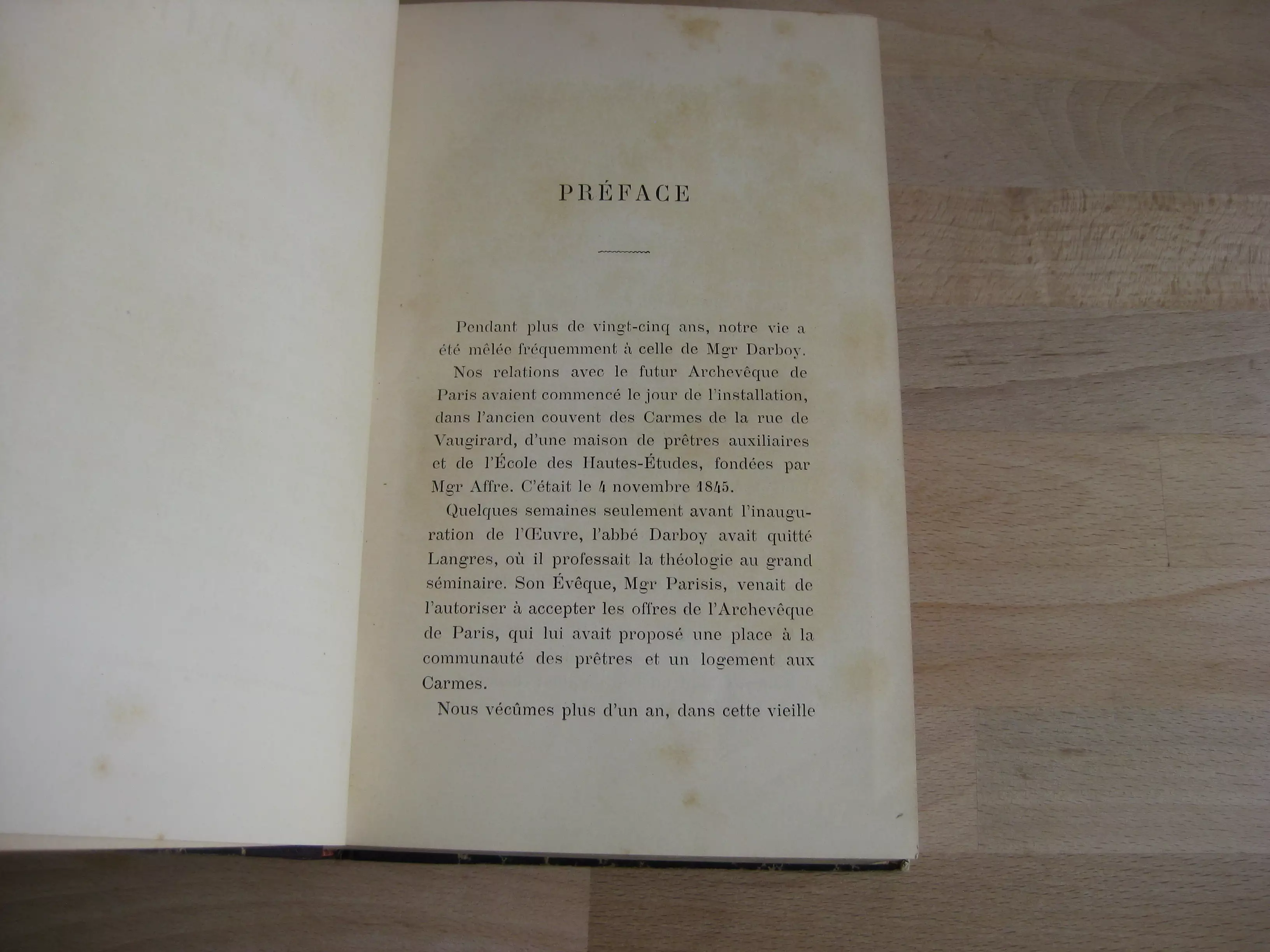 Demi-chagrin chocolat, dos à 4 nerfs orné d’une pièce de titre marron, des initiales P.B. en pied de dos, 223 x 148, 644p. Avec table. 1889. Frontispice. Enrichi en contreplat supérieur d’un bel ex-libris avec la devise « In laboribus plurimis », devise de Mgr Paul Félix Beaurain de Beauséjour. Intérieur propre. Un deuxième ex-libris déchiré en page de garde. Reliure frottée avec épidermures, et une étiquette en pied de dos. Bien ferme.