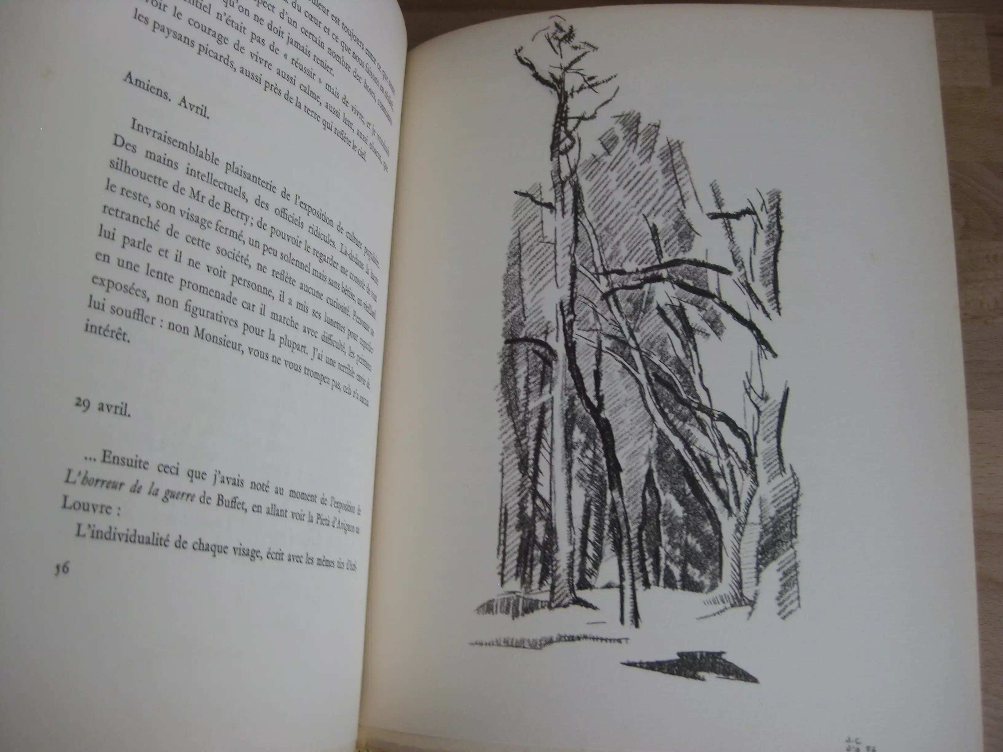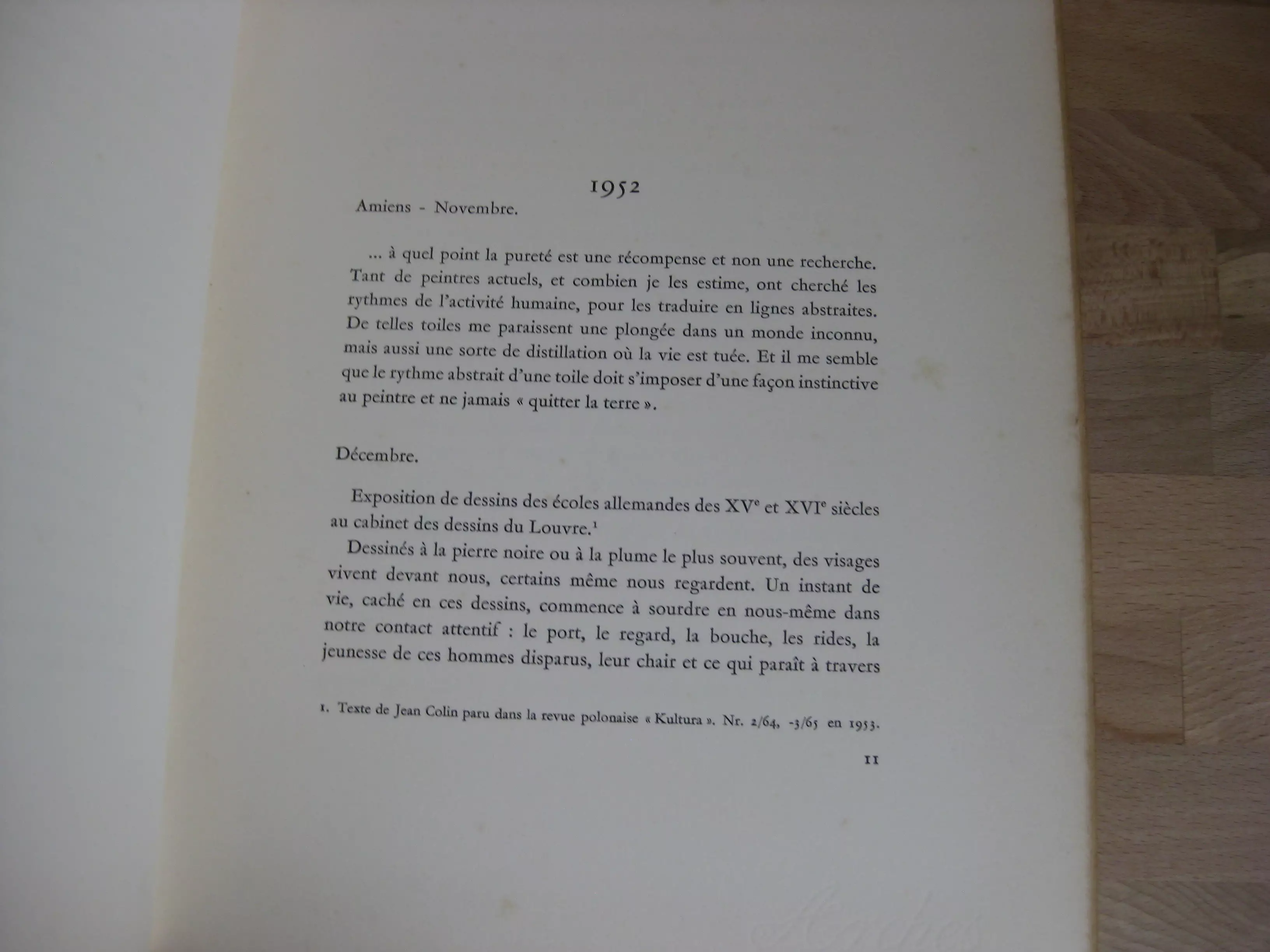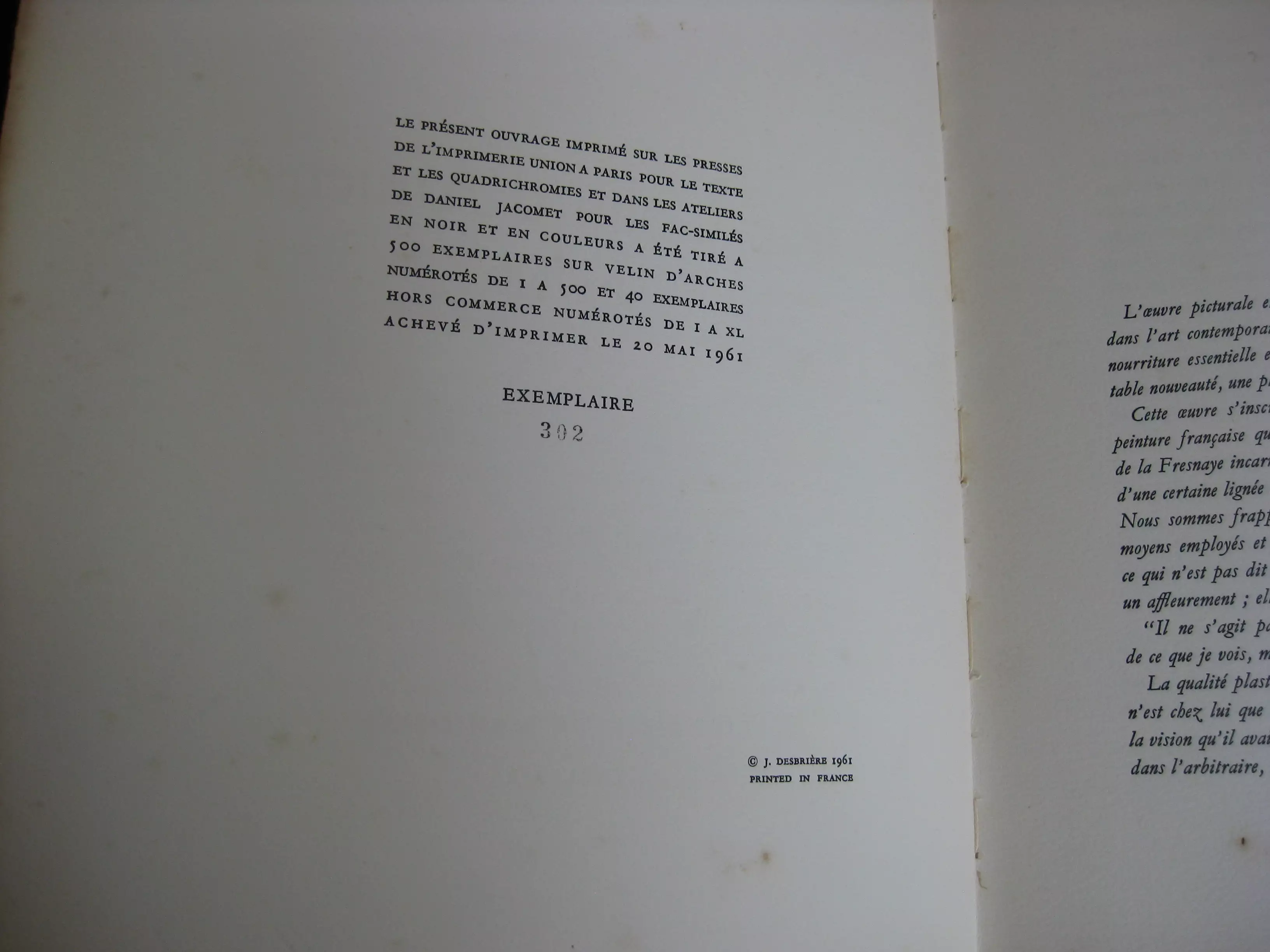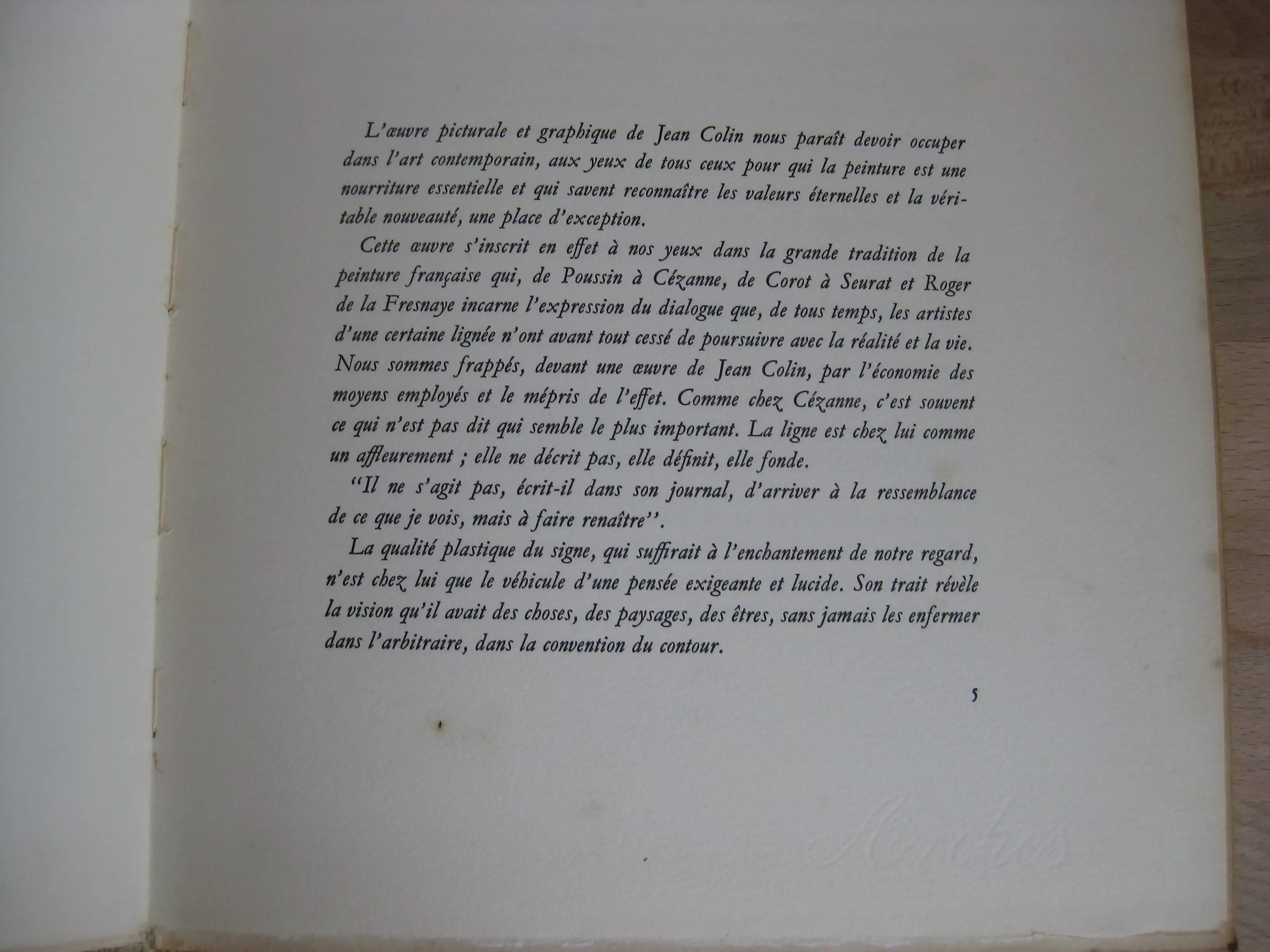 Pleine toile beige chinée, dos long orné du titre, plat décoré par J. Czapski , 290 x 232, Frontispice couleur, 97p. Suivi de 29 planches noir et blanc et couleur, pleine pages ; et du Catalogue des tableaux, non paginé, 13p. 1961. Edition originale numérotée 302/500 sur vélin d’arches (total 540). Extraits du journal de l’artiste portant sur la peinture et sur sa situation de peintre. Intérieur avec rousseurs en contreplats, garde, dernière page, tranches et plus marginales par ailleurs. Reliure propre en très bon état. Né en 1927, Jean Colin d’Amiens a exposé à Londres ; puis à Amiens. La maladie de Charcot l’emporte en 1959.