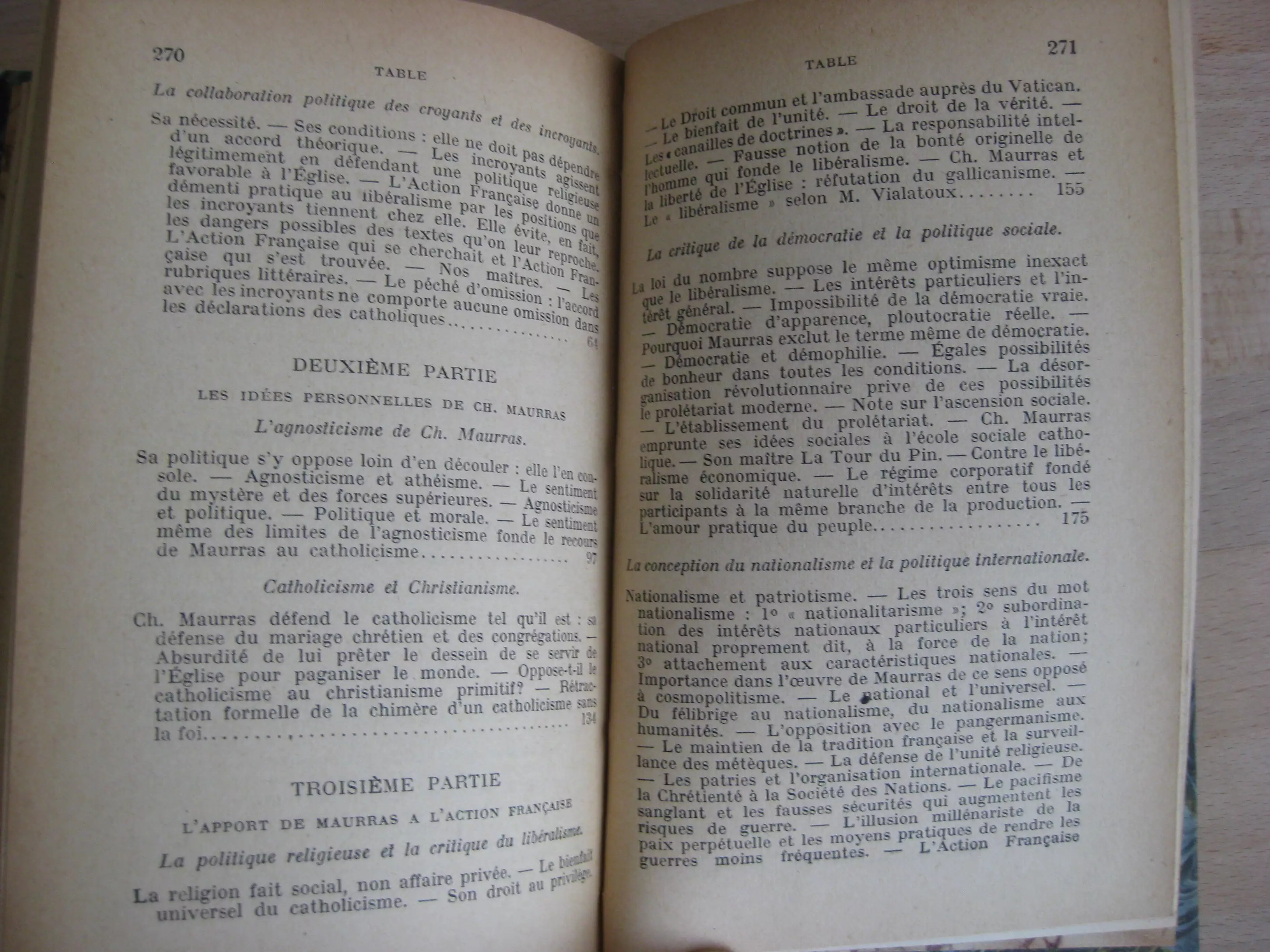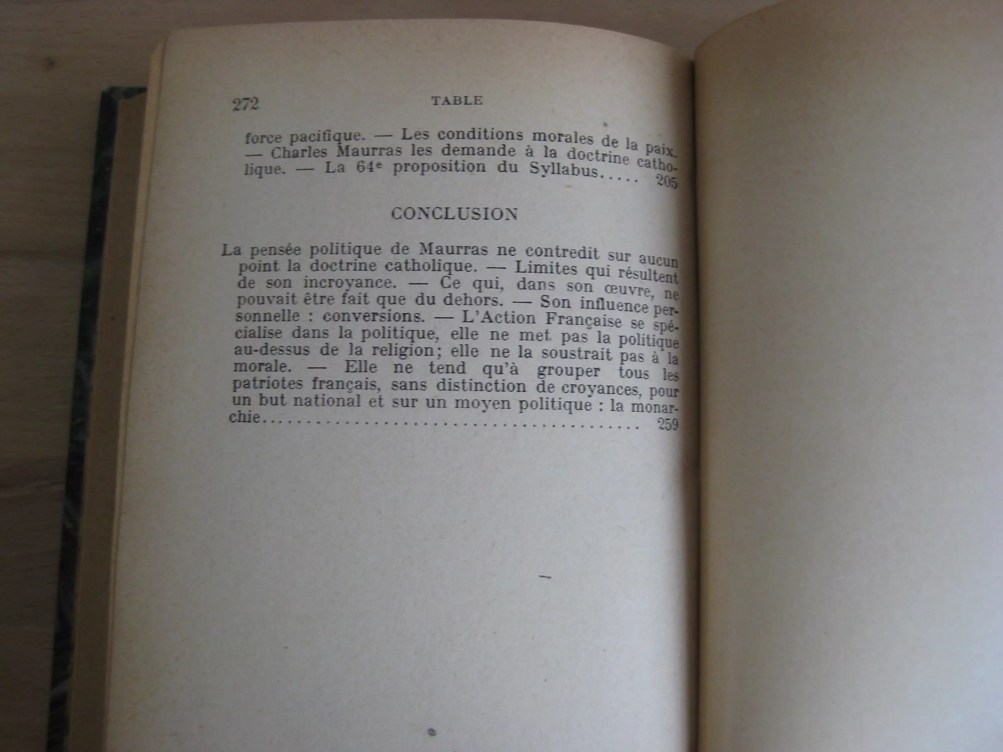 Relié à la suite : Charles Maurras et le nationalisme de l’Action Française, par Mis de Roux [Marie de], couvertures conservées de même, 272p. Avec table, 1937. Edition originale sur papier courant. Mention sans doute factice de 9ème édition. Exemplaire truffé avant la garde de deux grands coupures de presse dépliante d’époque, dont un article de Maurras, probablement tirés de l’Action française. Exemplaire propre et intègre, bien ferme.